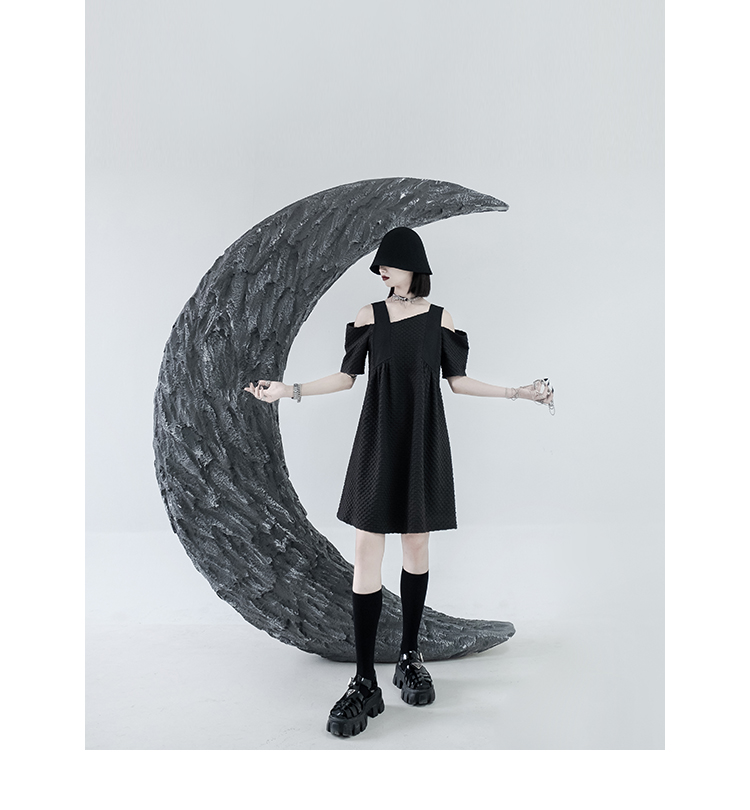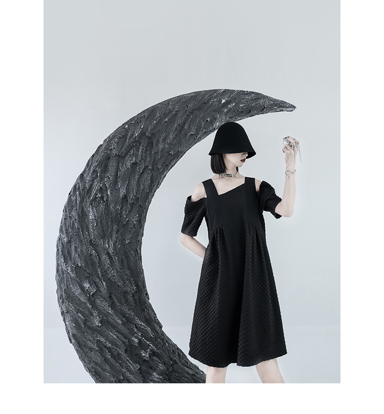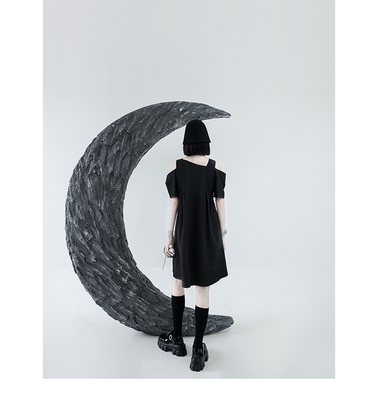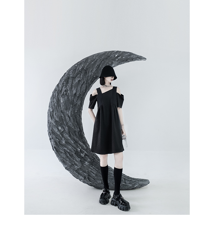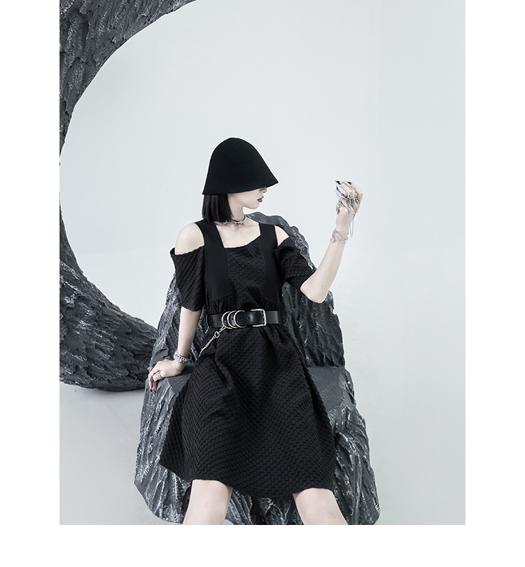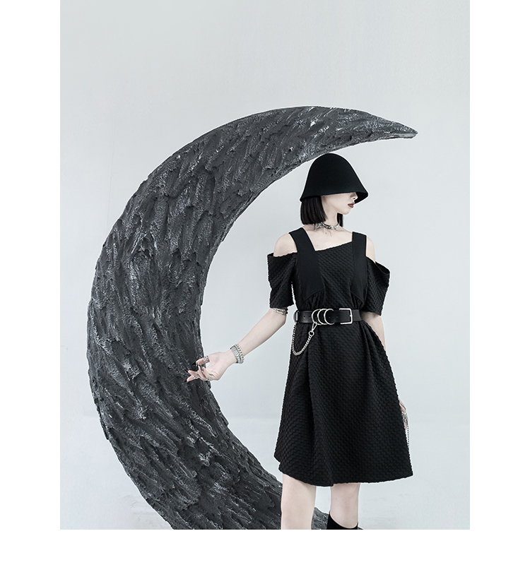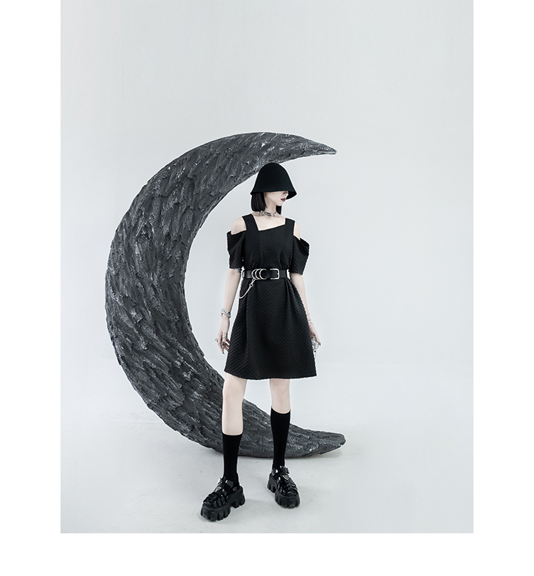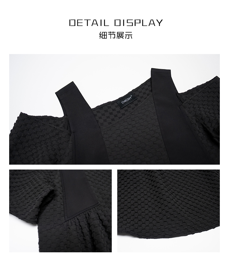 CHICSKY 原創一字肩洋裝女夏季2023新款設計感小眾黑色裙子