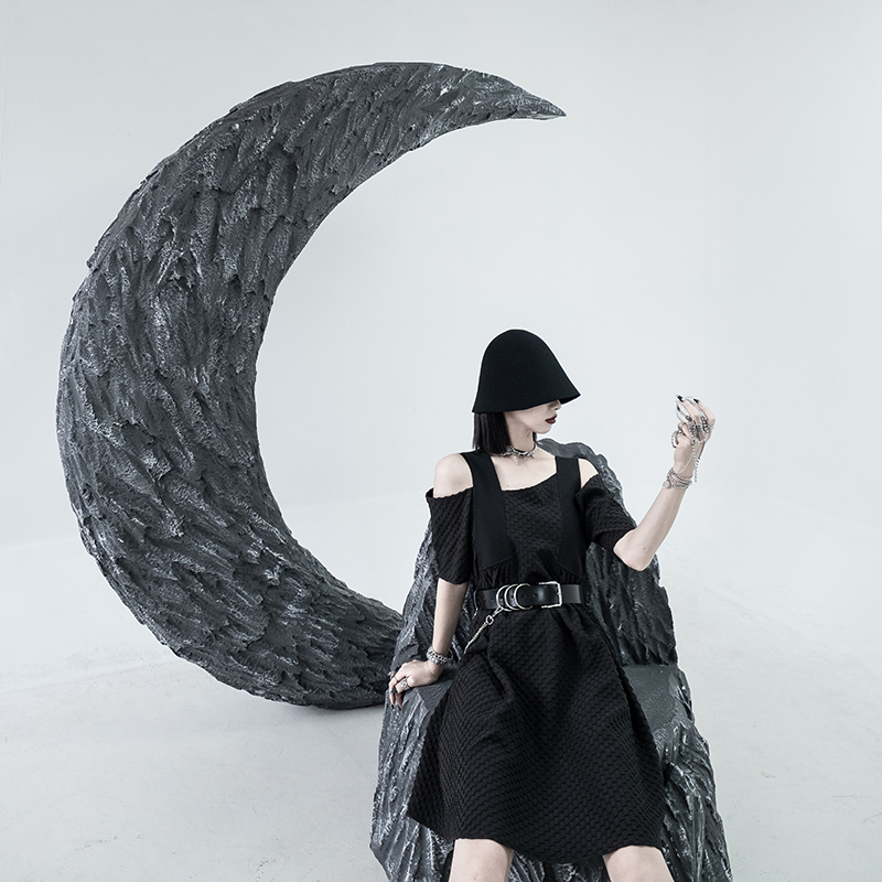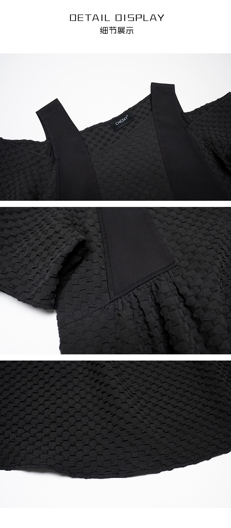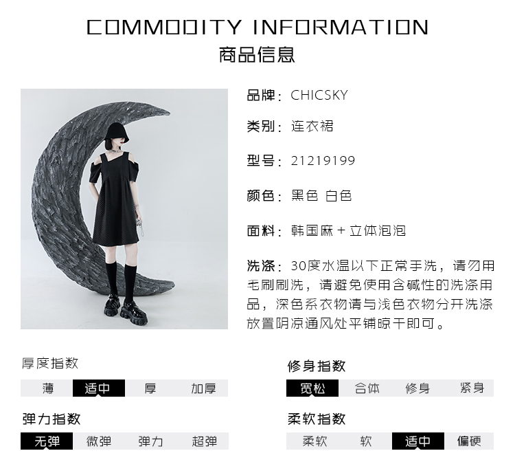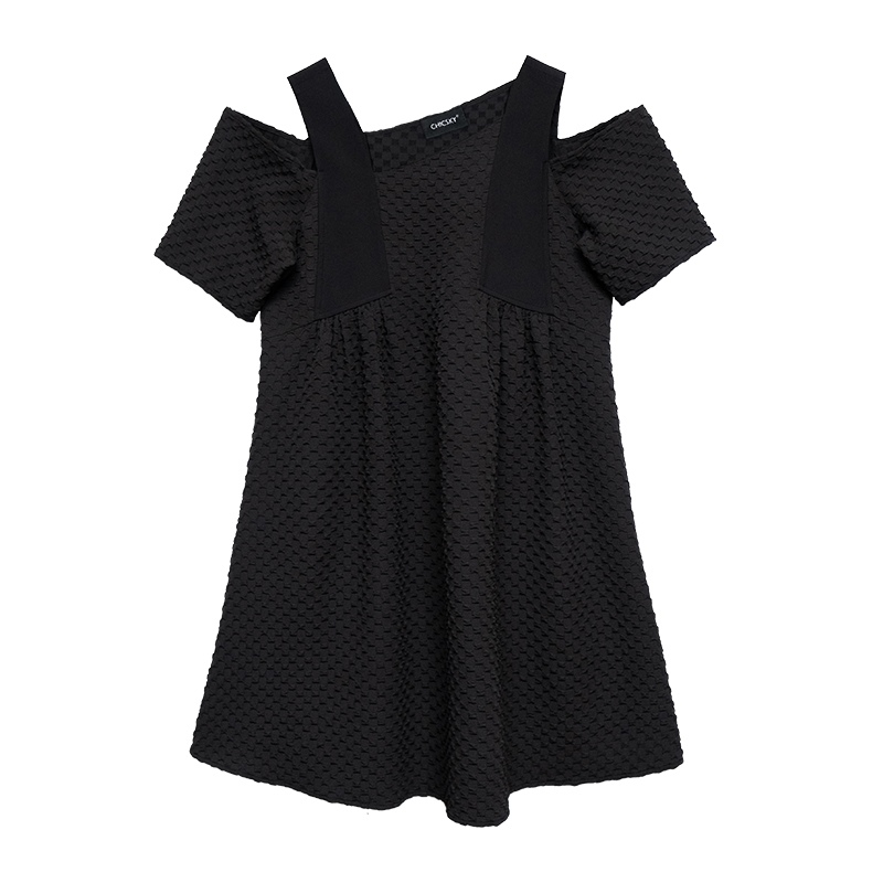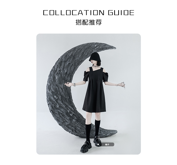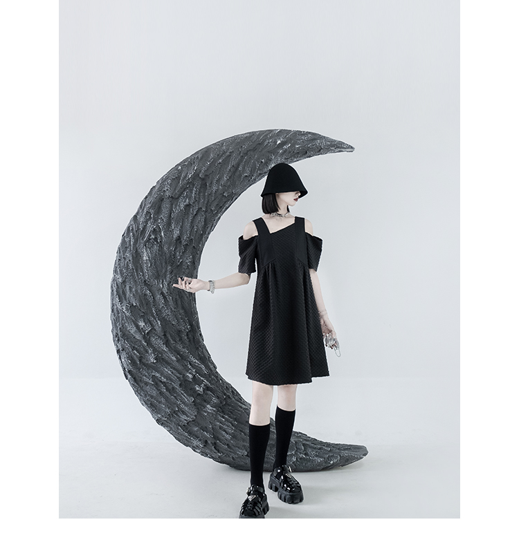 CHICSKY 原創一字肩洋裝女夏季2023新款設計感小眾黑色裙子