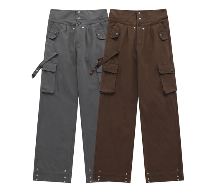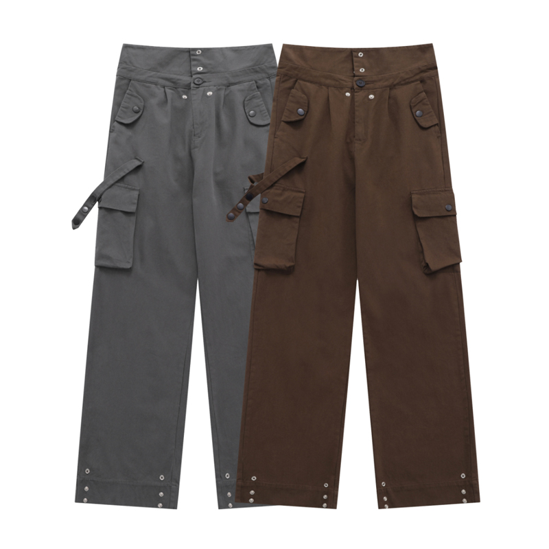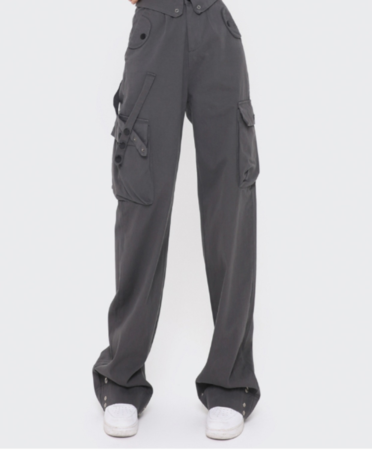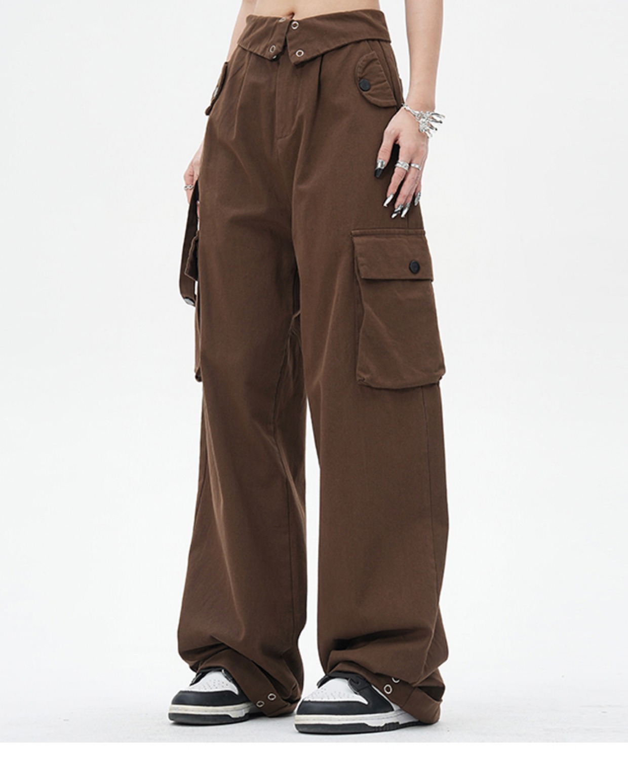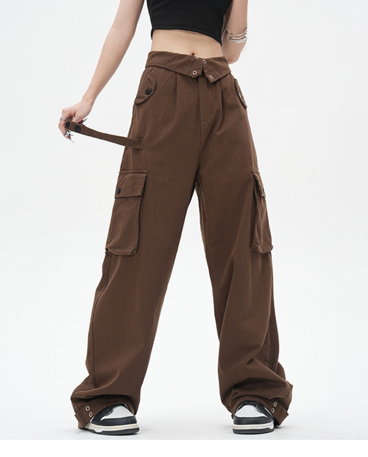 YOOTDS美式復古街頭工裝褲女夏季高腰ins潮牌寬鬆闊腿休閒長褲子