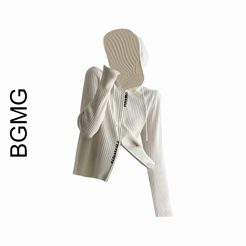 專櫃撤回正品女裝雙頭拉鍊顯瘦連帽運動衫針織衫休閒上衣女早春新款