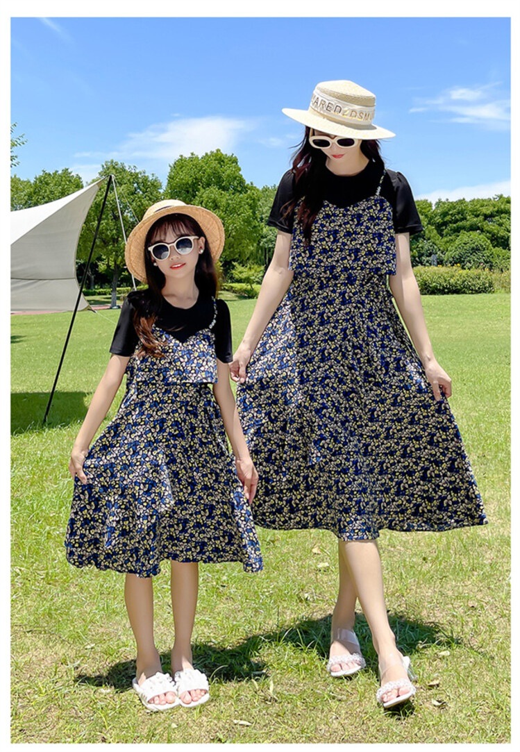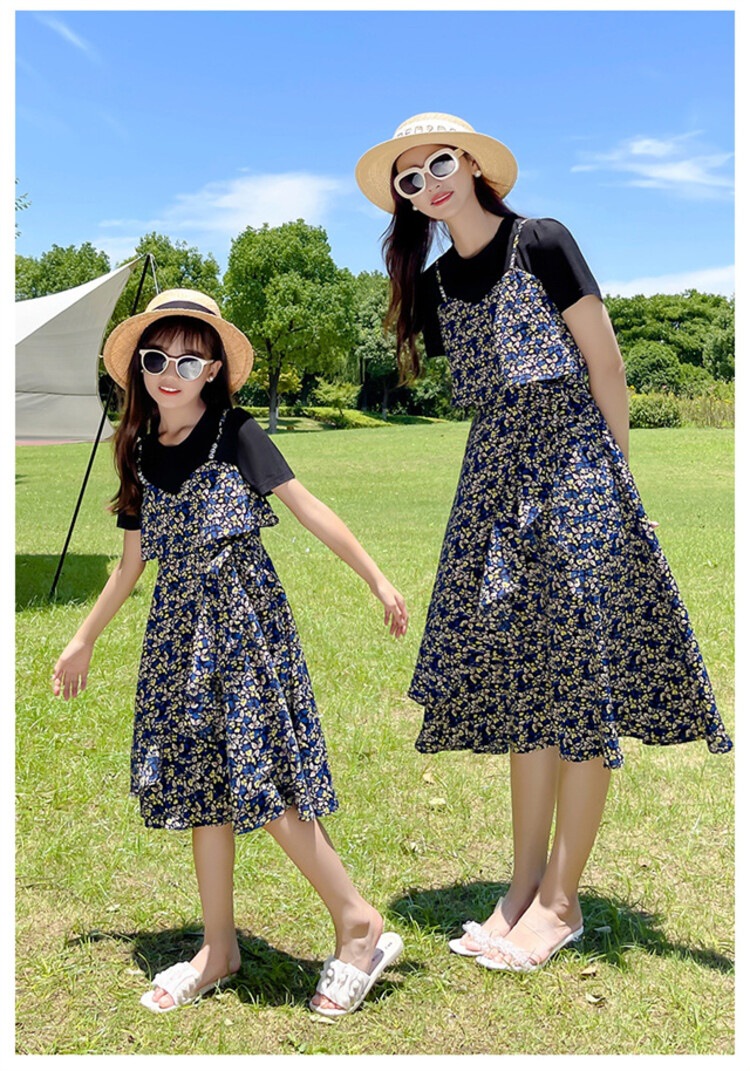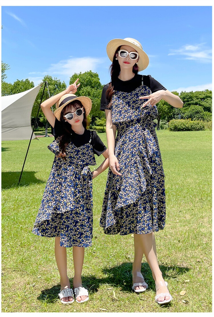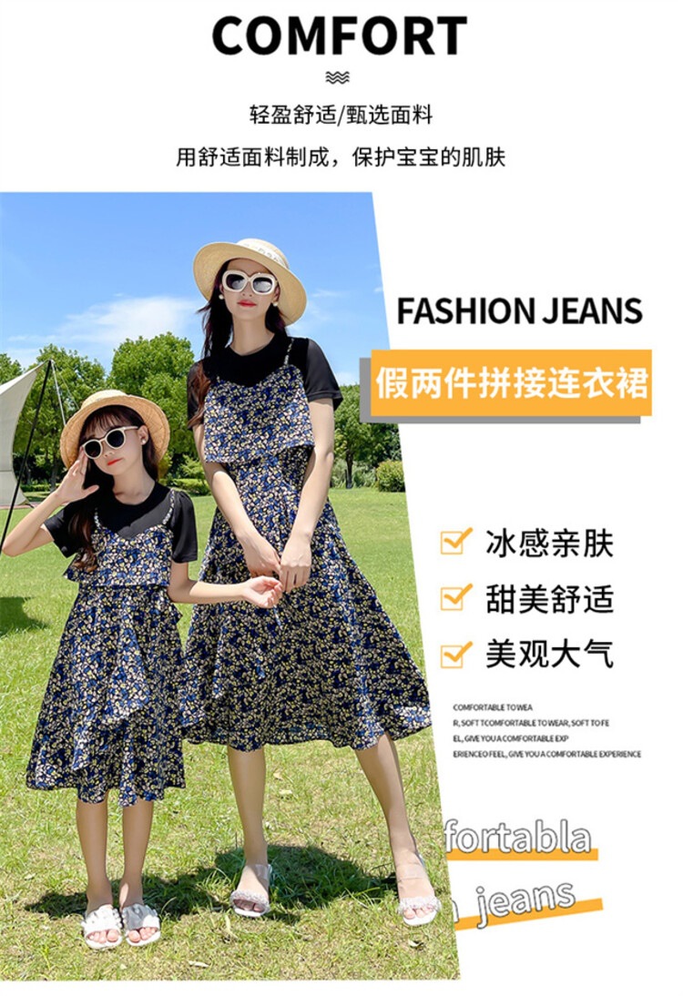 货号 88287(2021款假两件拼接亲子碎花裙)