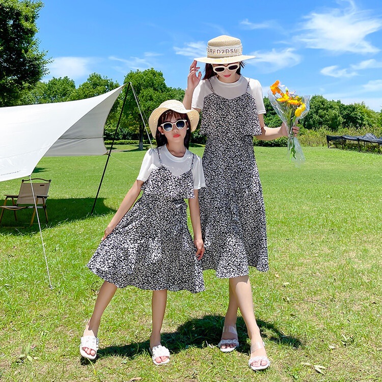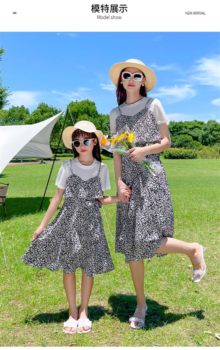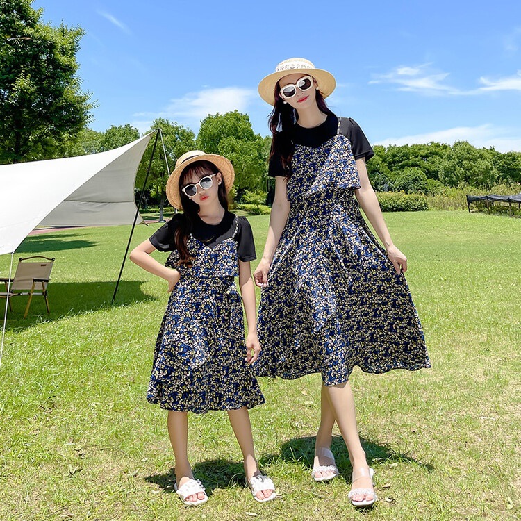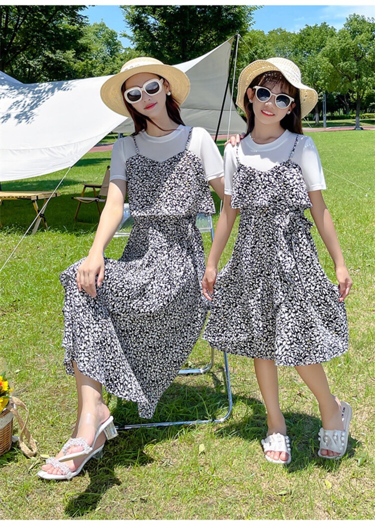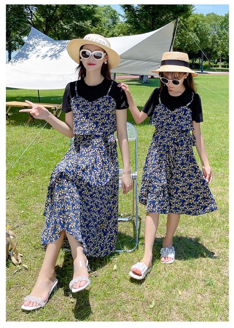 货号 88287(2021款假两件拼接亲子碎花裙)