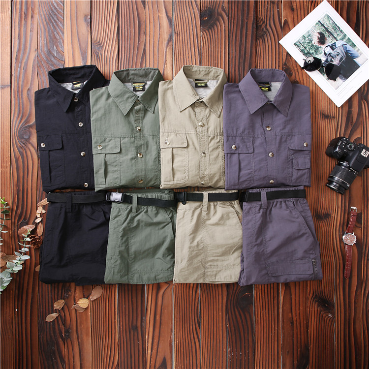 戶外速乾褲男夏季薄款長褲兩截可拆五分短褲多口袋工裝褲束腳大尺碼