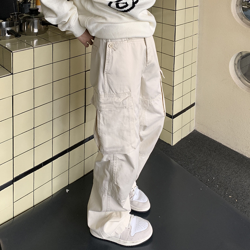 Holocene美式潮牌原創多口袋復古工裝褲百搭直筒休閒日系垂感長褲