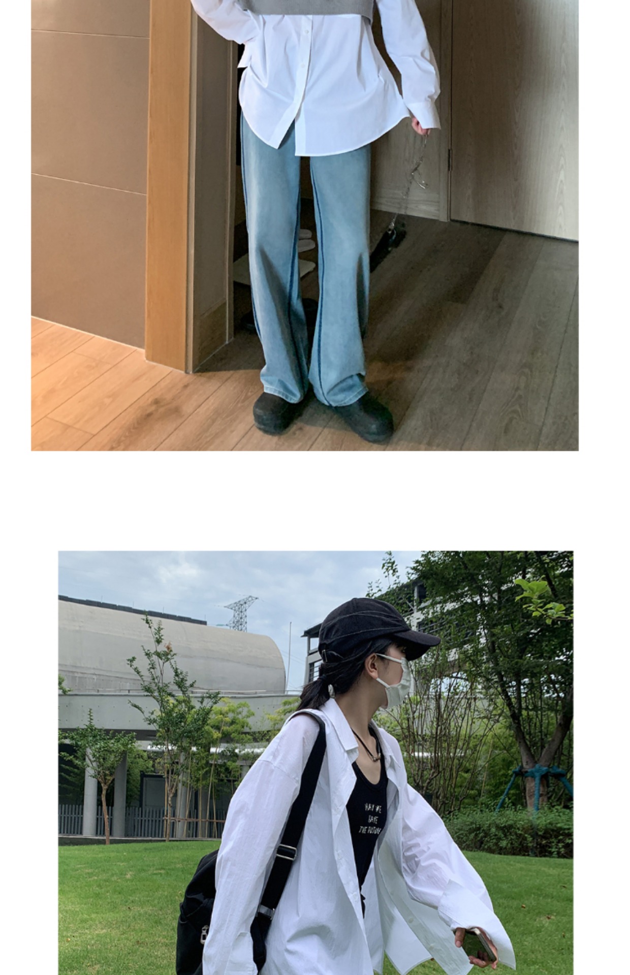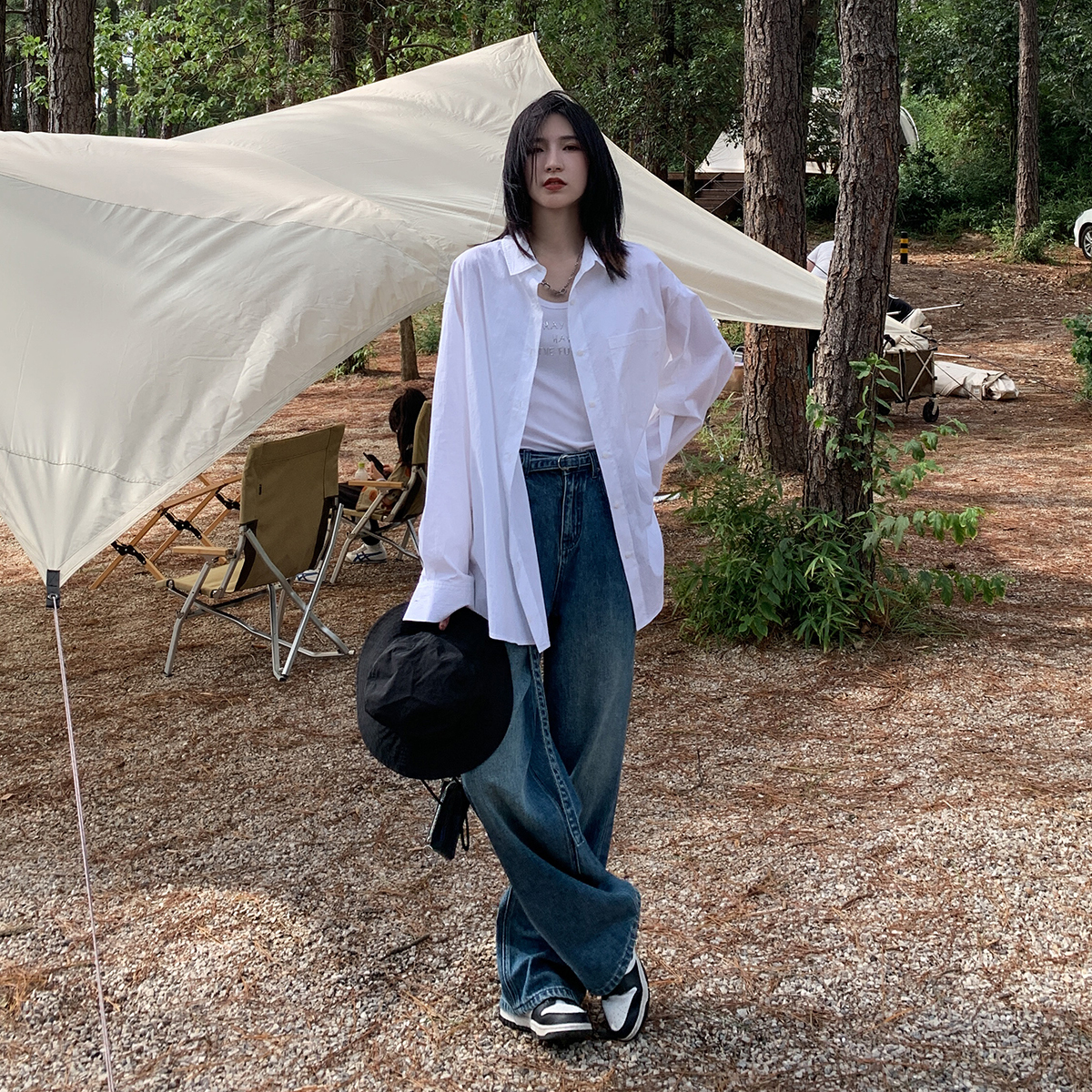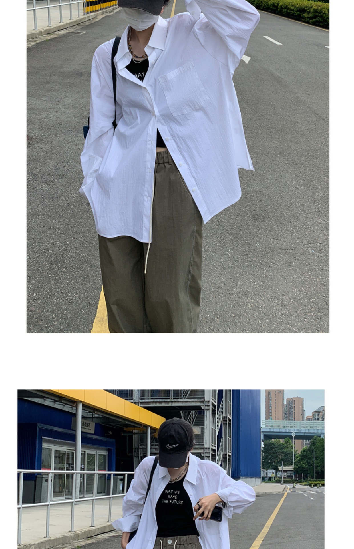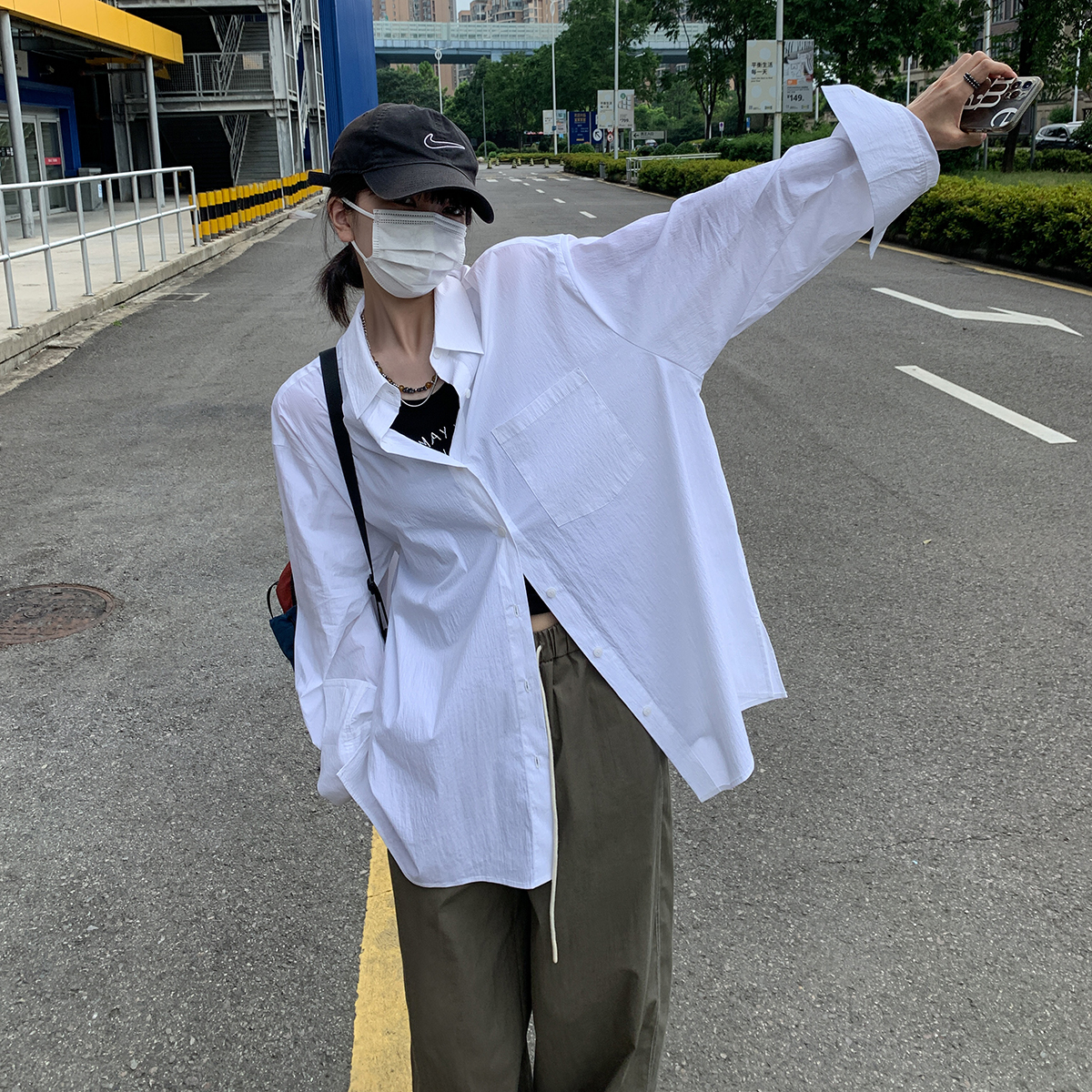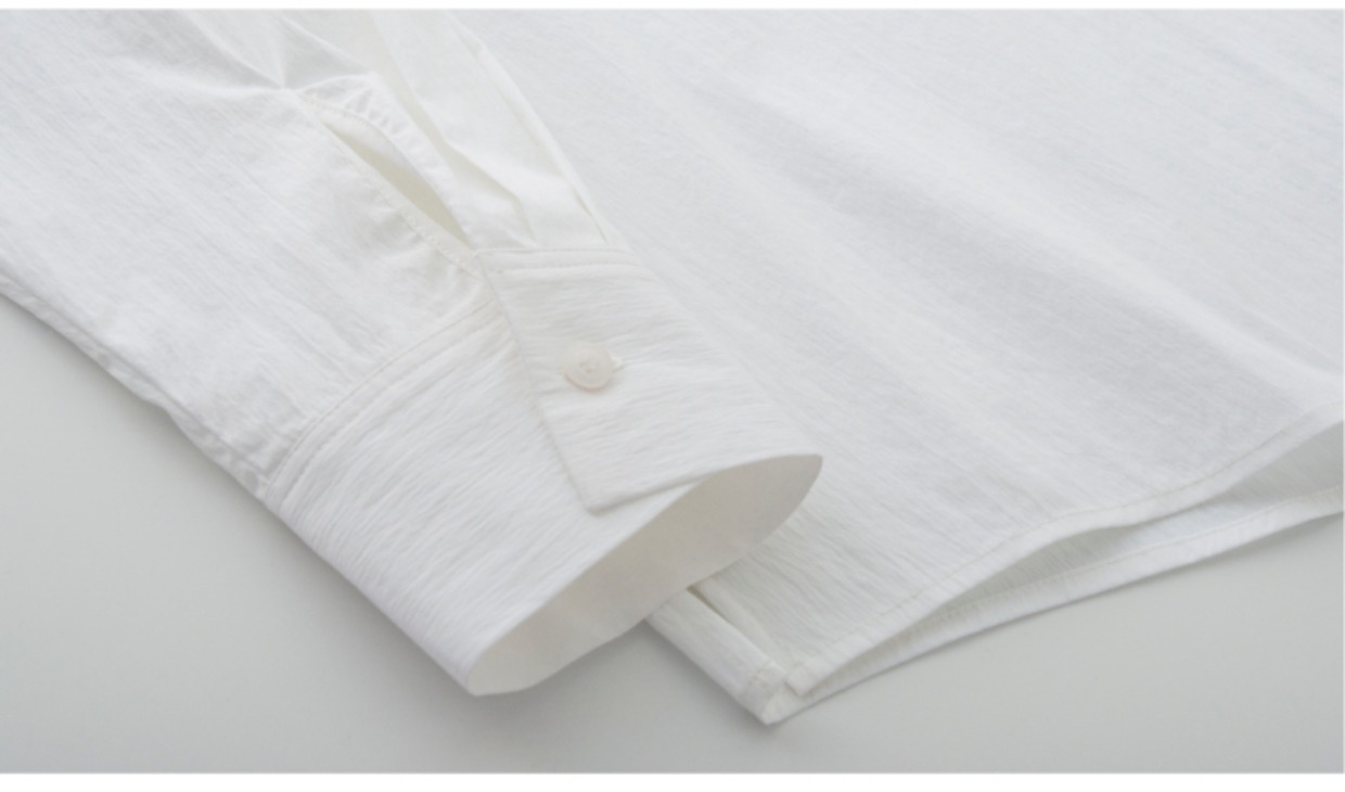 SIXI四喜家春季 肌理感白色長袖襯衫女寬鬆慵懶疊穿BF風襯衫上衣