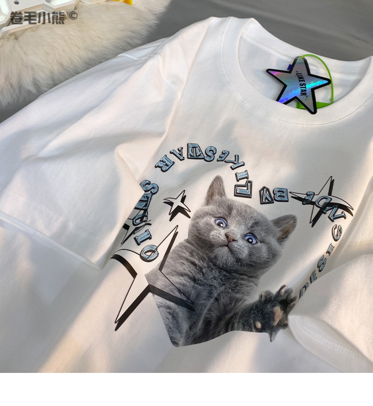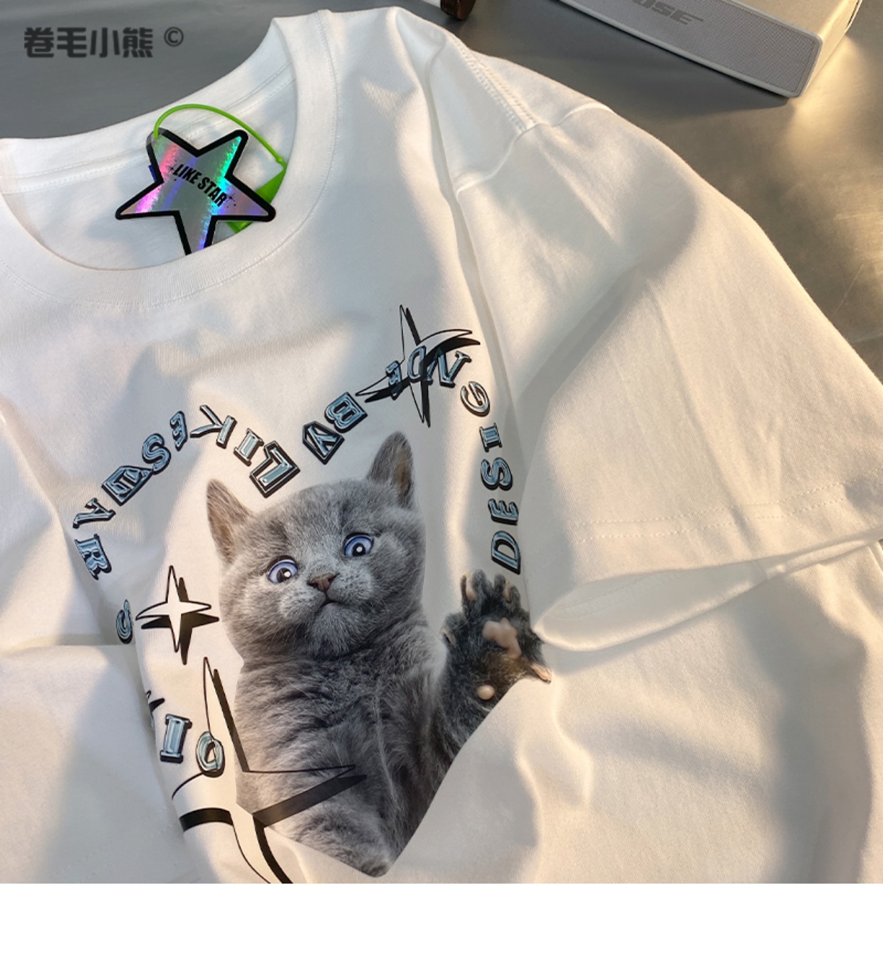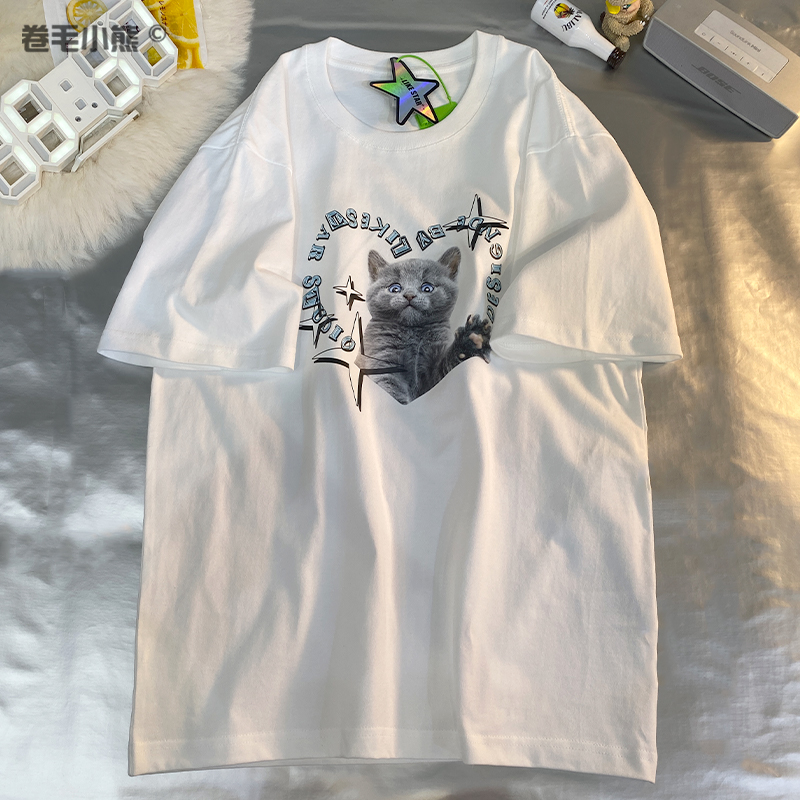 3.30捲毛小熊重磅純棉短袖t恤女2023年新款寬鬆韓版美式上衣