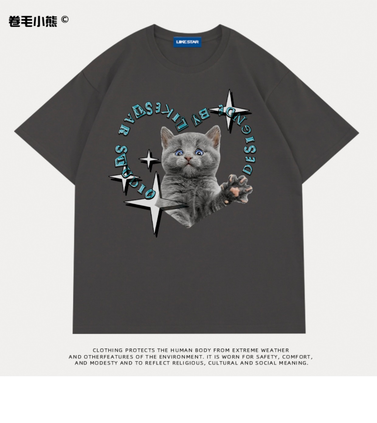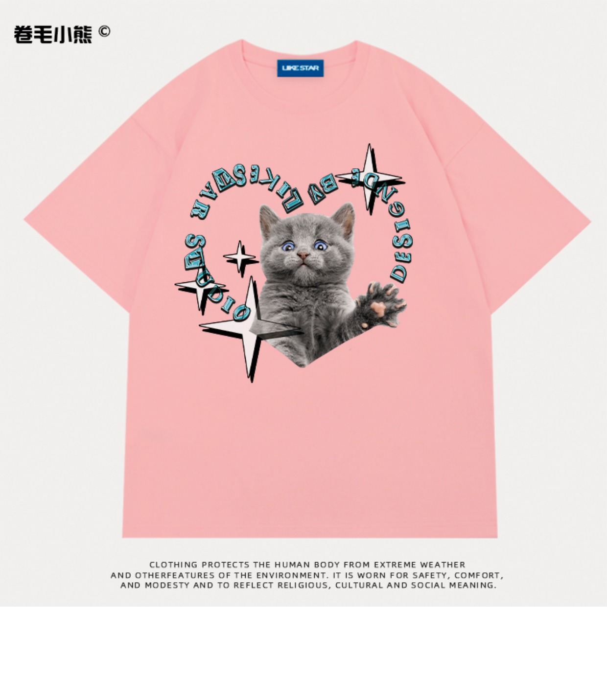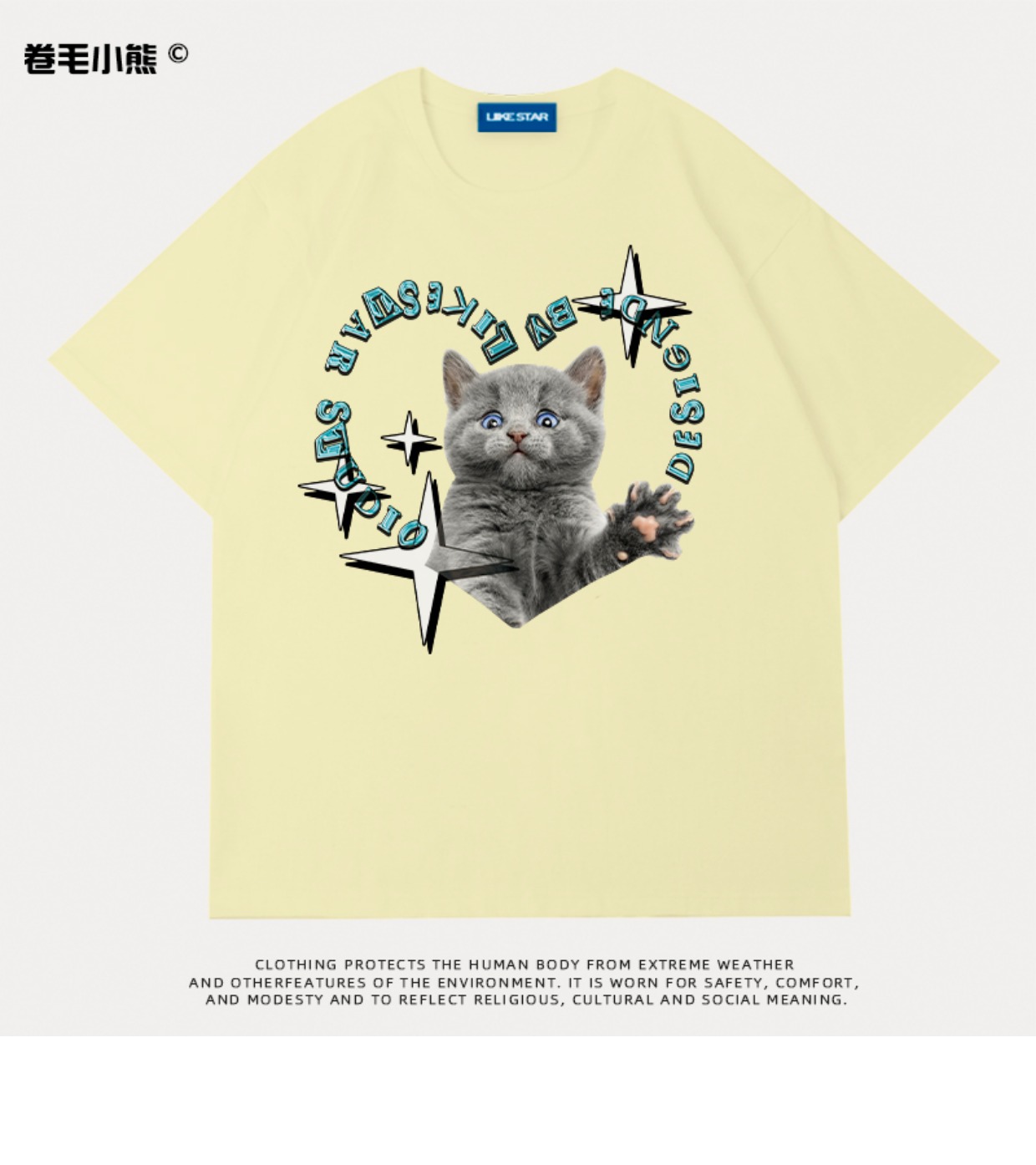 3.30捲毛小熊重磅純棉短袖t恤女2023年新款寬鬆韓版美式上衣