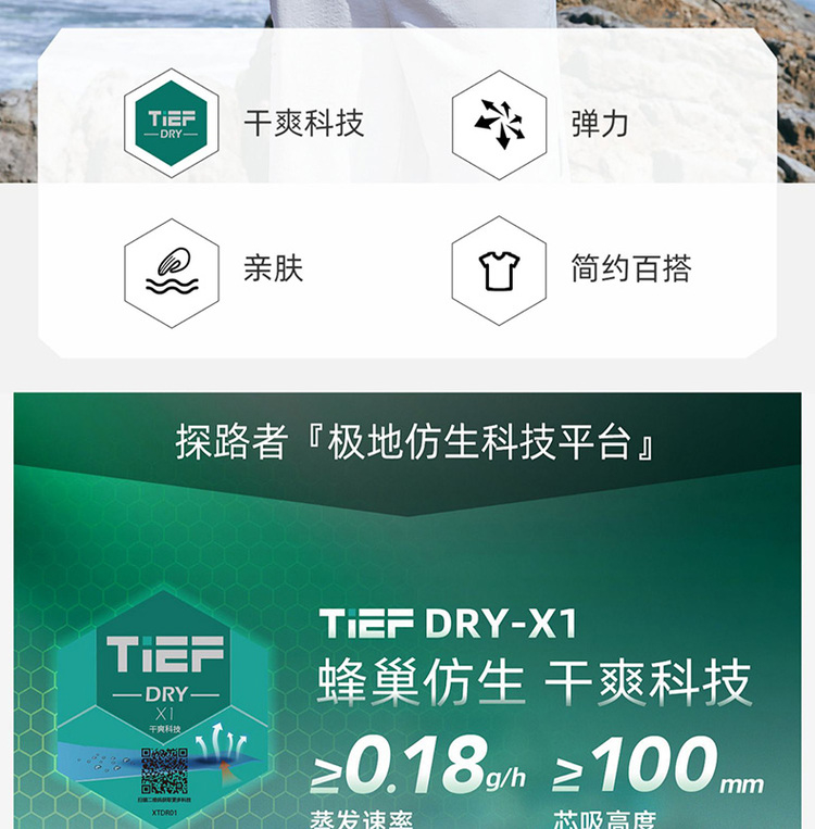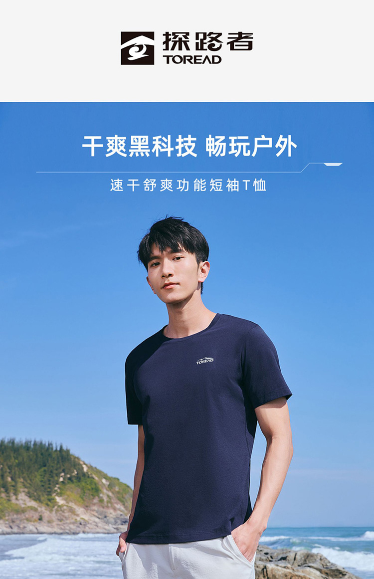 探路者男裝2023新款蜂巢仿生戶外登山徒步速乾短袖T恤TAJJBL81729