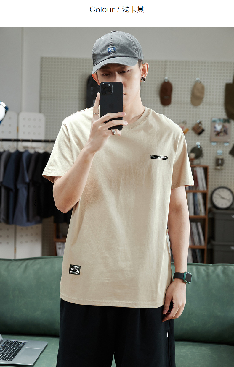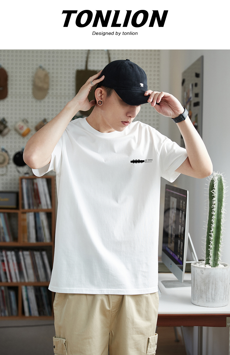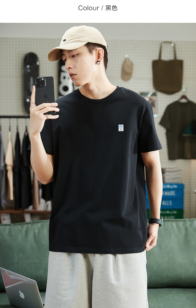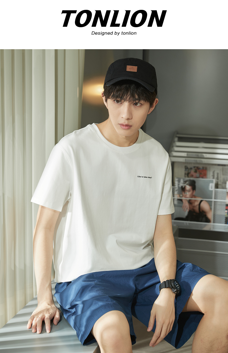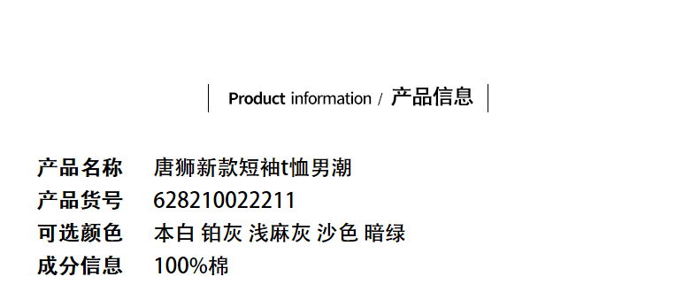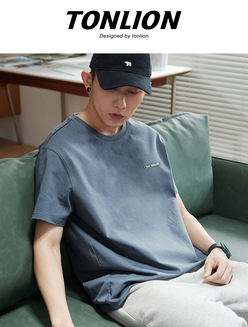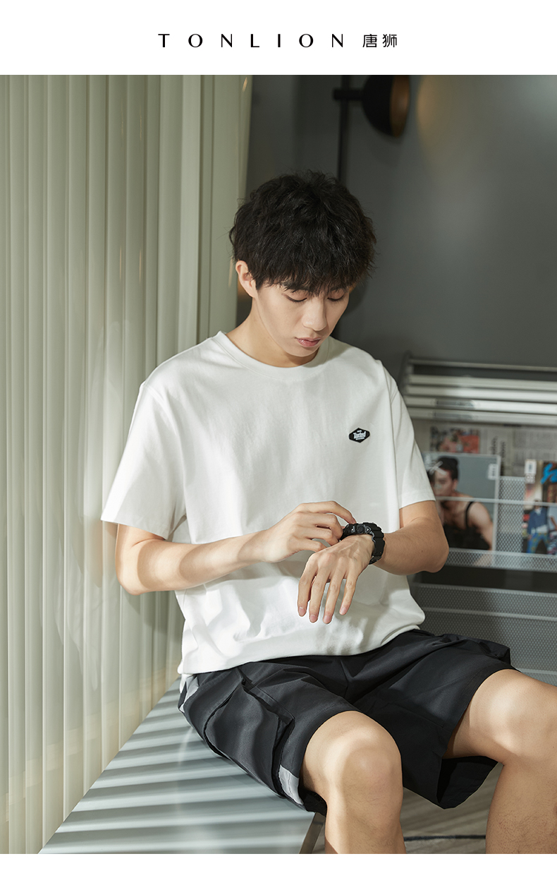 唐獅2023春夏新款短袖T恤男圓領半袖純色寬鬆潮流衣服純棉內搭衣