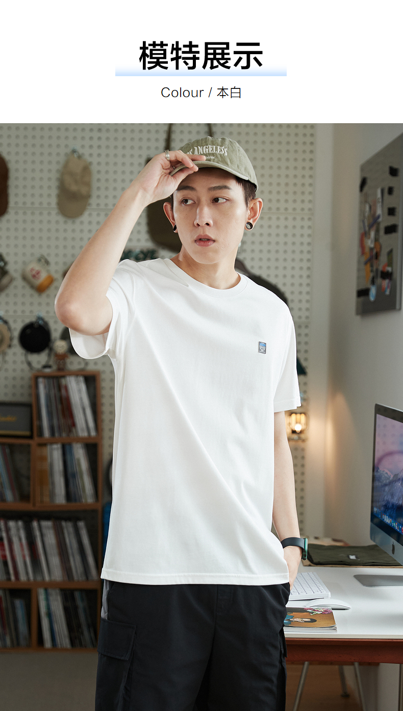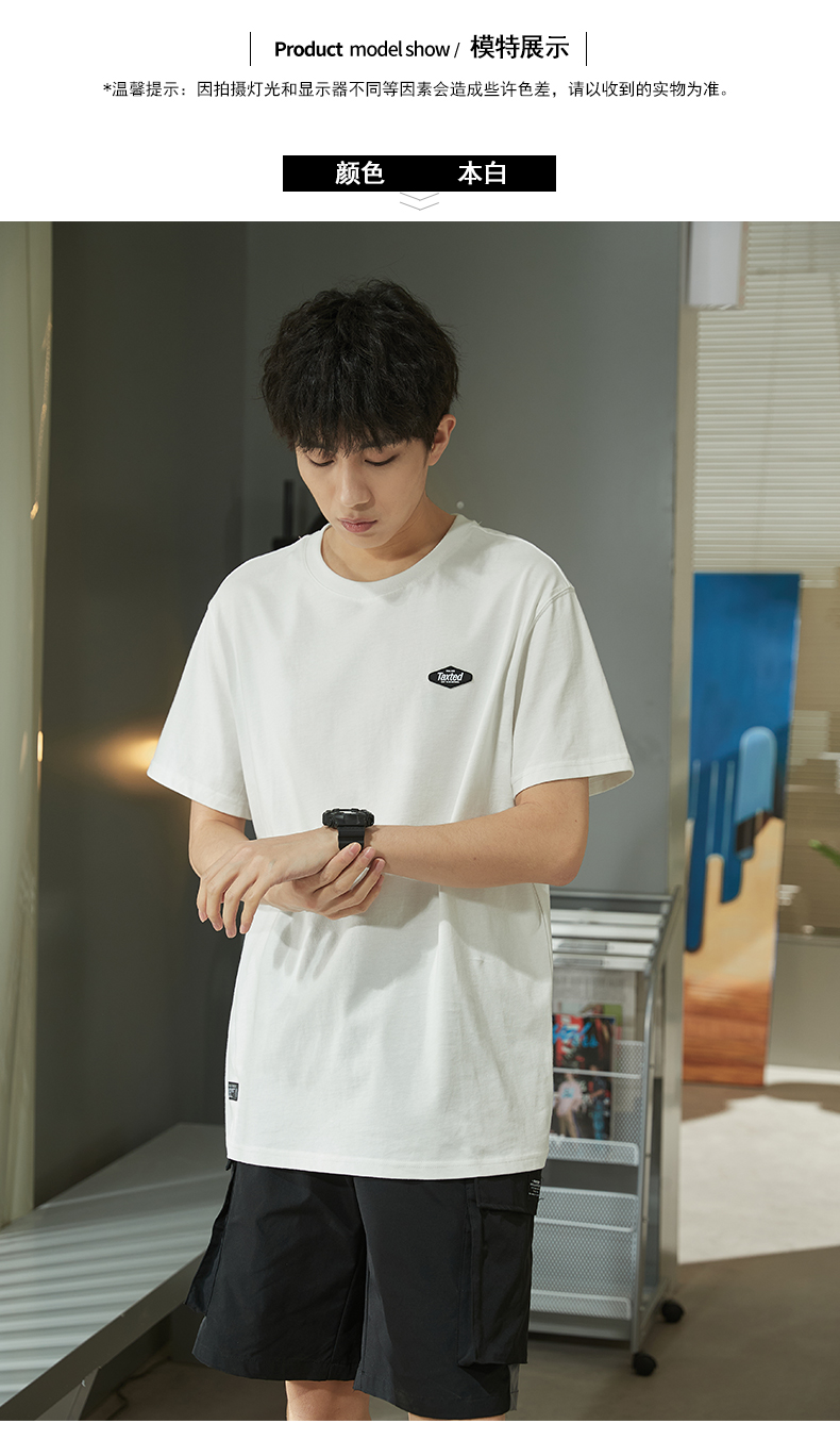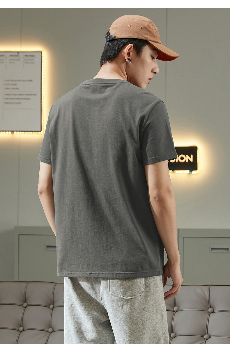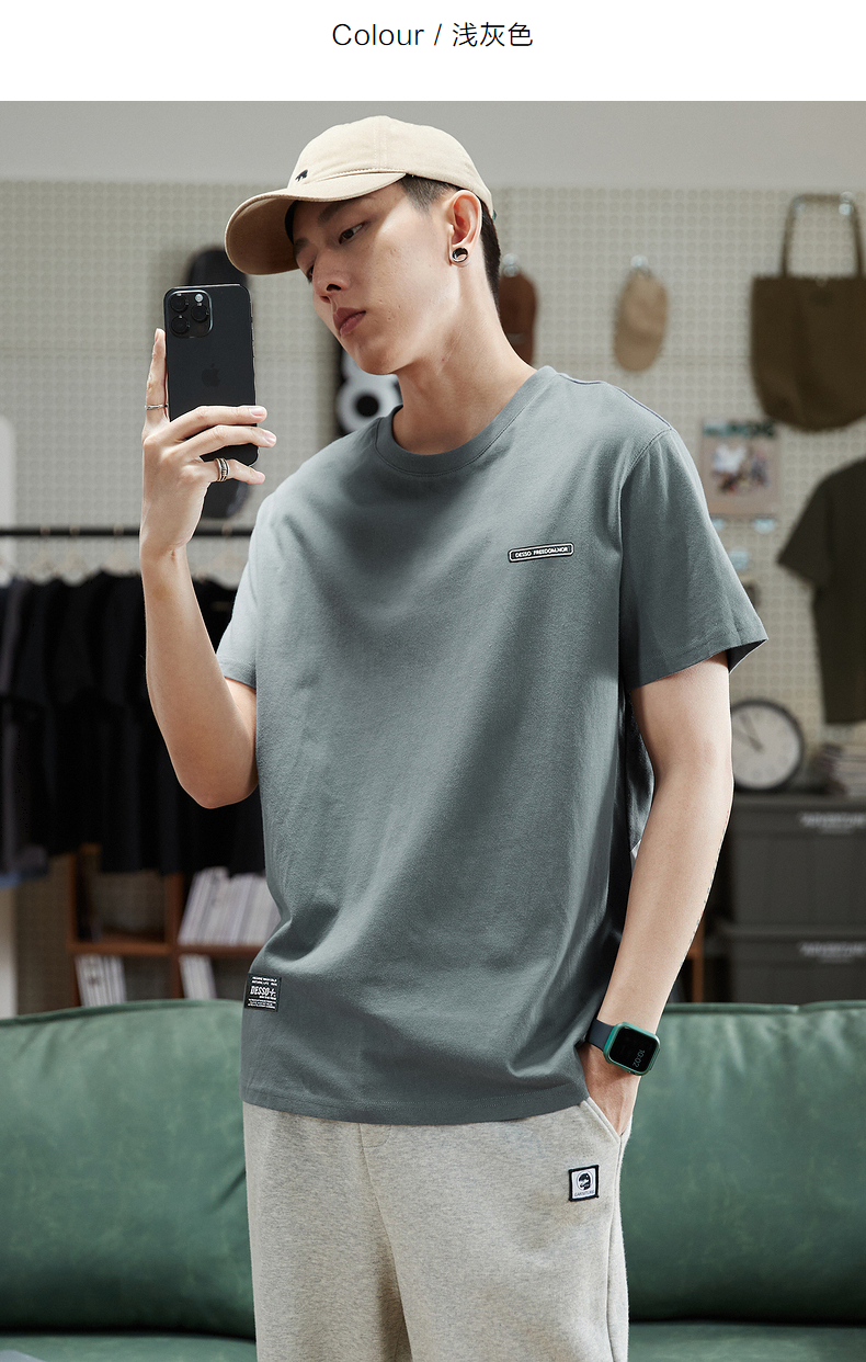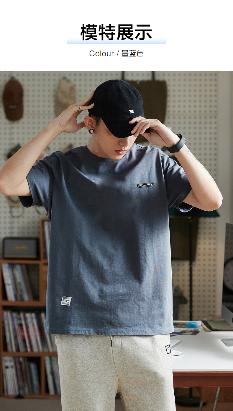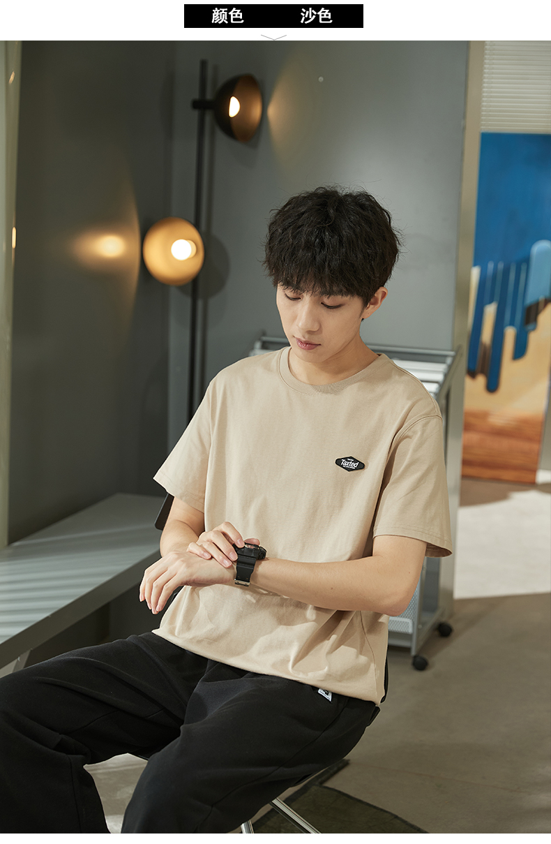 唐獅2023春夏新款短袖T恤男圓領半袖純色寬鬆潮流衣服純棉內搭衣