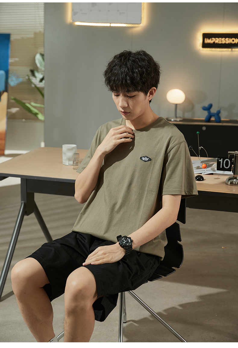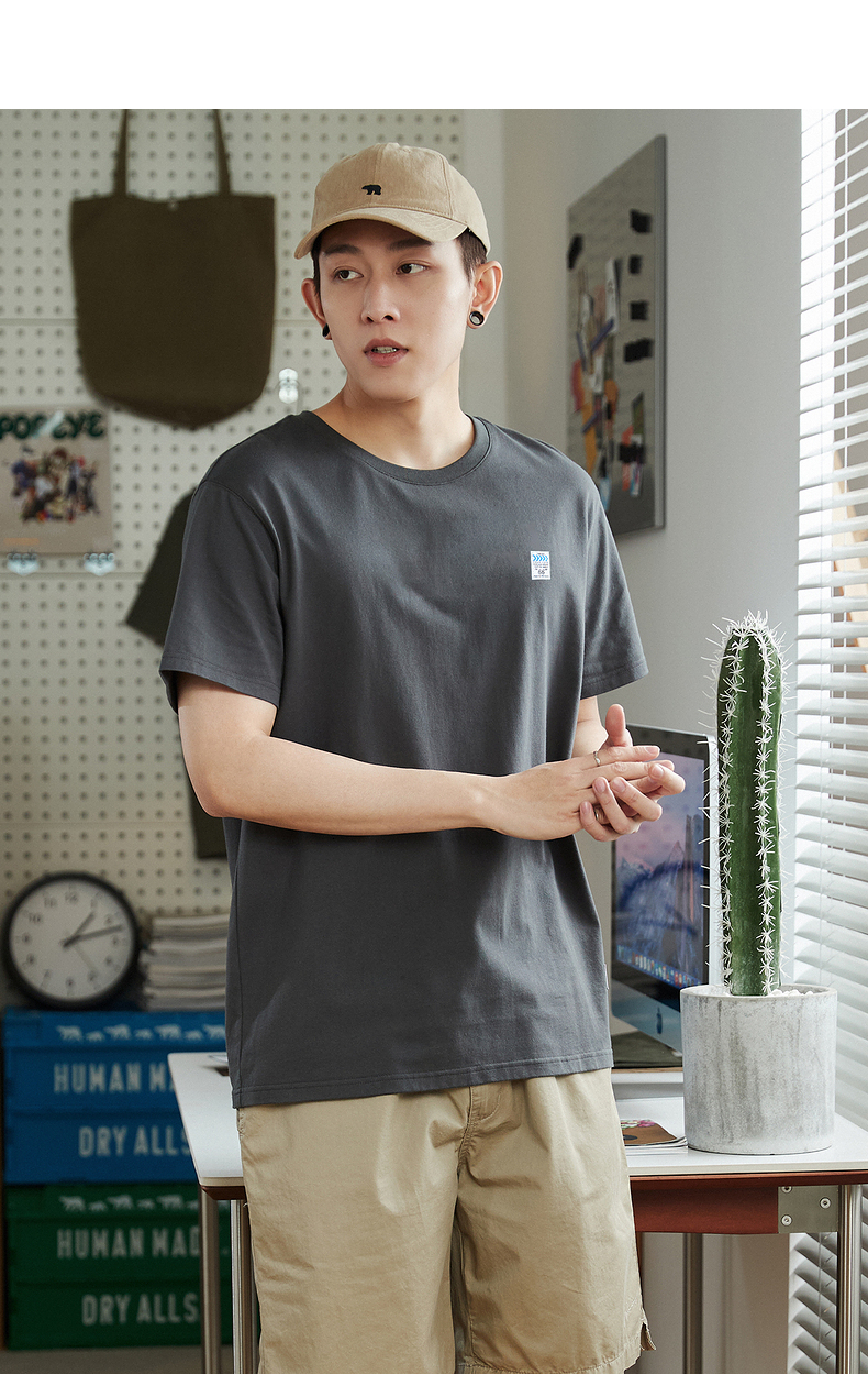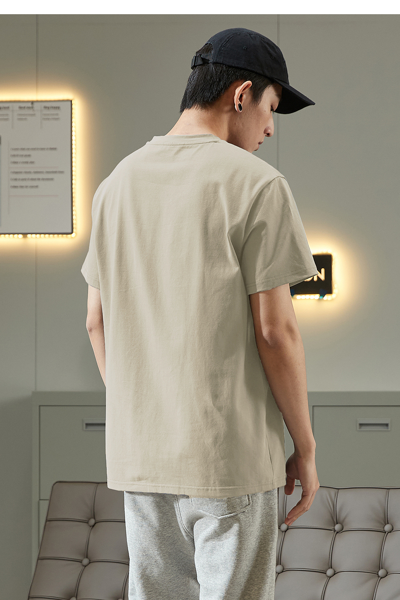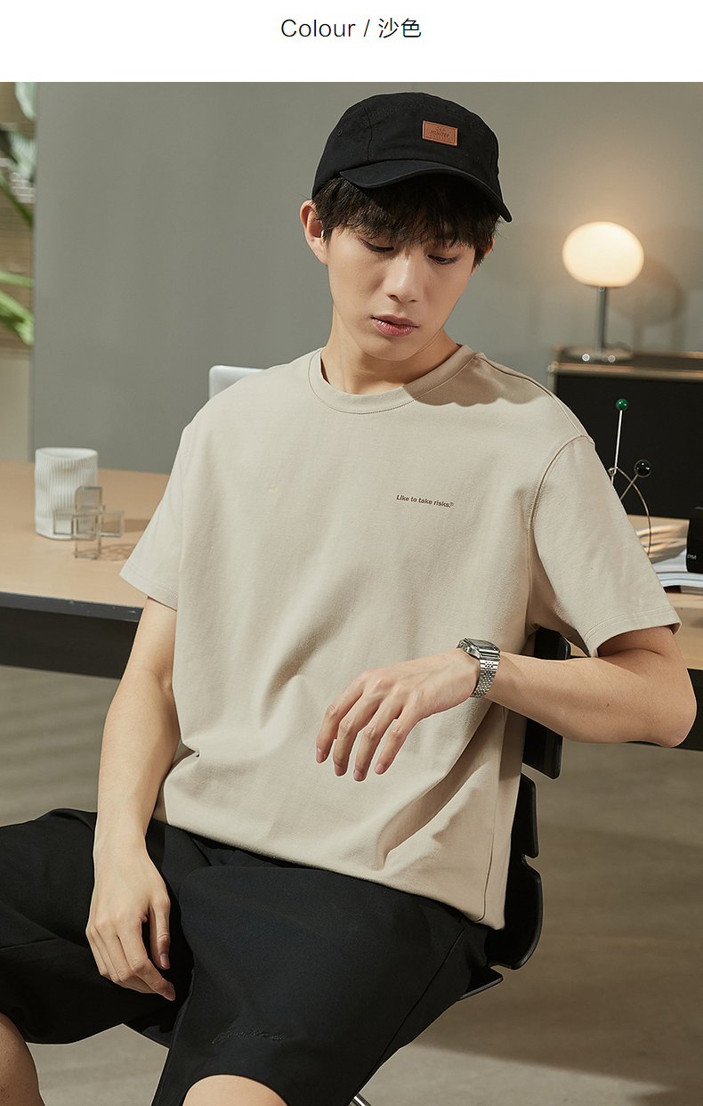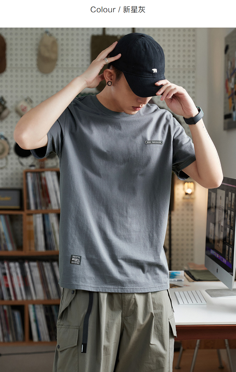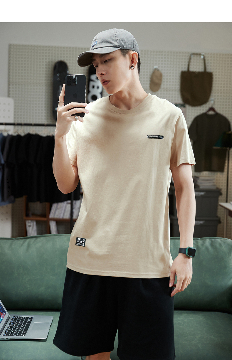 唐獅2023春夏新款短袖T恤男圓領半袖純色寬鬆潮流衣服純棉內搭衣