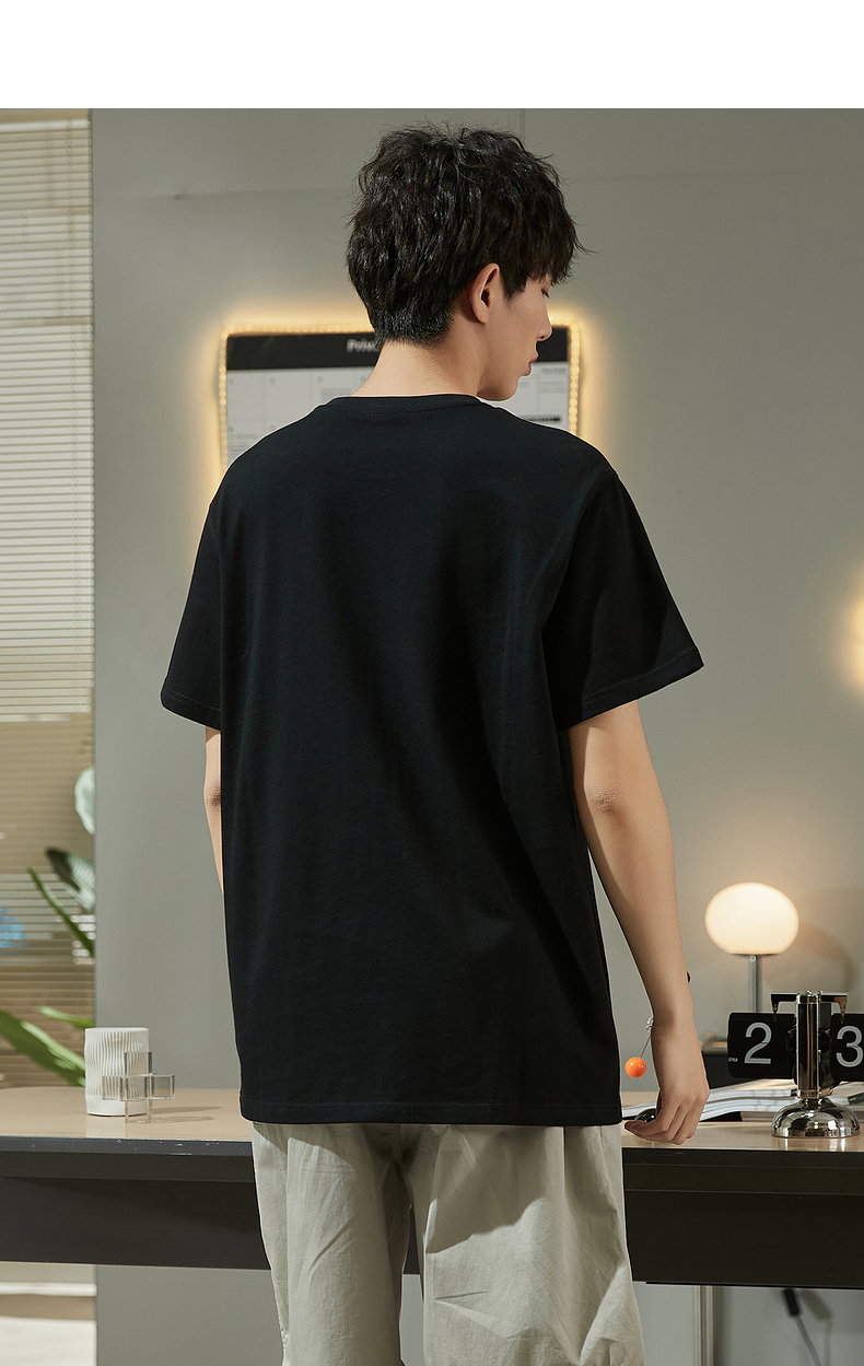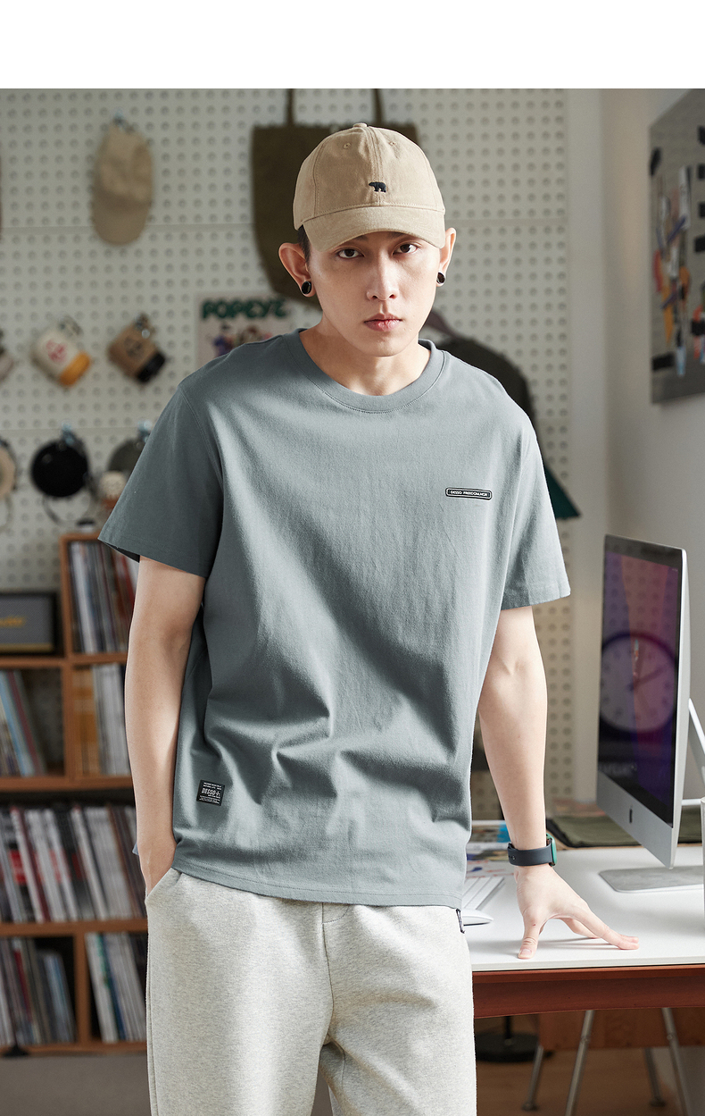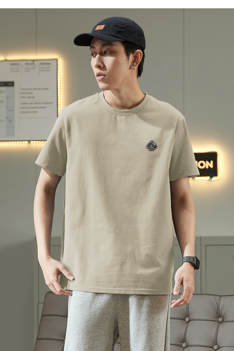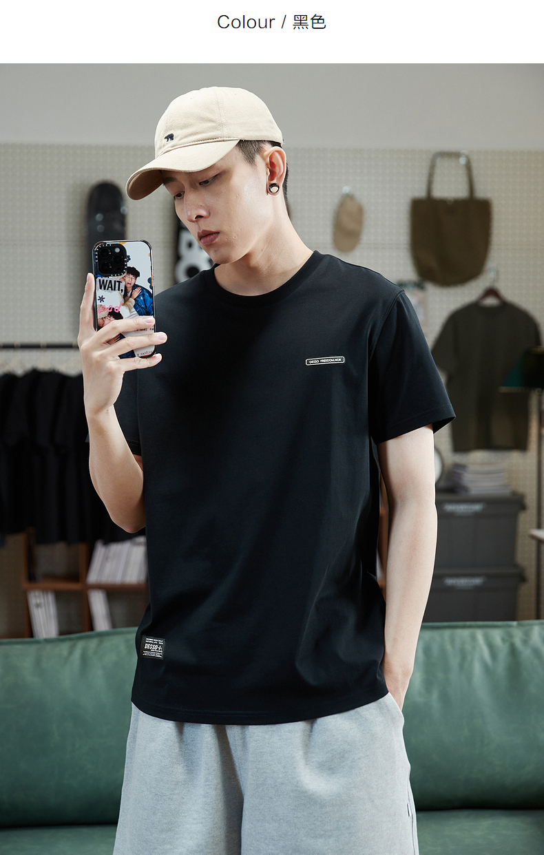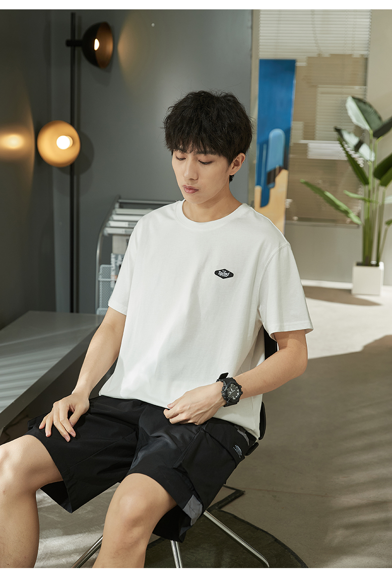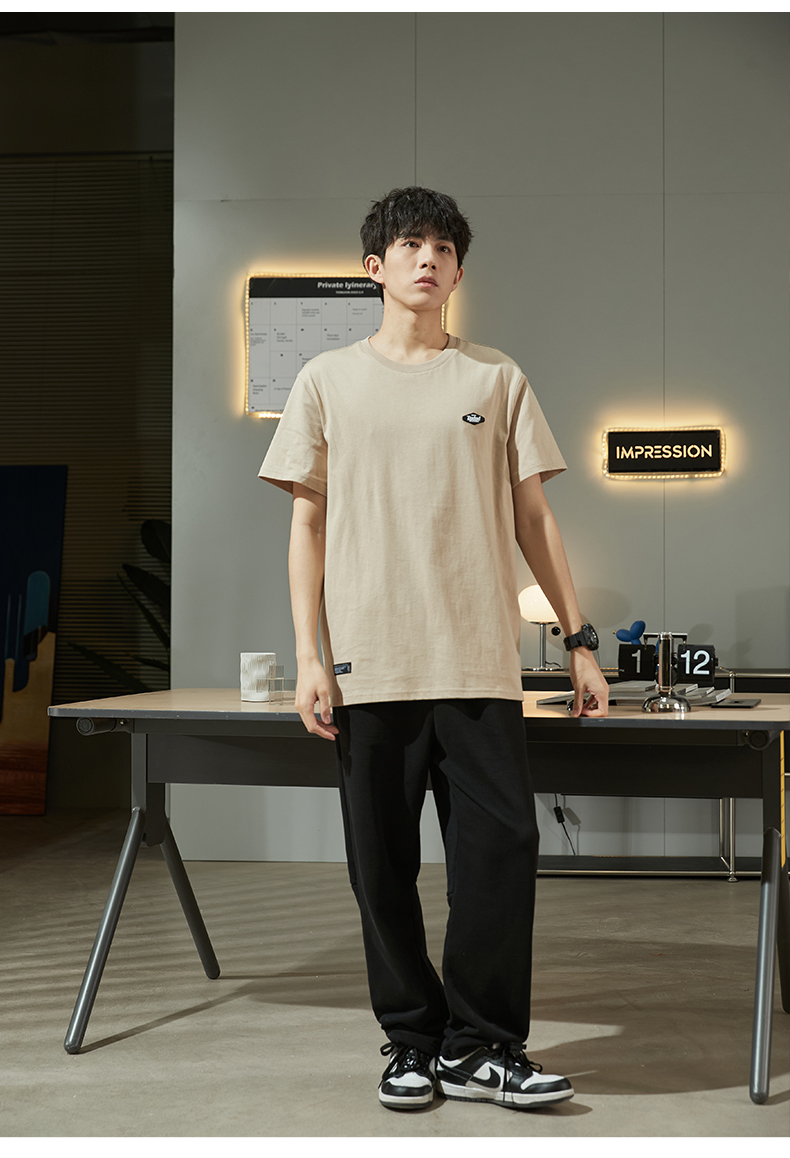 唐獅2023春夏新款短袖T恤男圓領半袖純色寬鬆潮流衣服純棉內搭衣