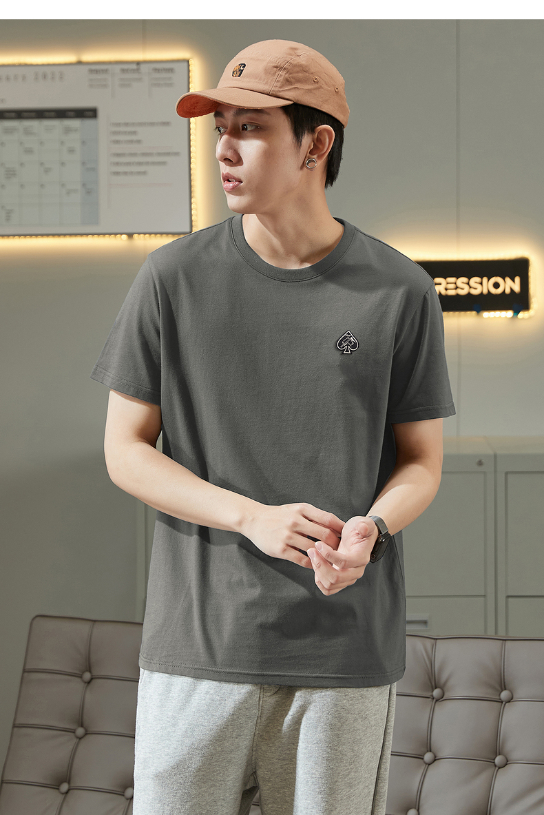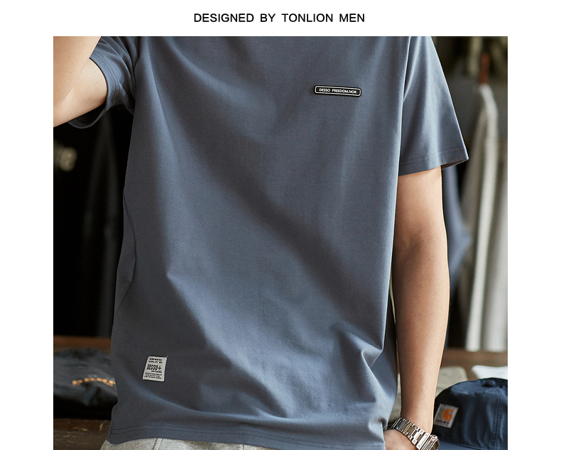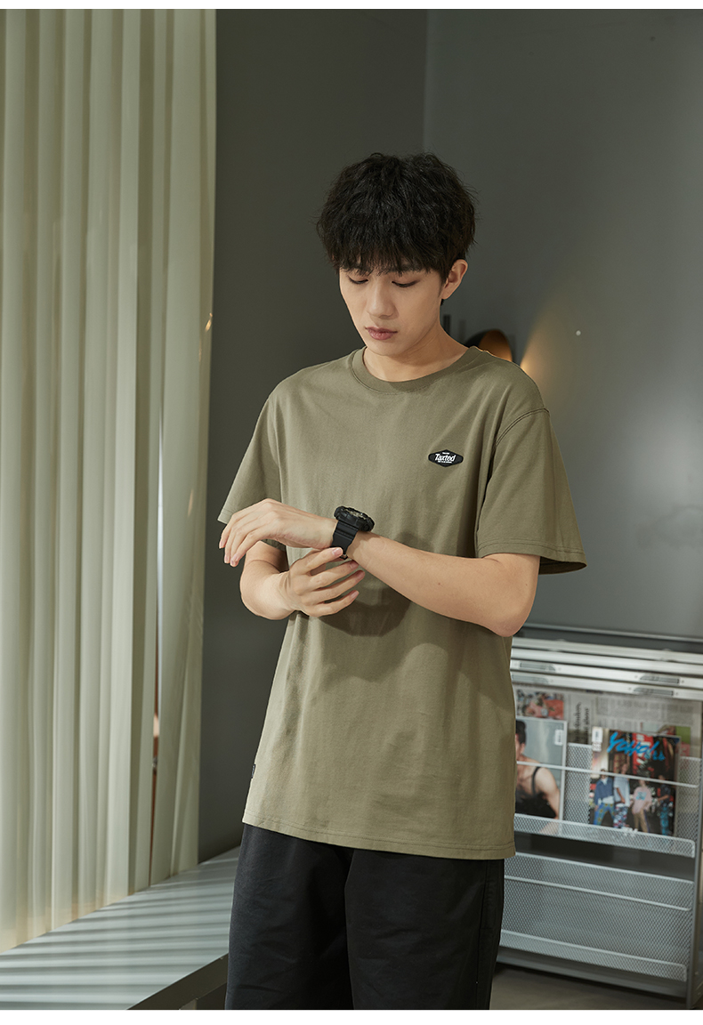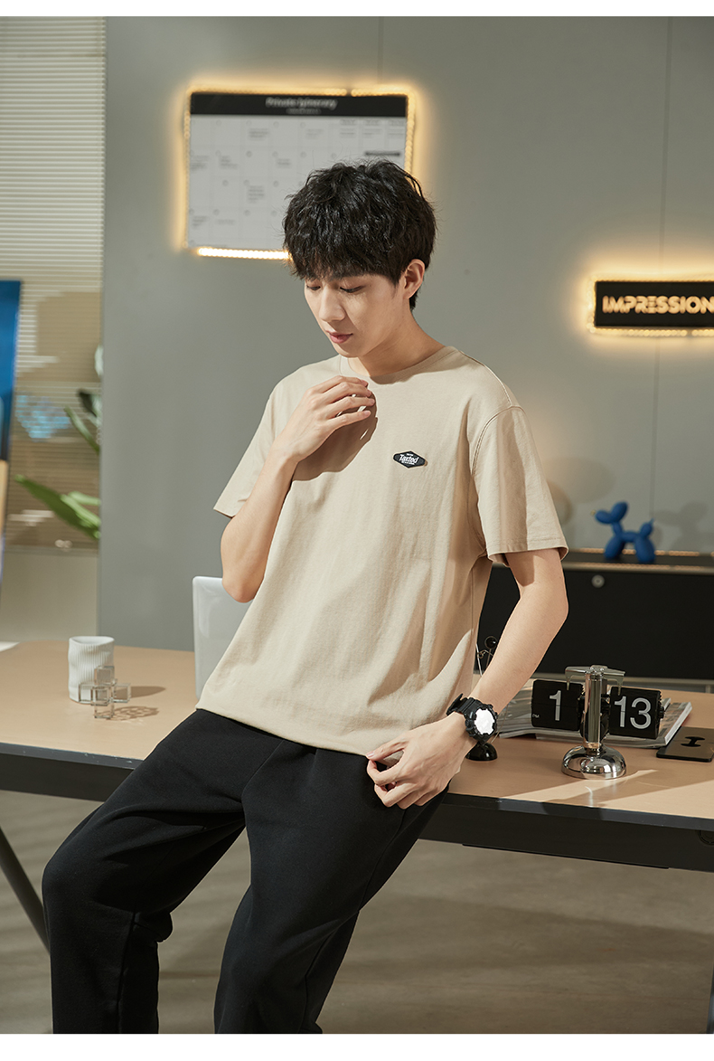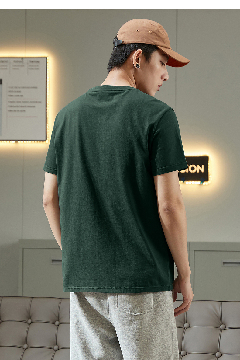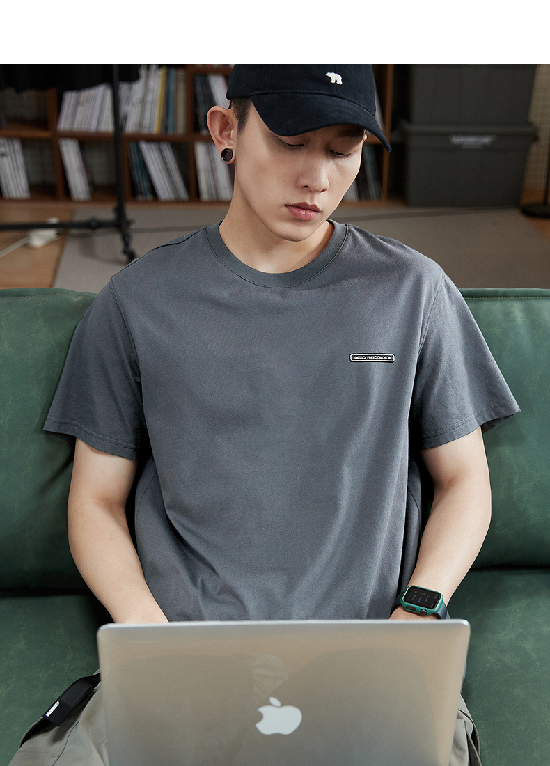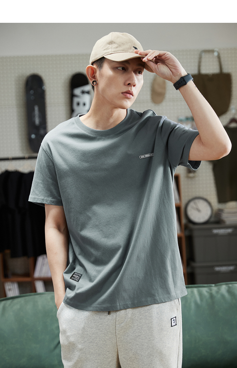 唐獅2023春夏新款短袖T恤男圓領半袖純色寬鬆潮流衣服純棉內搭衣