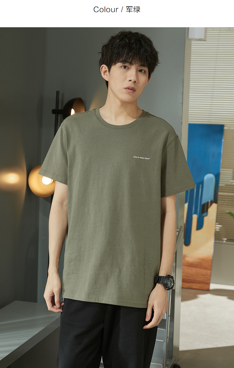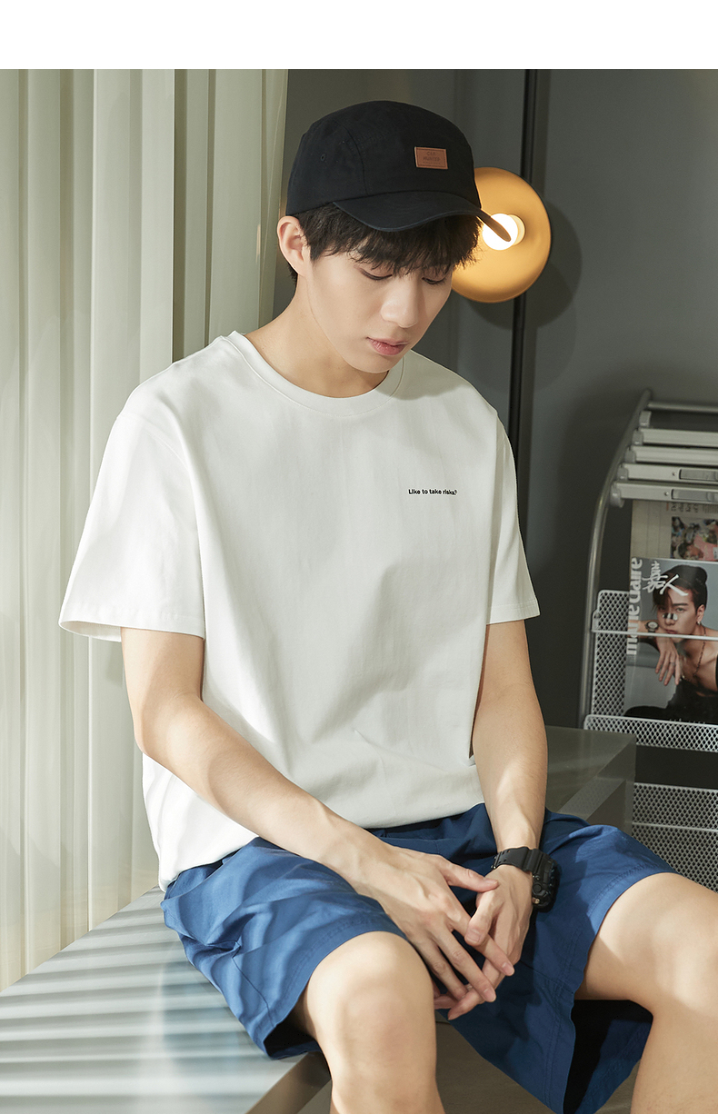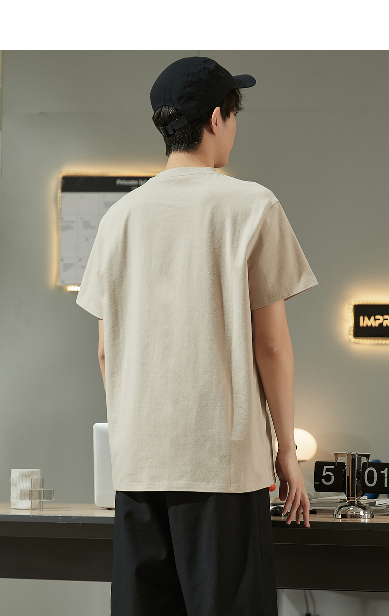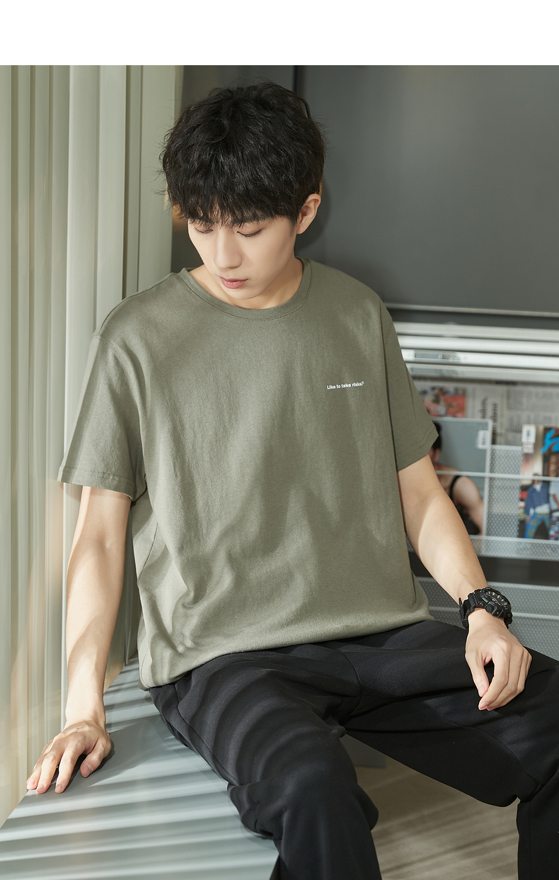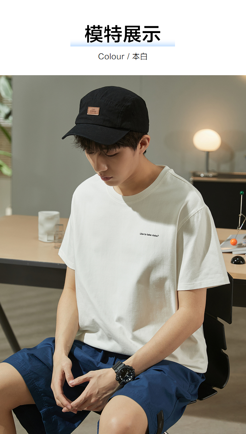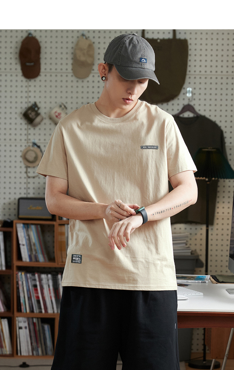 唐獅2023春夏新款短袖T恤男圓領半袖純色寬鬆潮流衣服純棉內搭衣