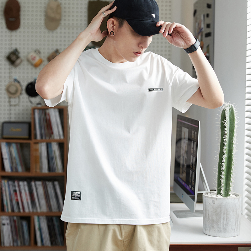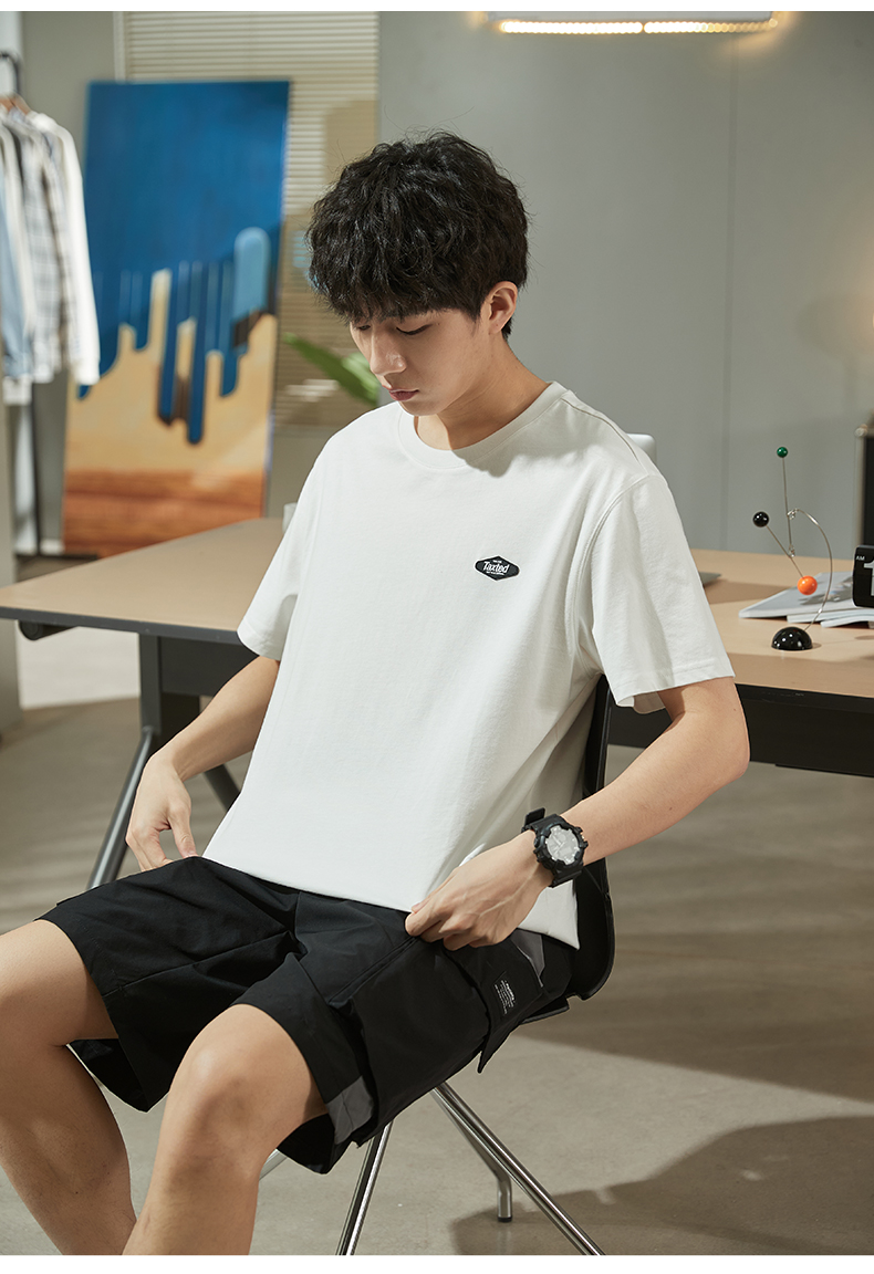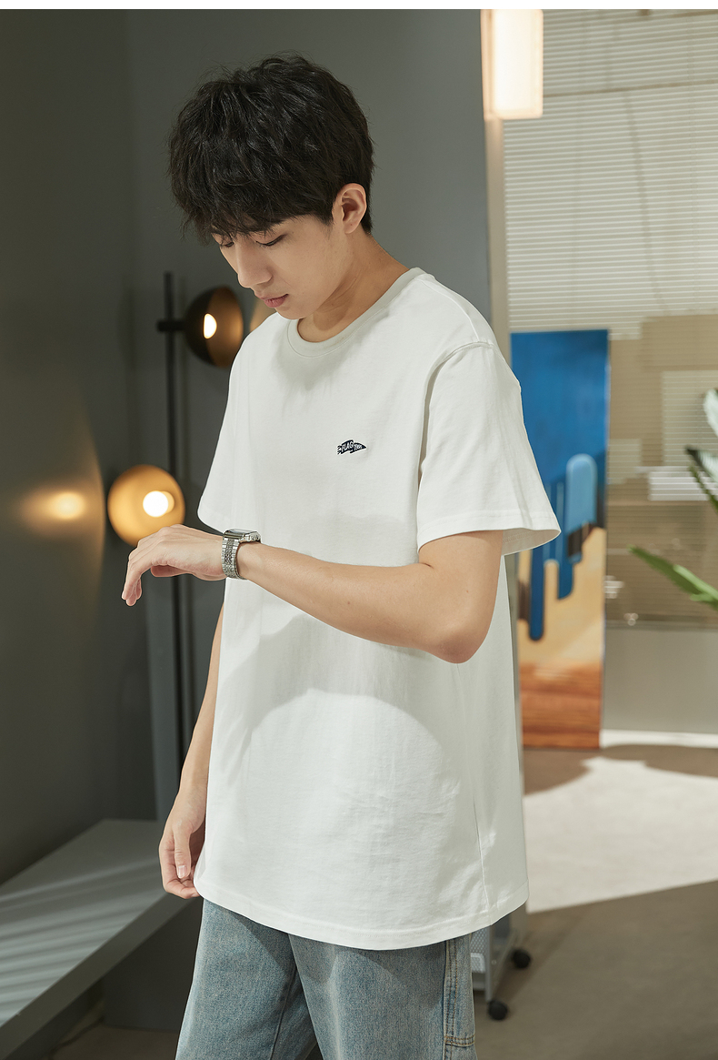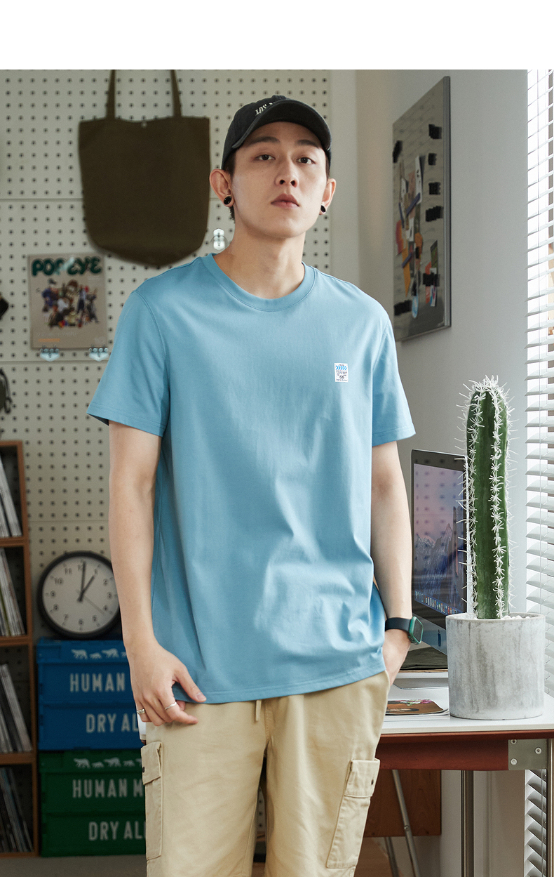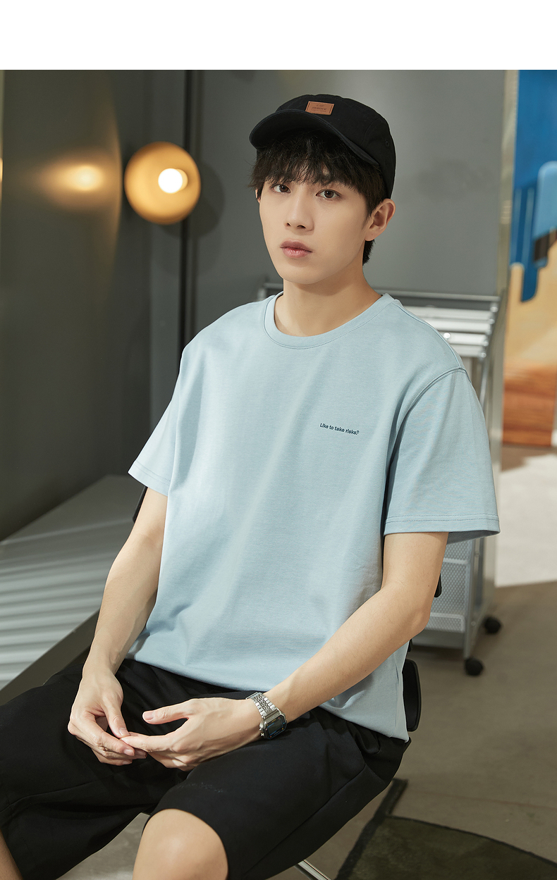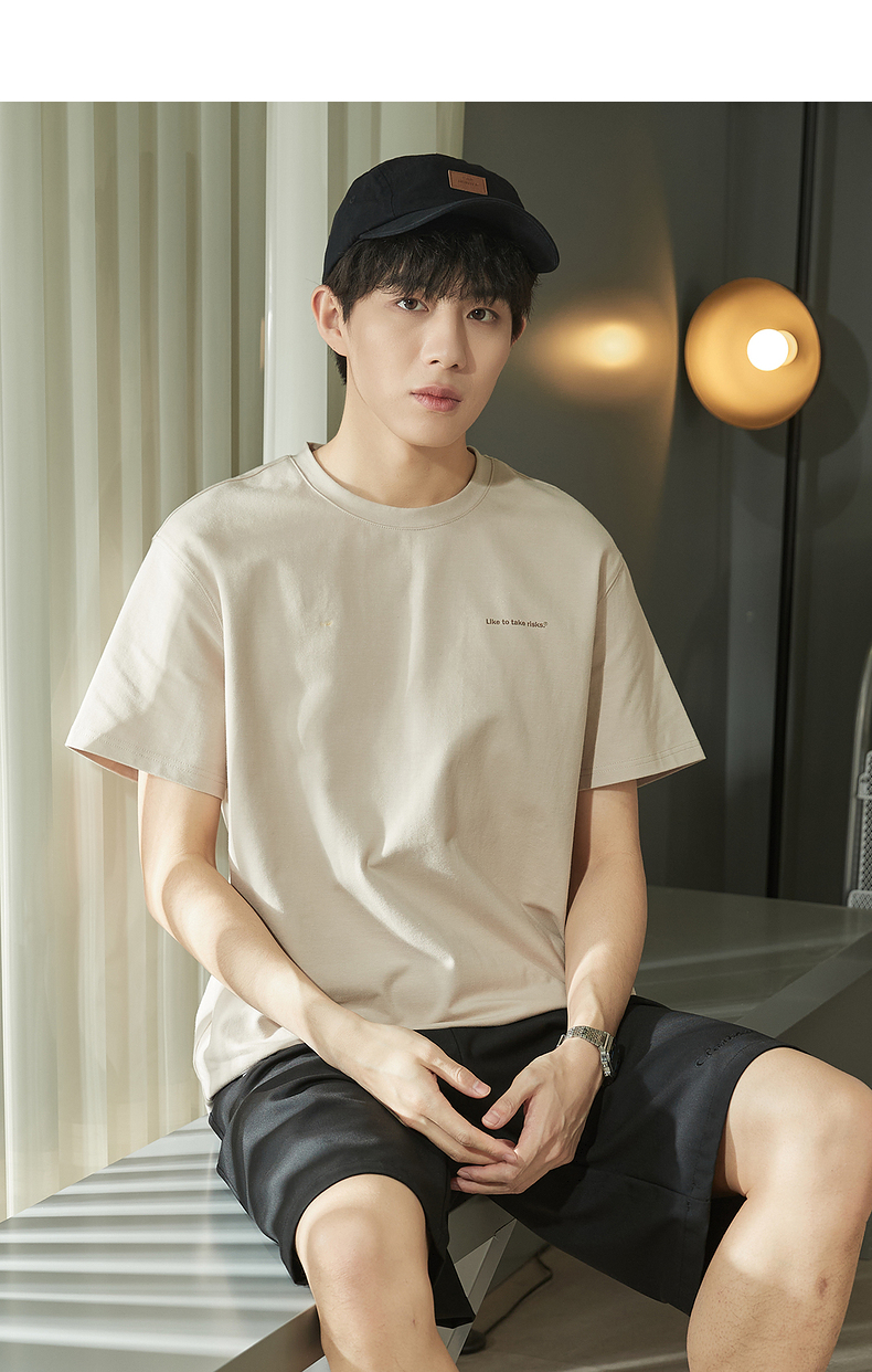 唐獅2023春夏新款短袖T恤男圓領半袖純色寬鬆潮流衣服純棉內搭衣
