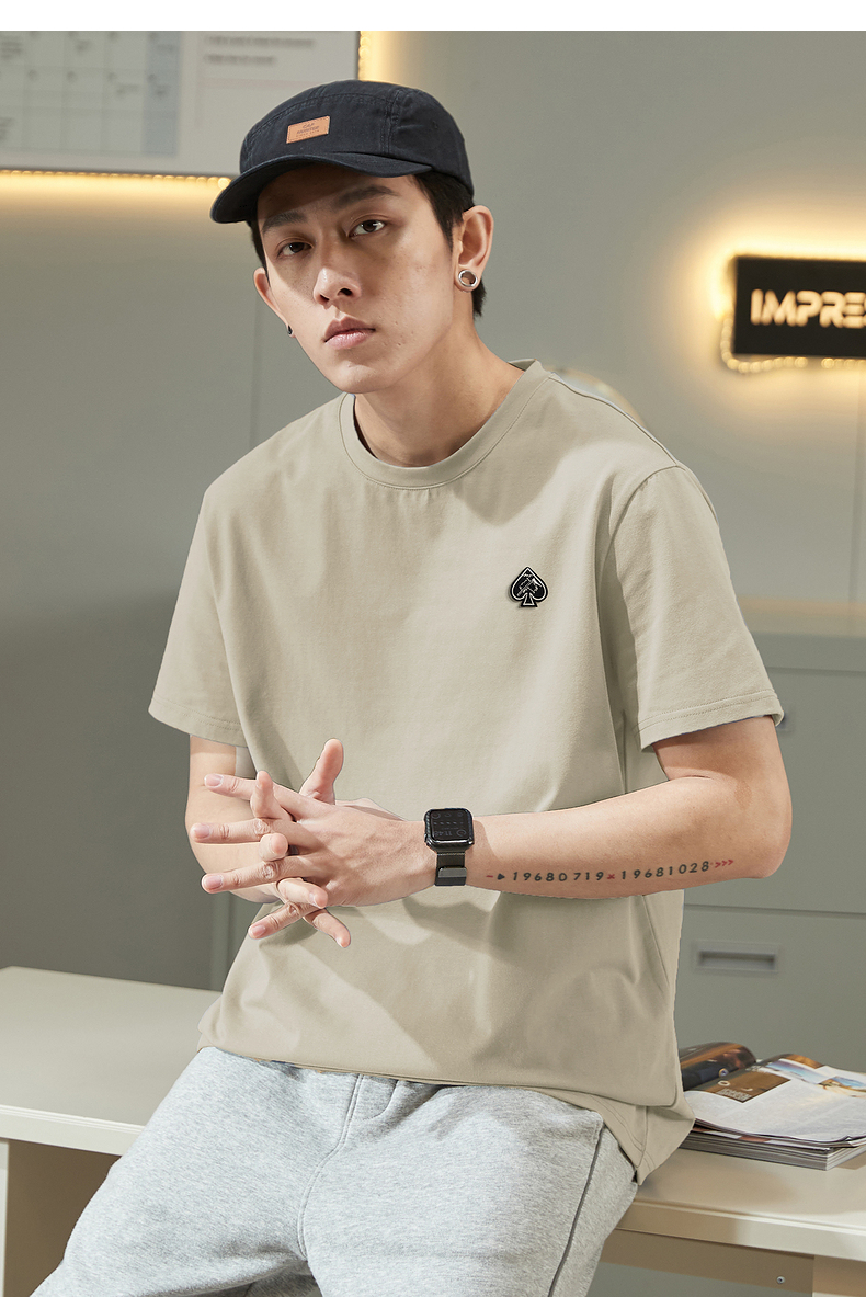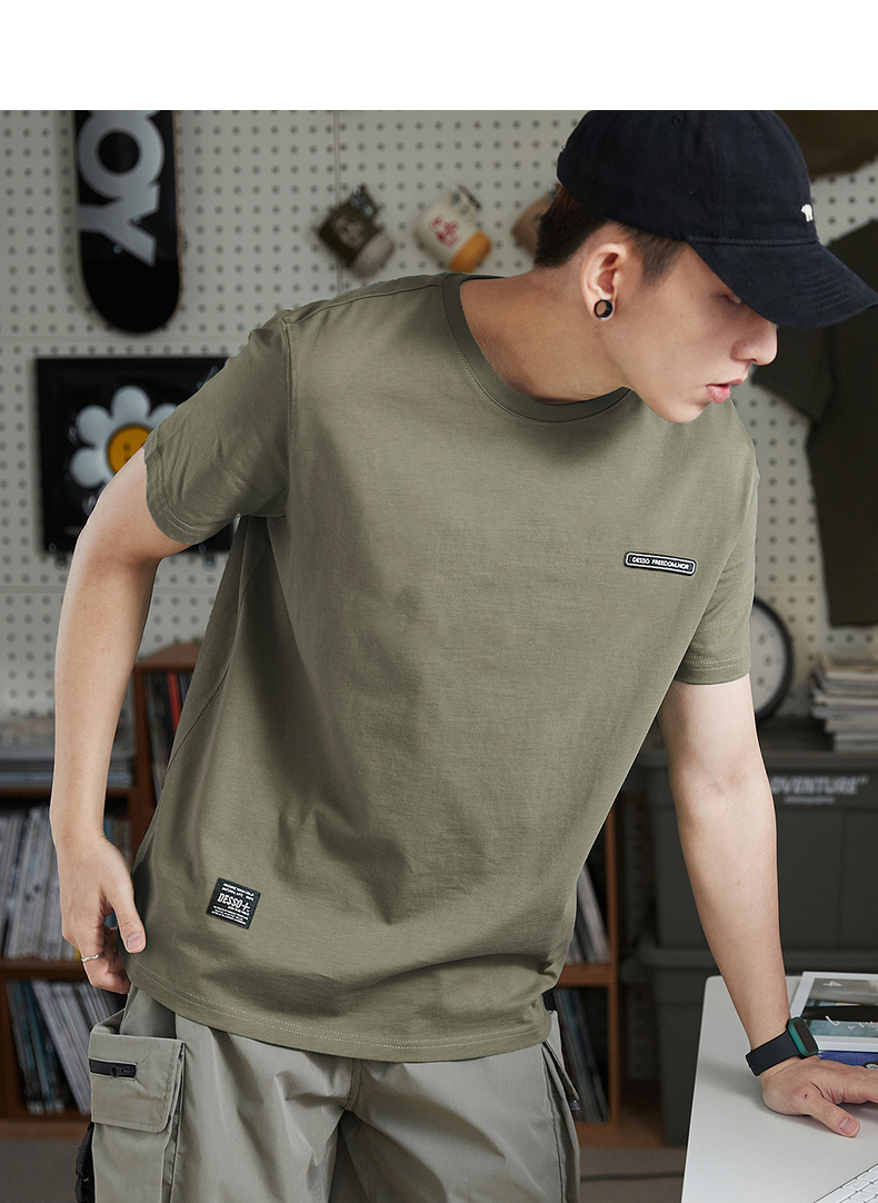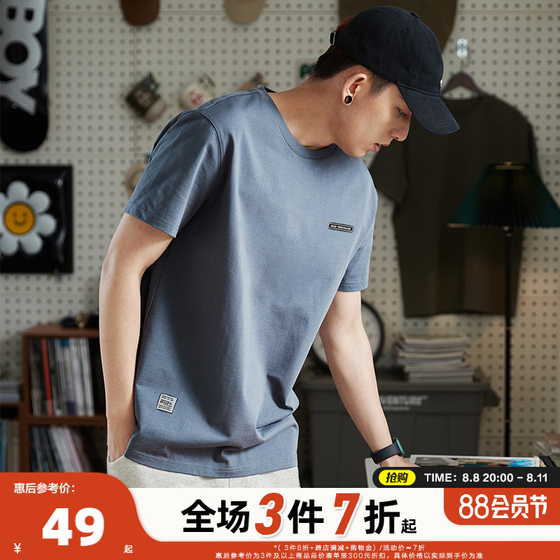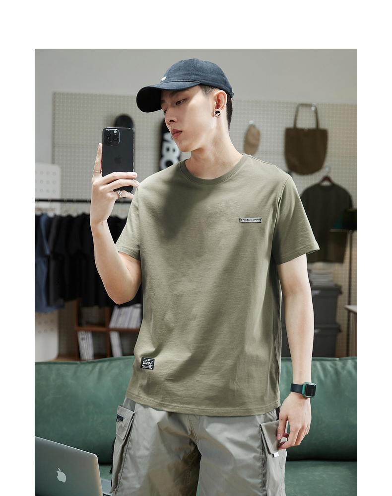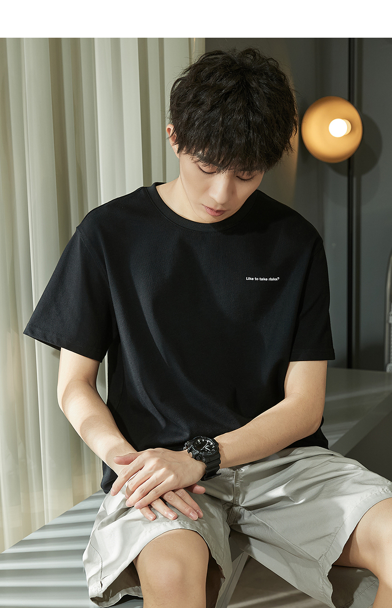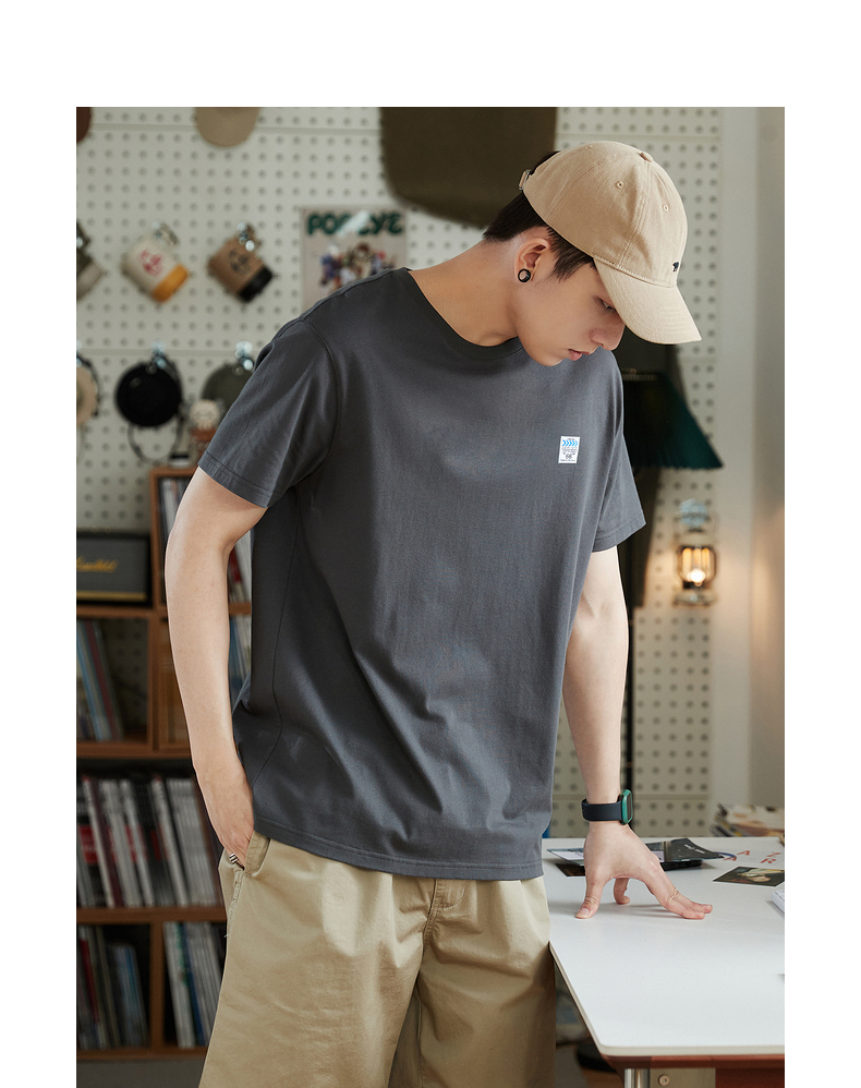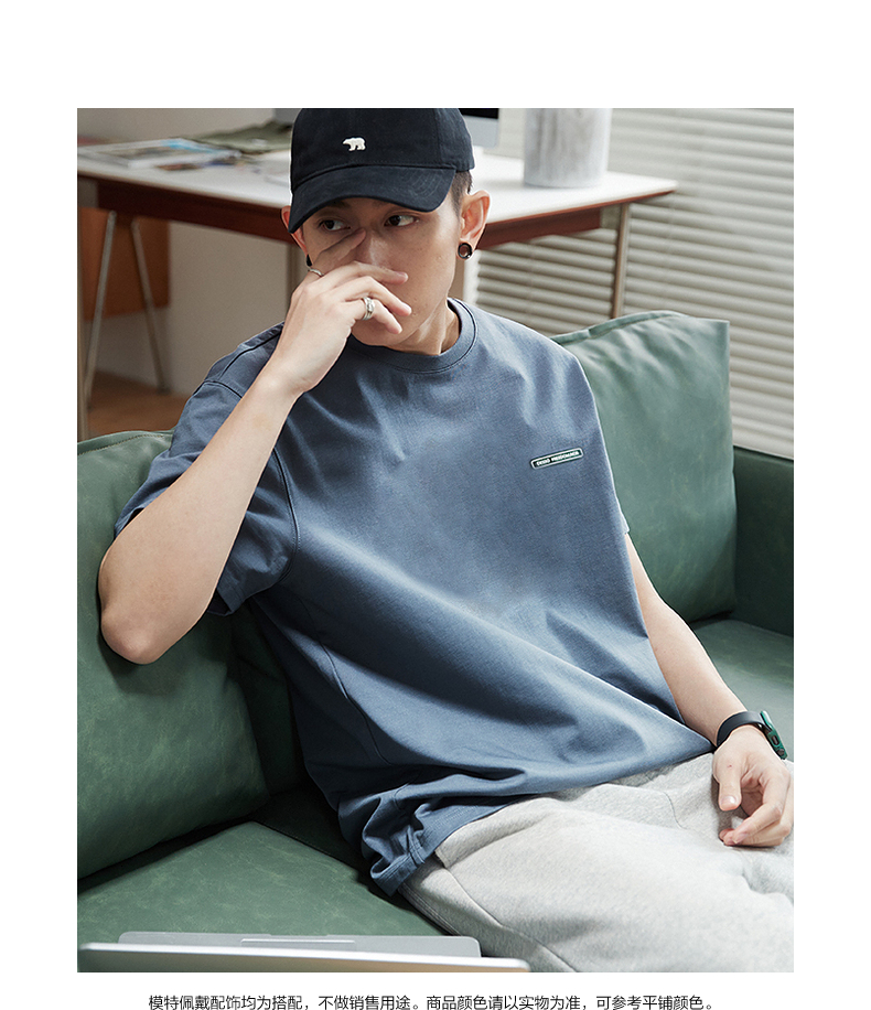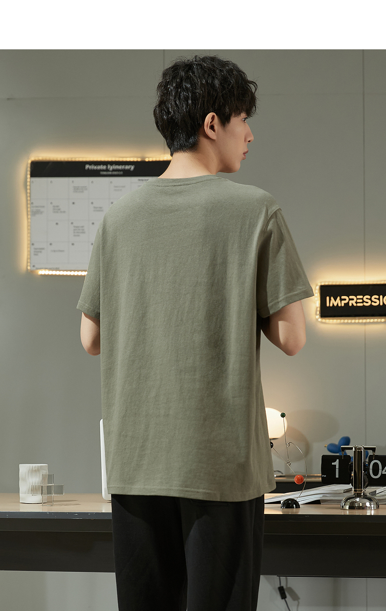 唐獅2023春夏新款短袖T恤男圓領半袖純色寬鬆潮流衣服純棉內搭衣