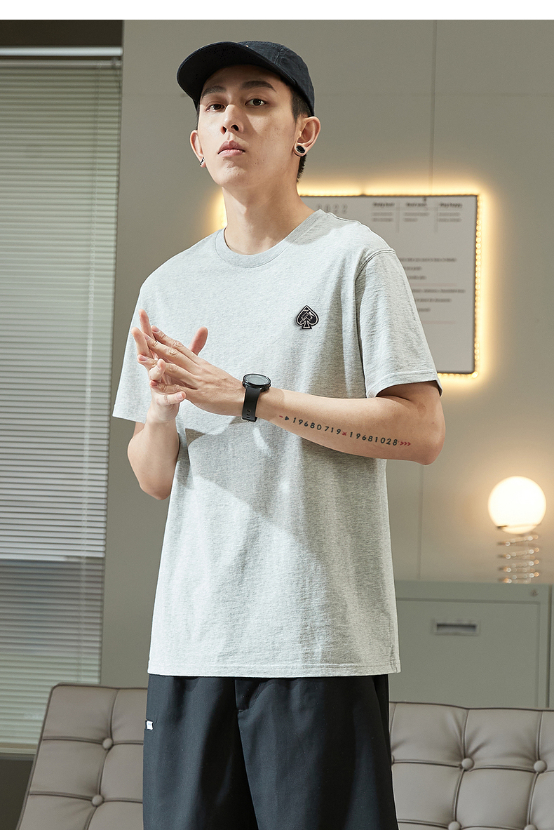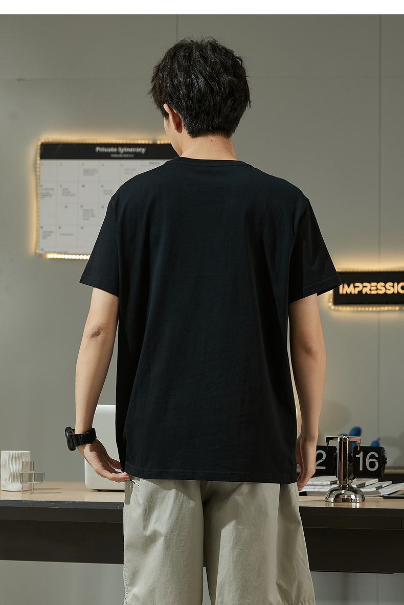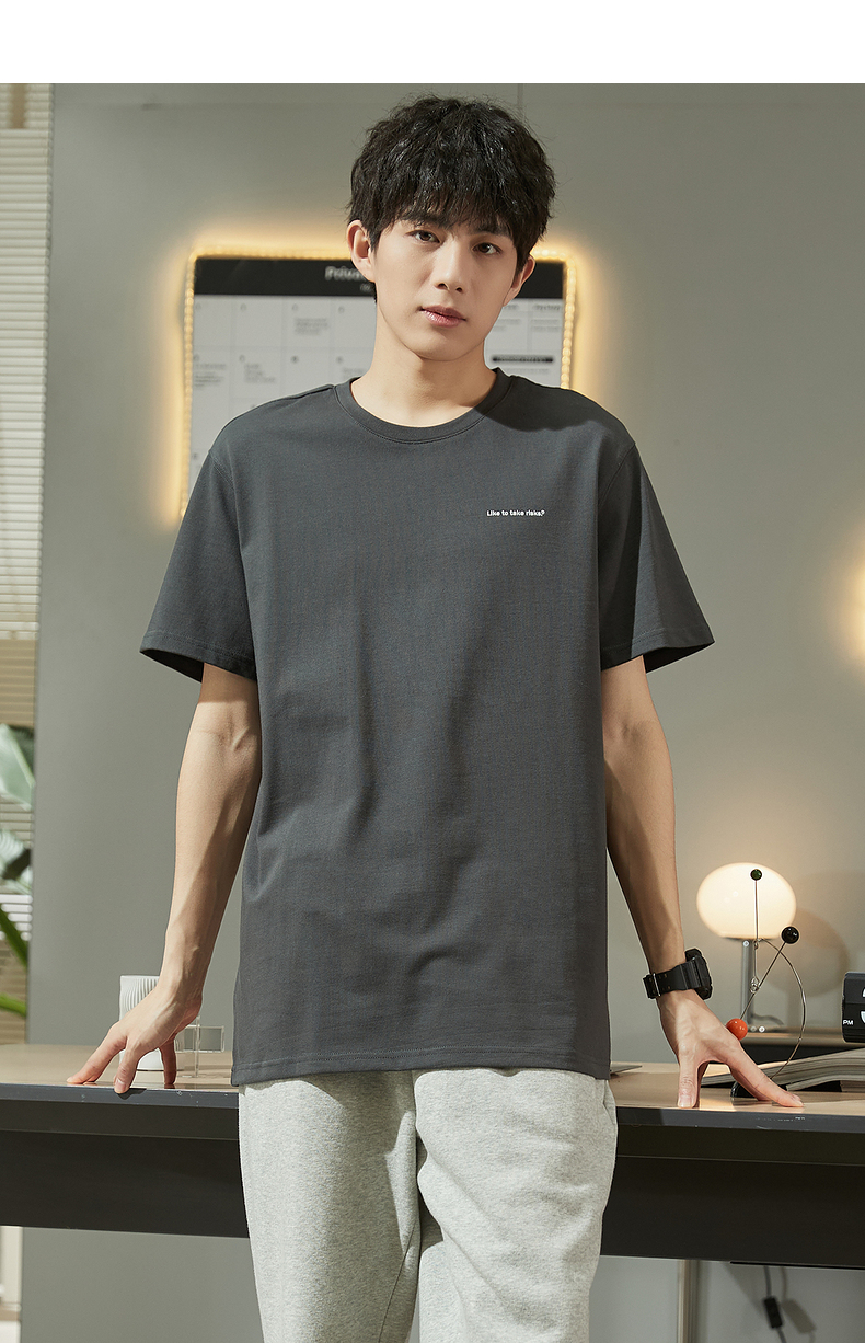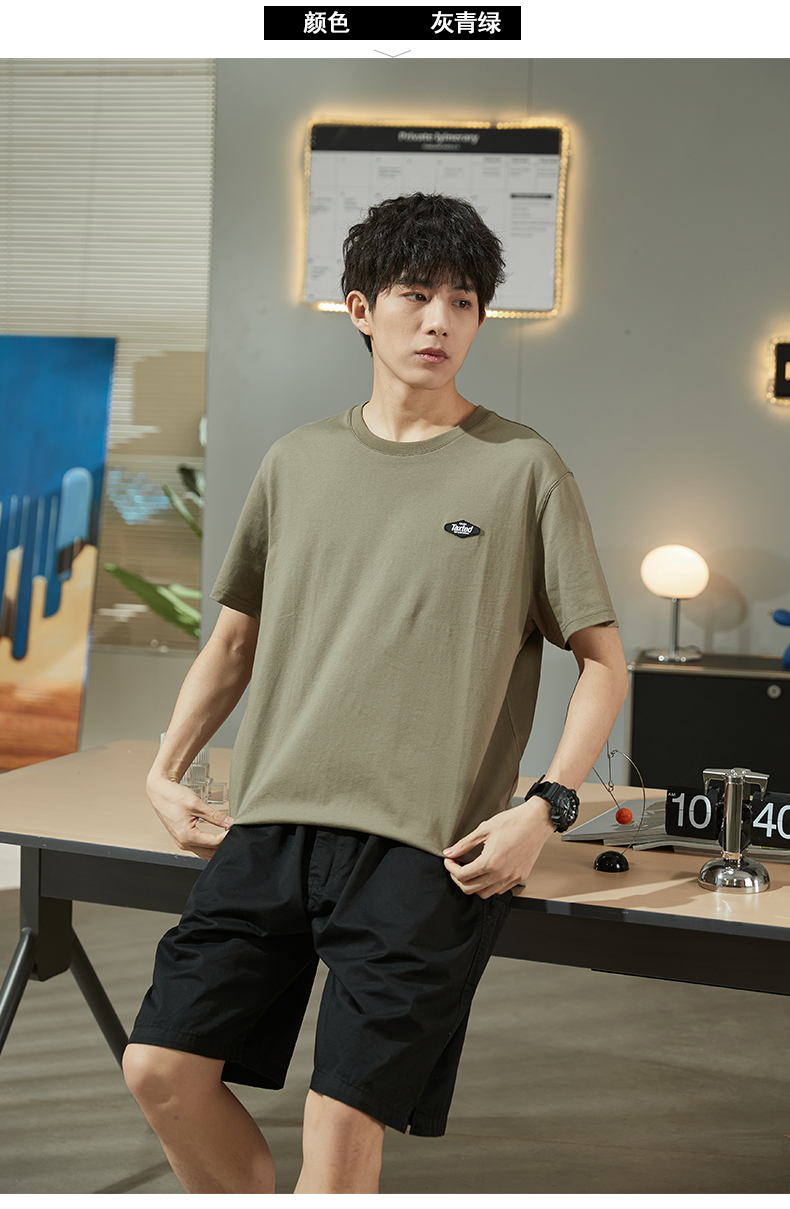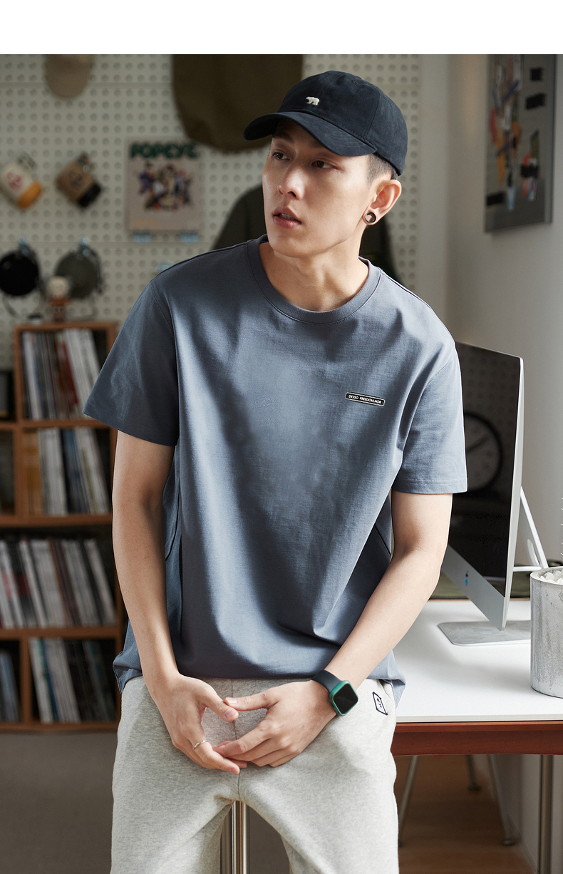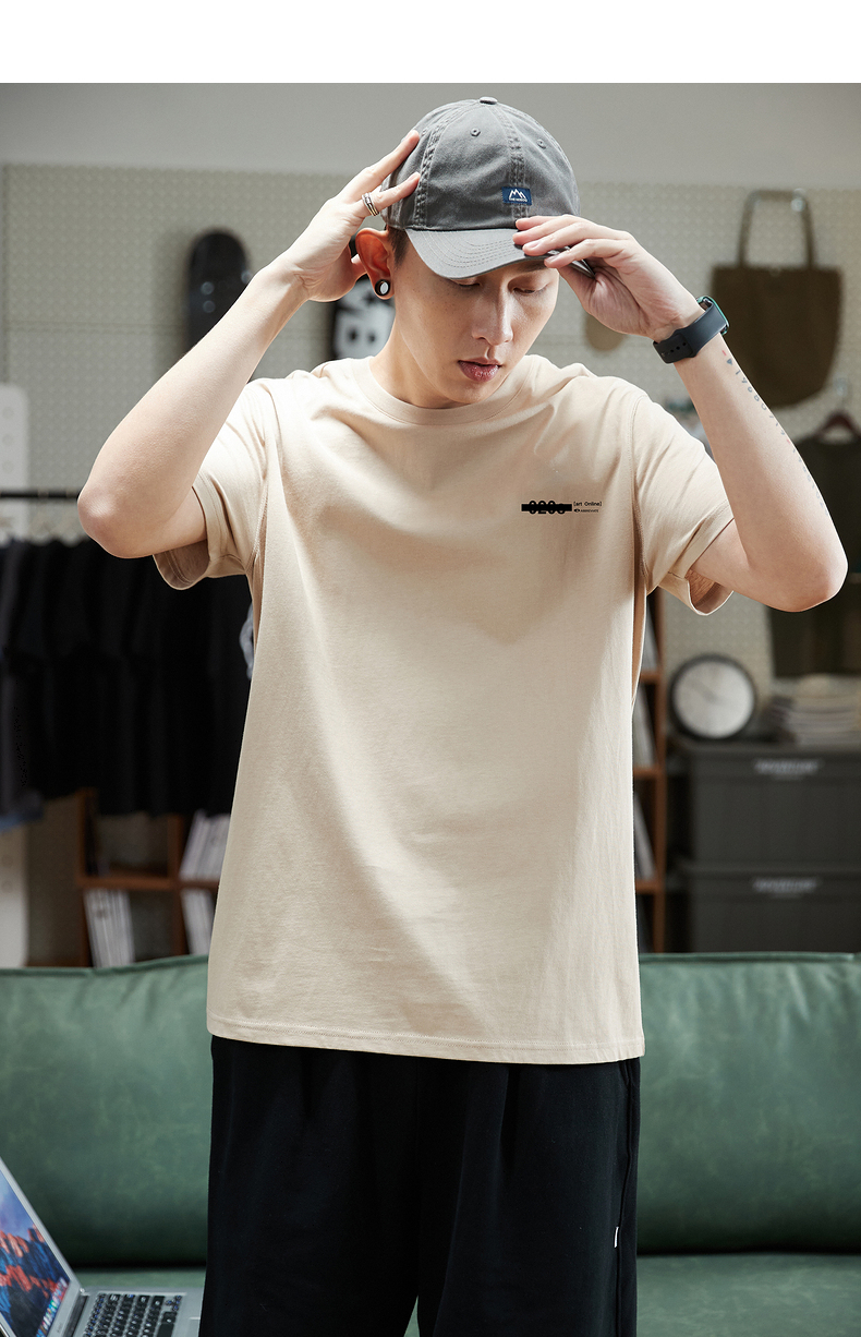 唐獅2023春夏新款短袖T恤男圓領半袖純色寬鬆潮流衣服純棉內搭衣