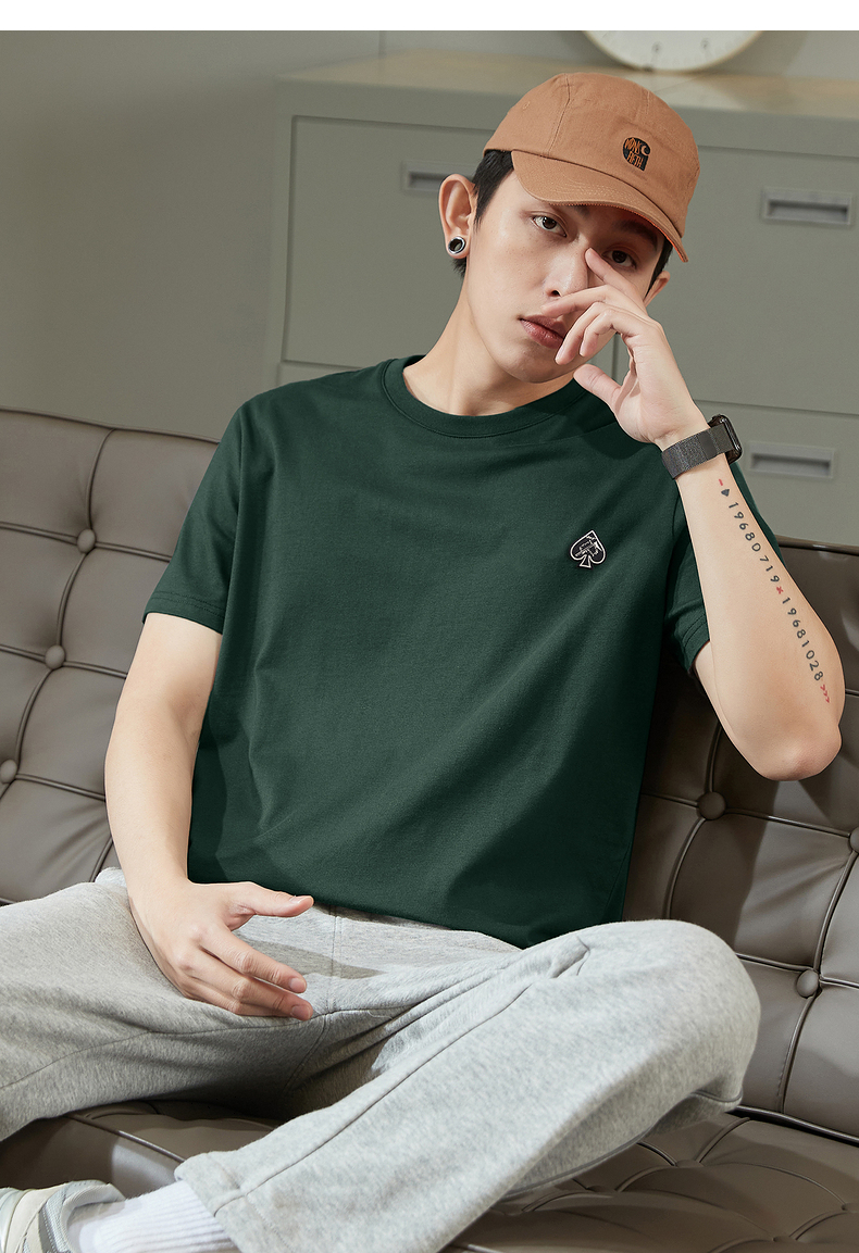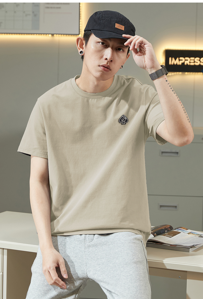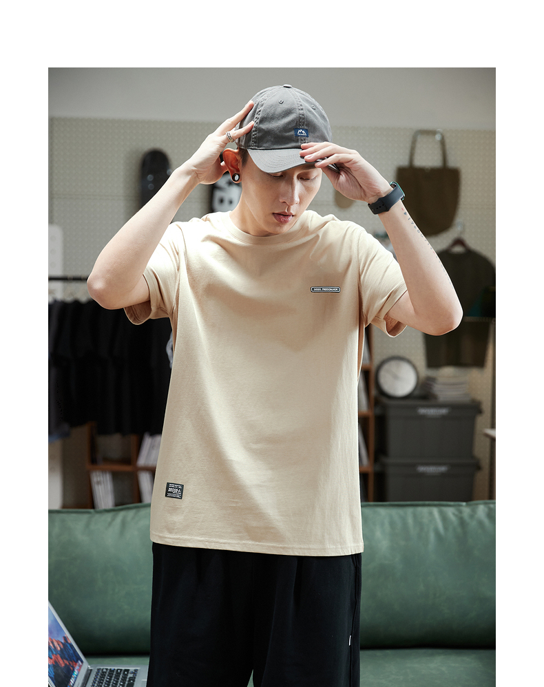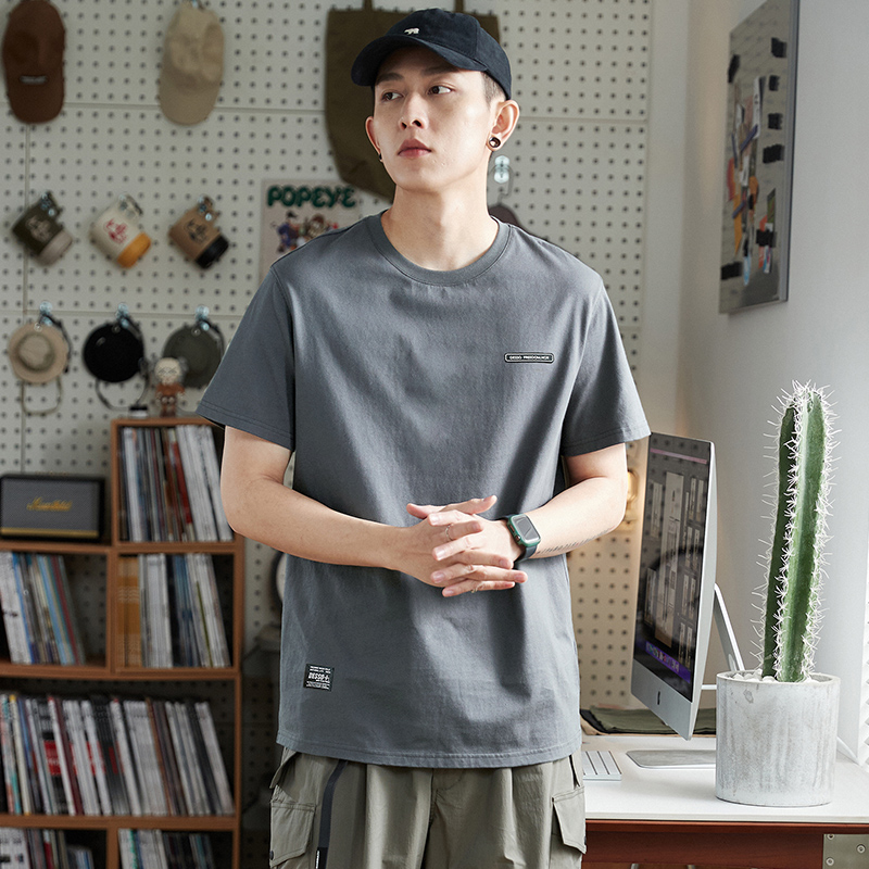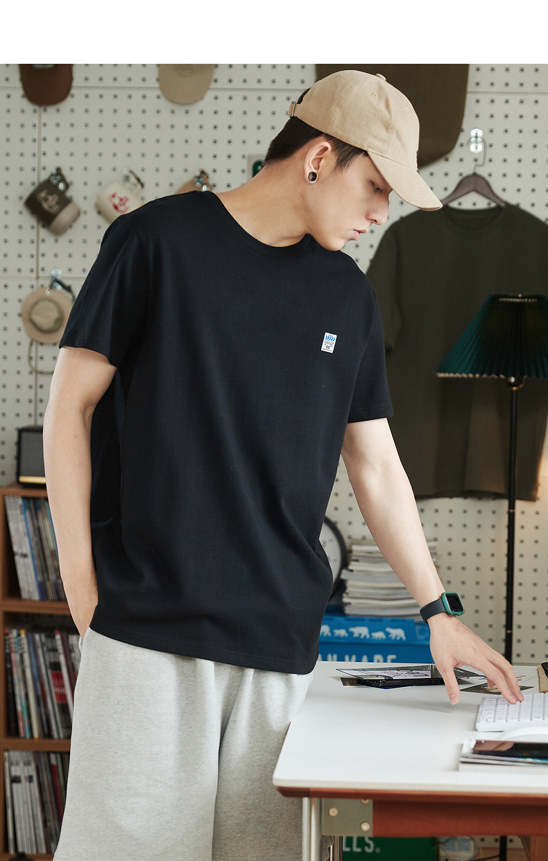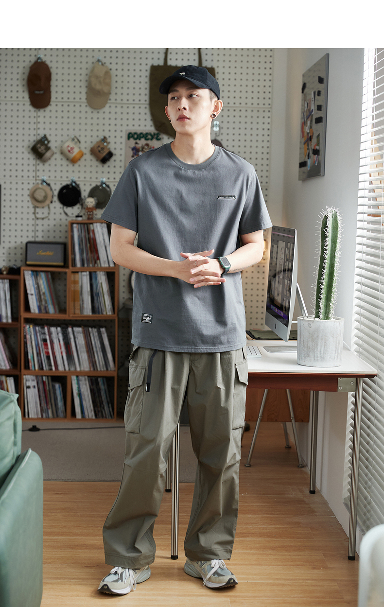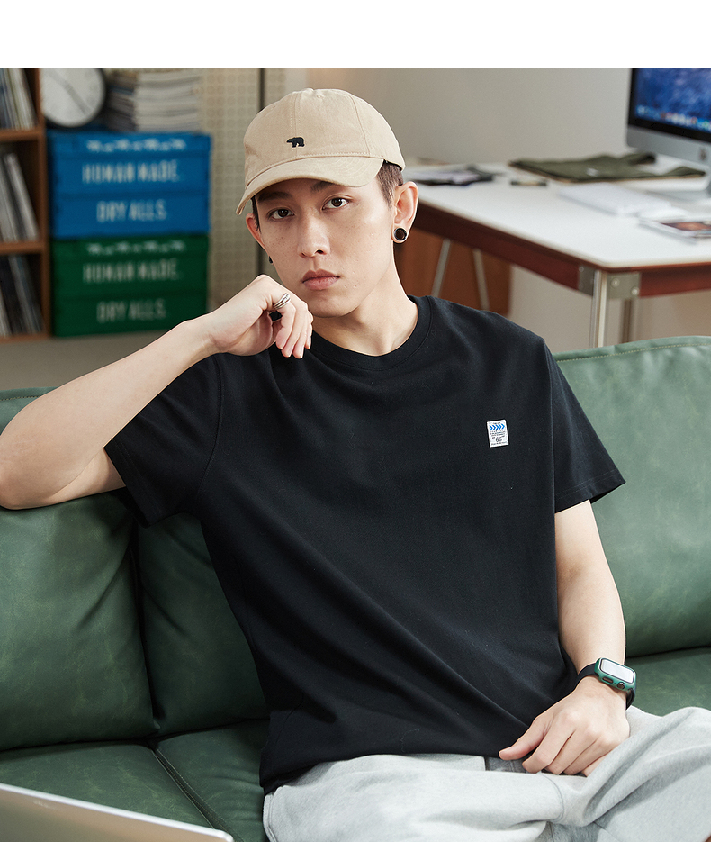 唐獅2023春夏新款短袖T恤男圓領半袖純色寬鬆潮流衣服純棉內搭衣