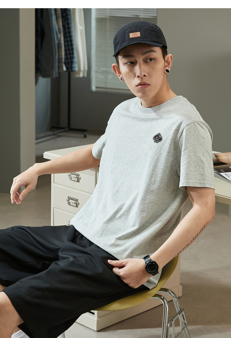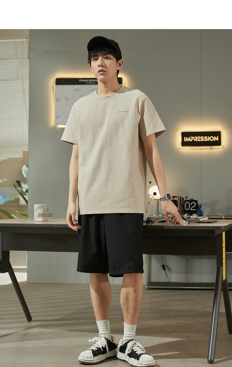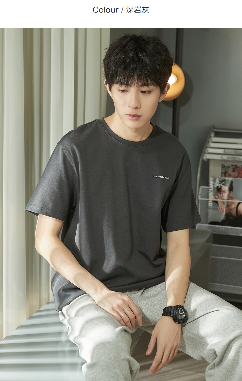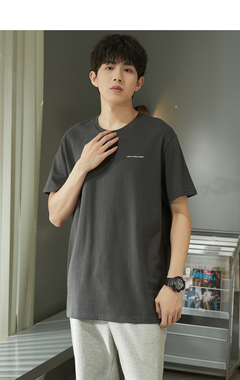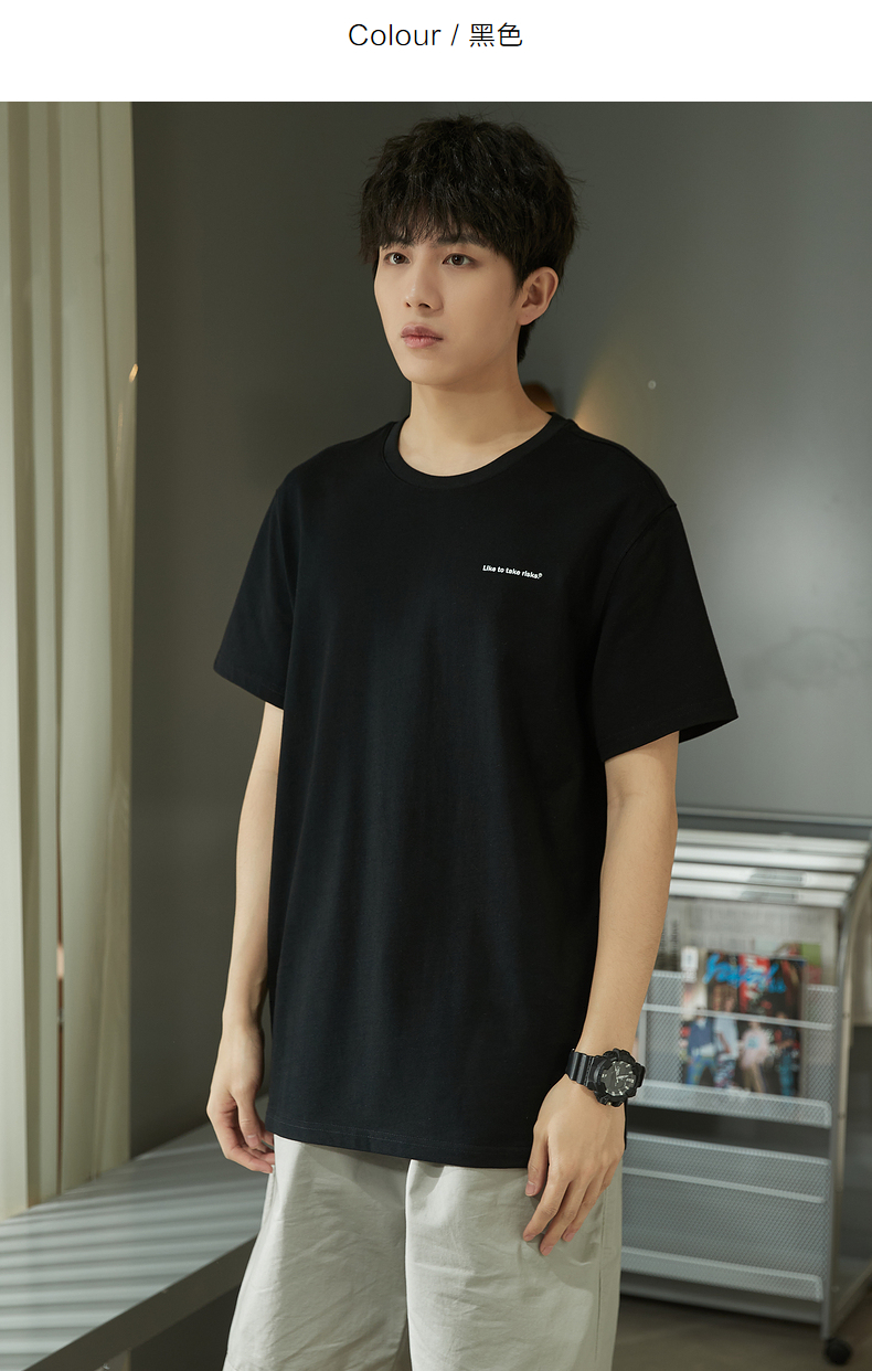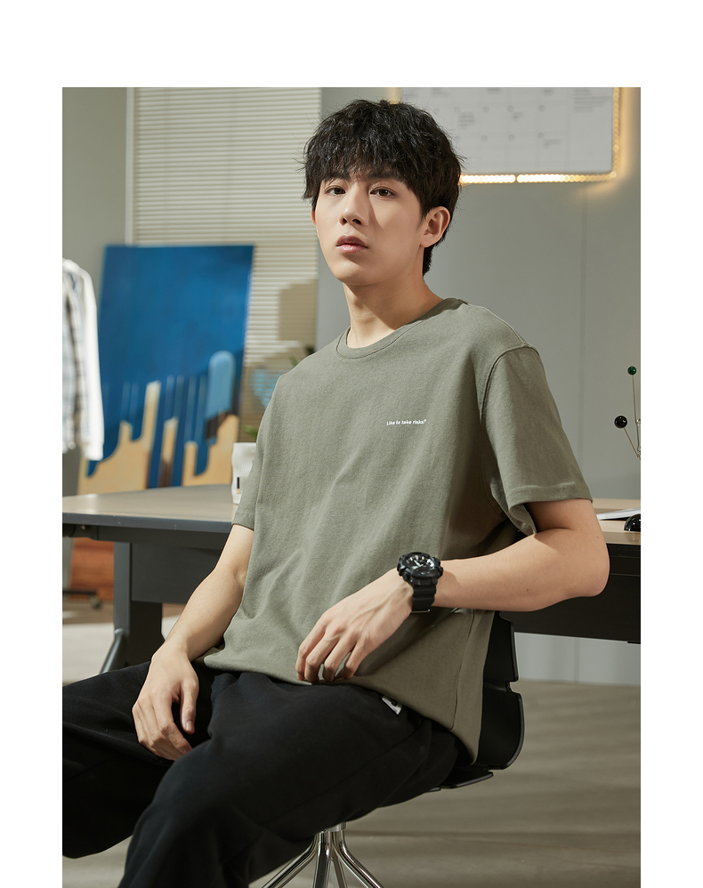唐獅2023春夏新款短袖T恤男圓領半袖純色寬鬆潮流衣服純棉內搭衣