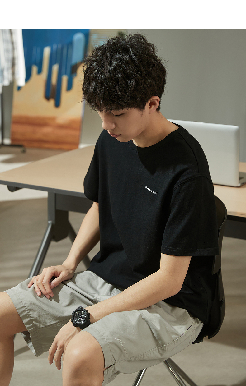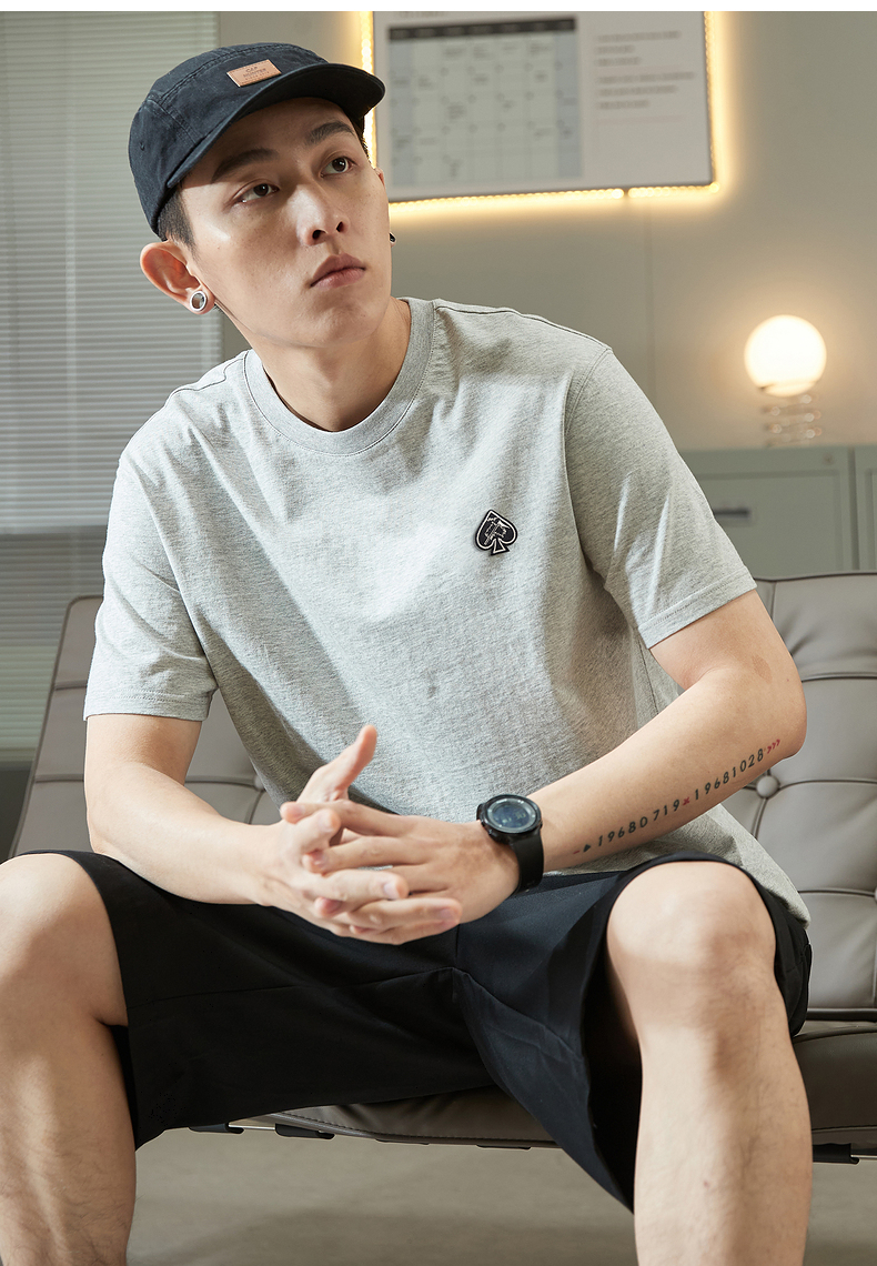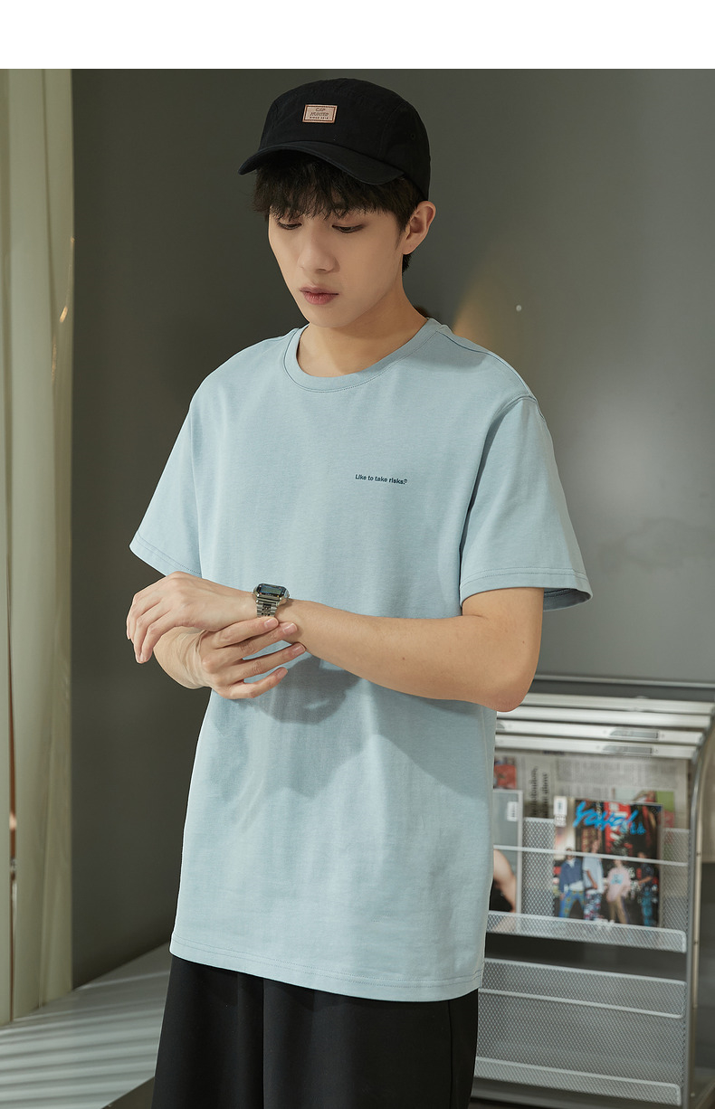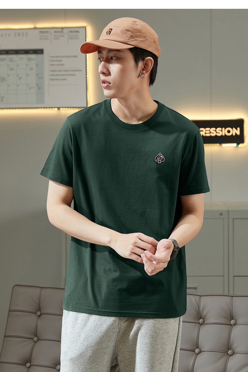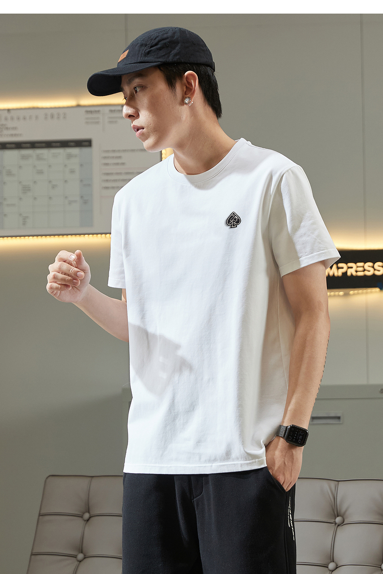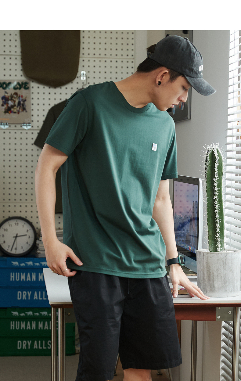 唐獅2023春夏新款短袖T恤男圓領半袖純色寬鬆潮流衣服純棉內搭衣
