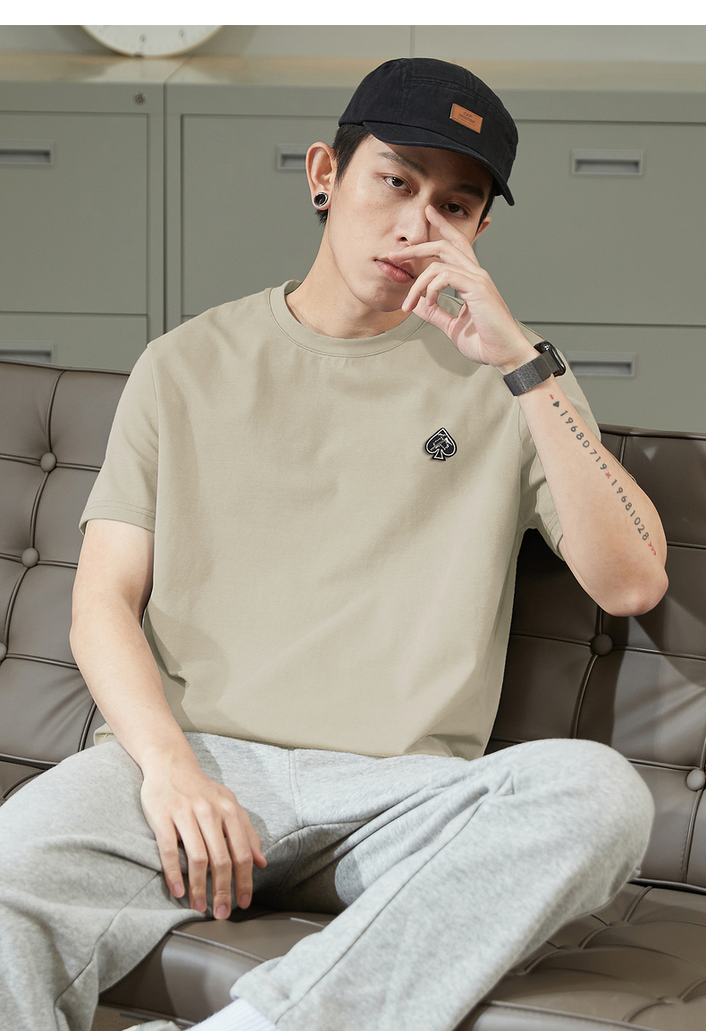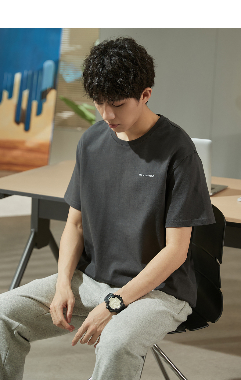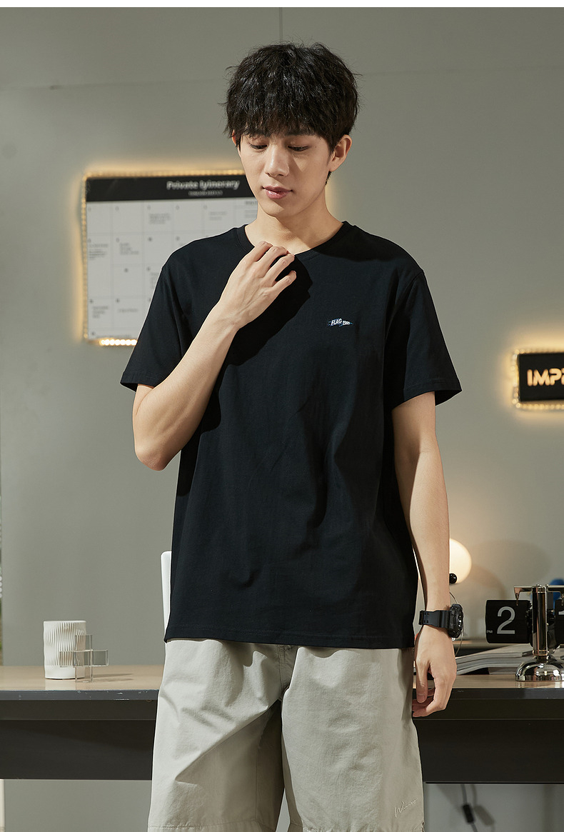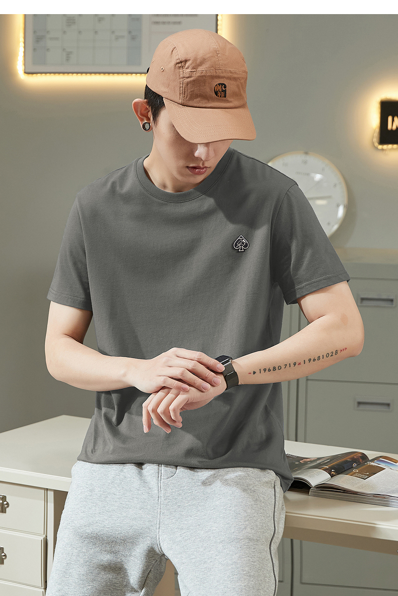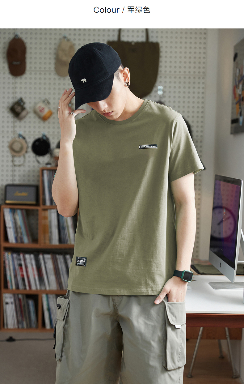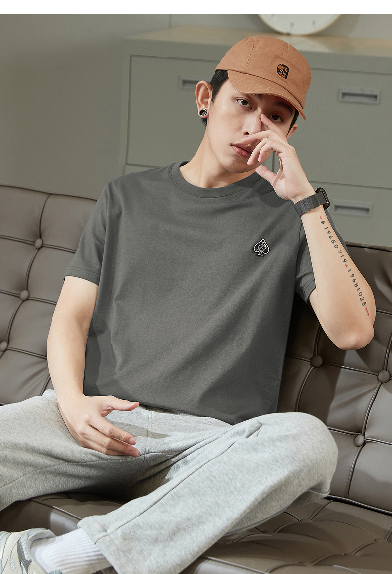 唐獅2023春夏新款短袖T恤男圓領半袖純色寬鬆潮流衣服純棉內搭衣