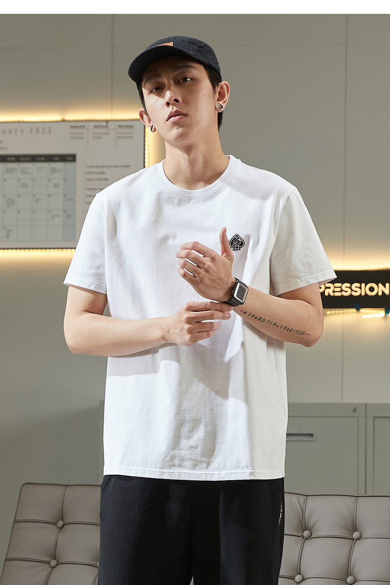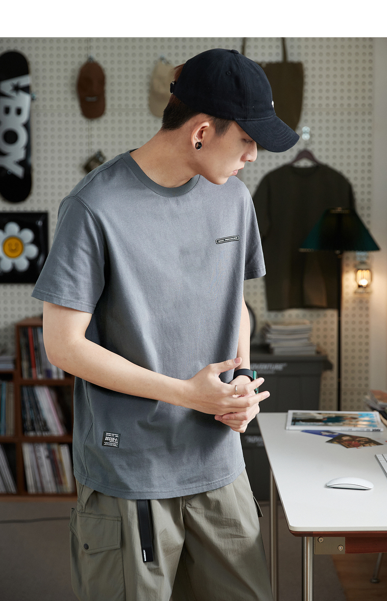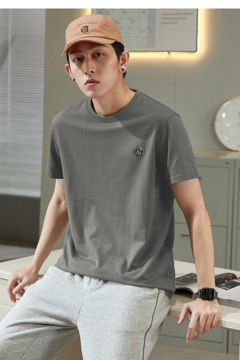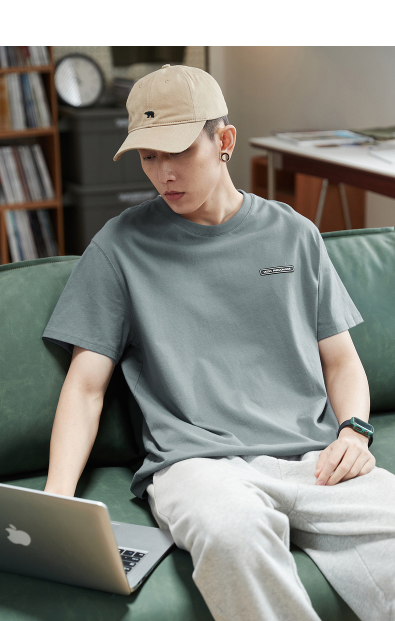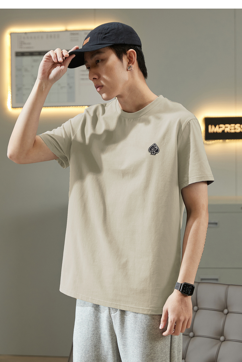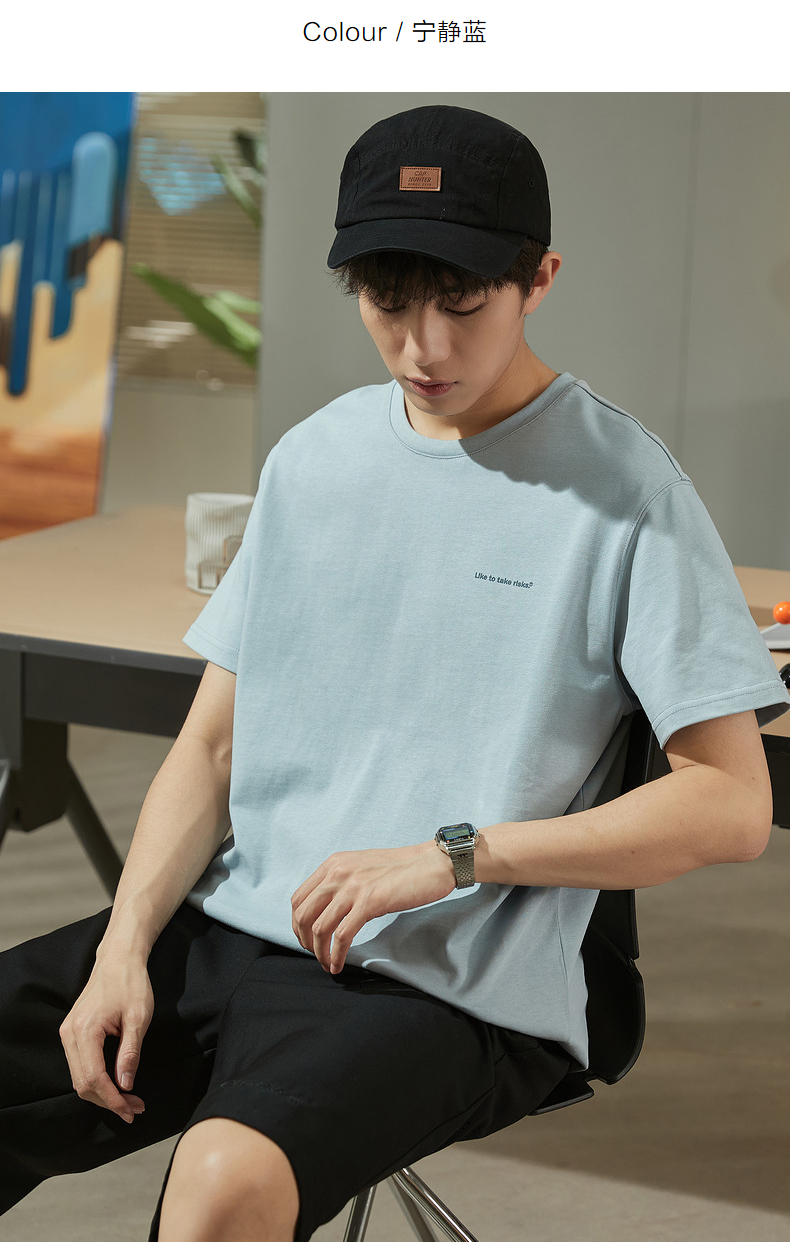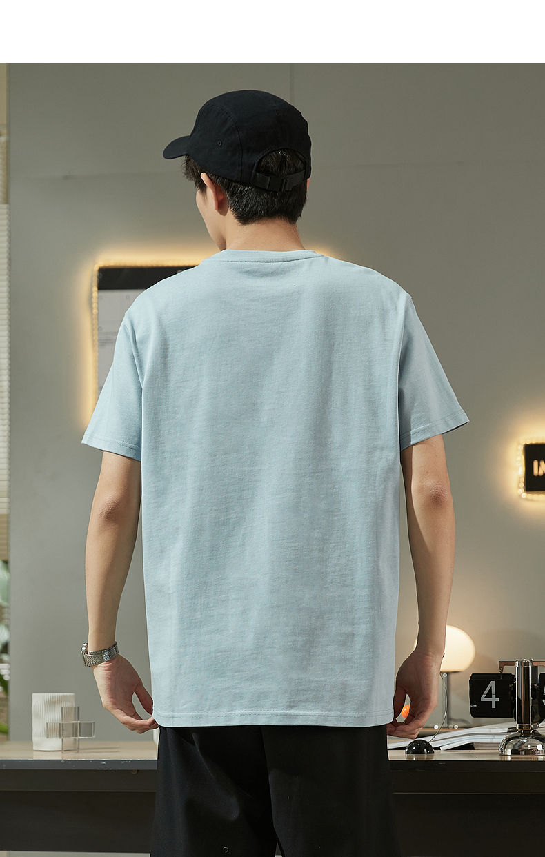 唐獅2023春夏新款短袖T恤男圓領半袖純色寬鬆潮流衣服純棉內搭衣
