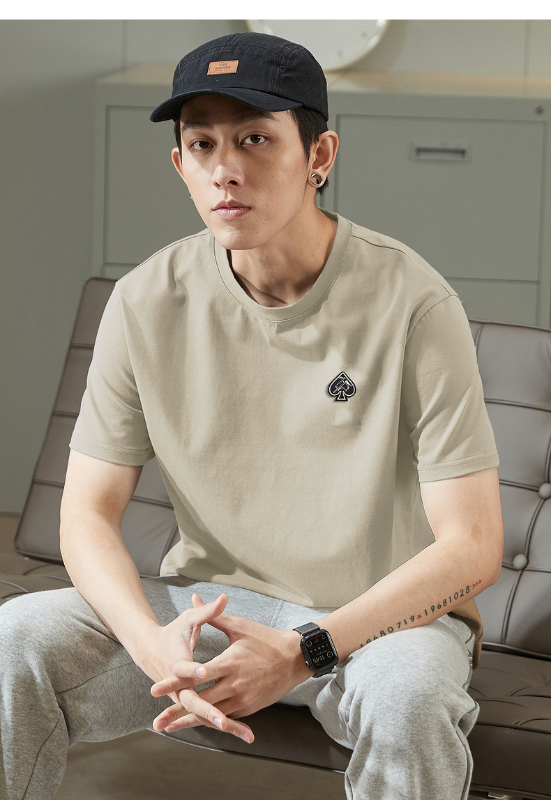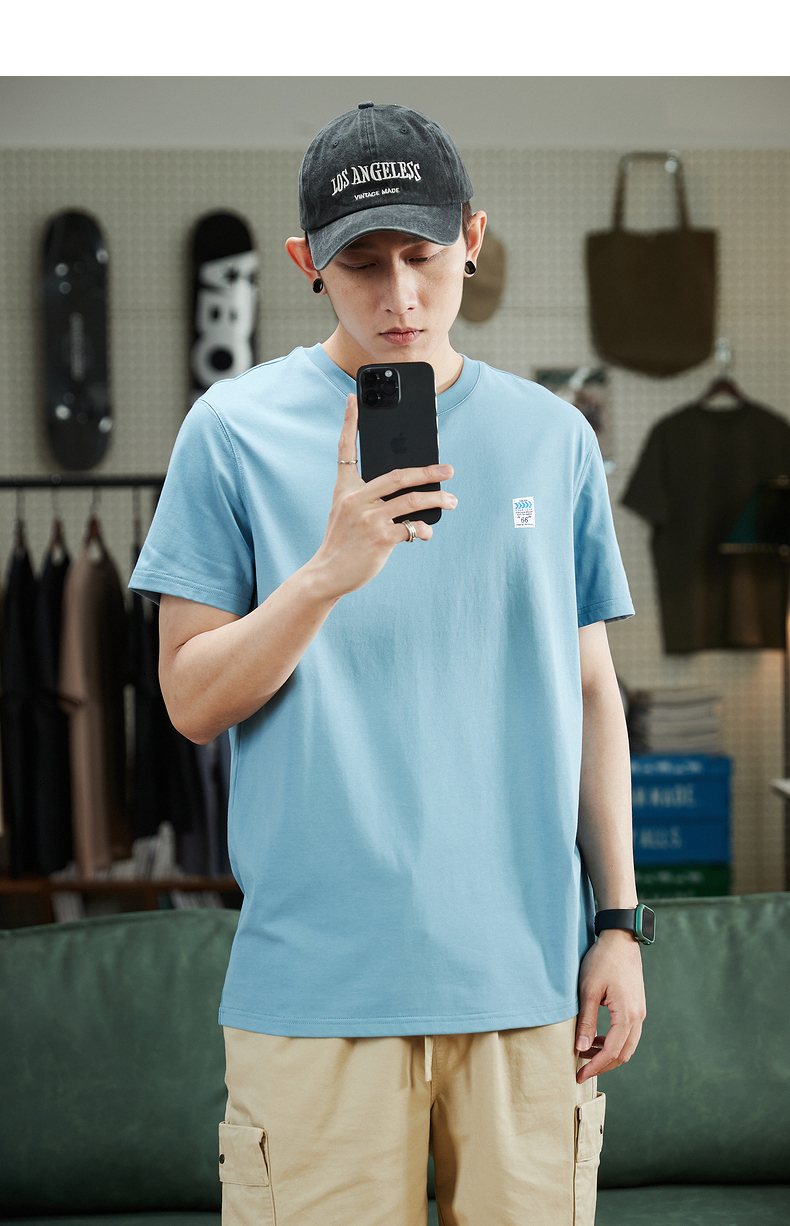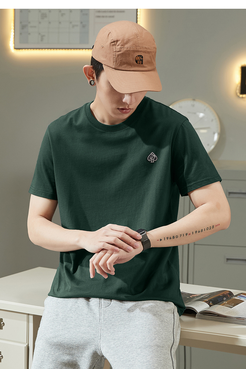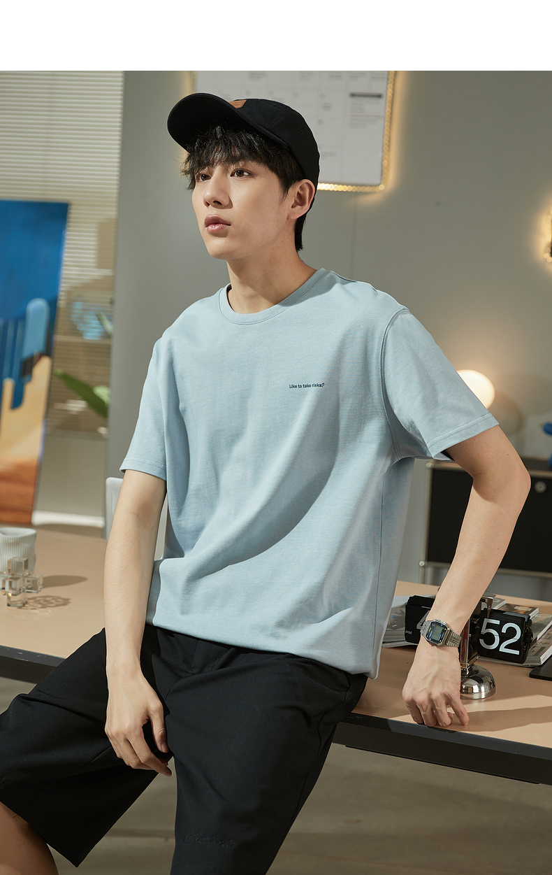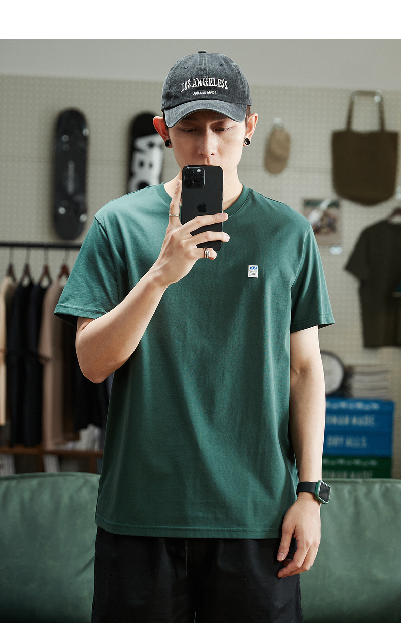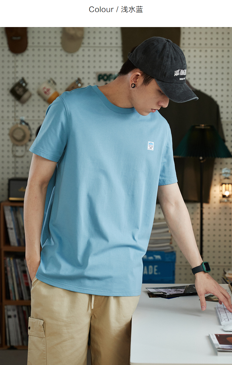 唐獅2023春夏新款短袖T恤男圓領半袖純色寬鬆潮流衣服純棉內搭衣