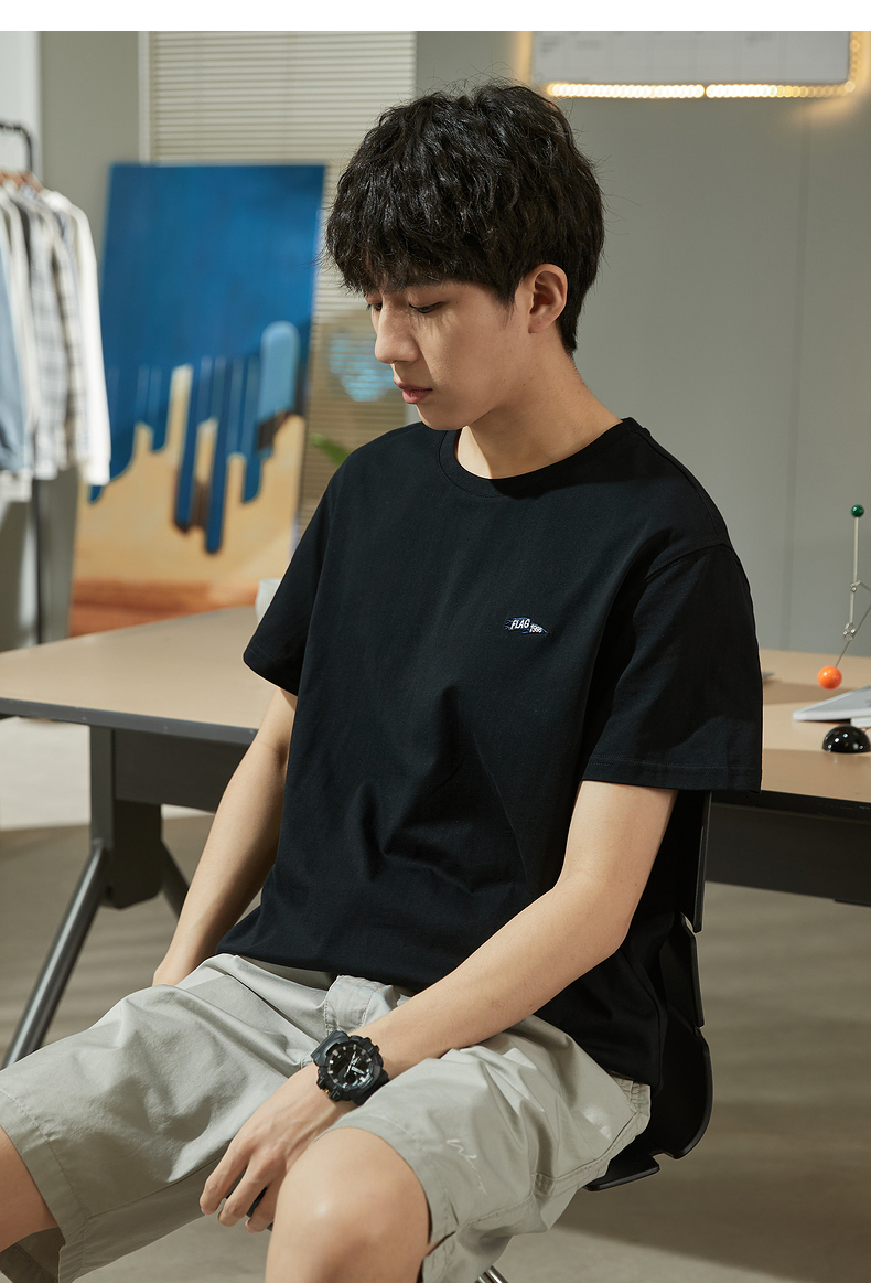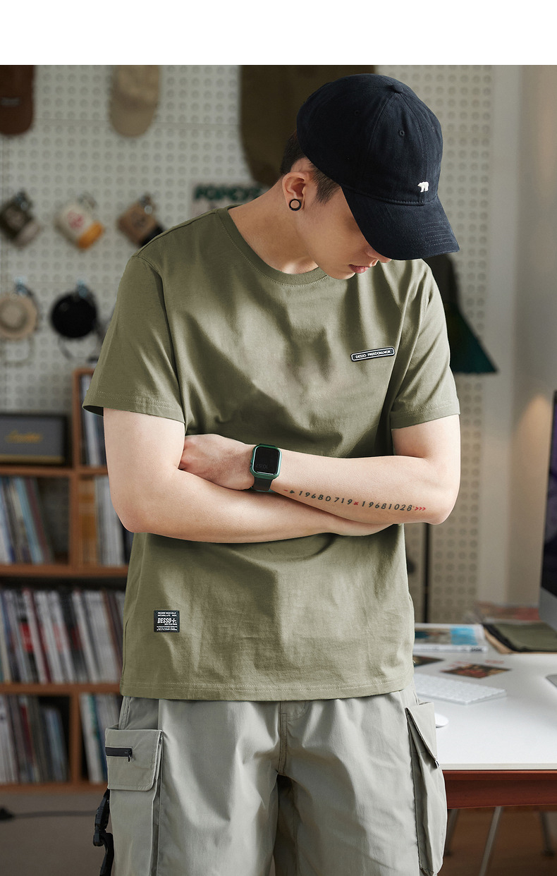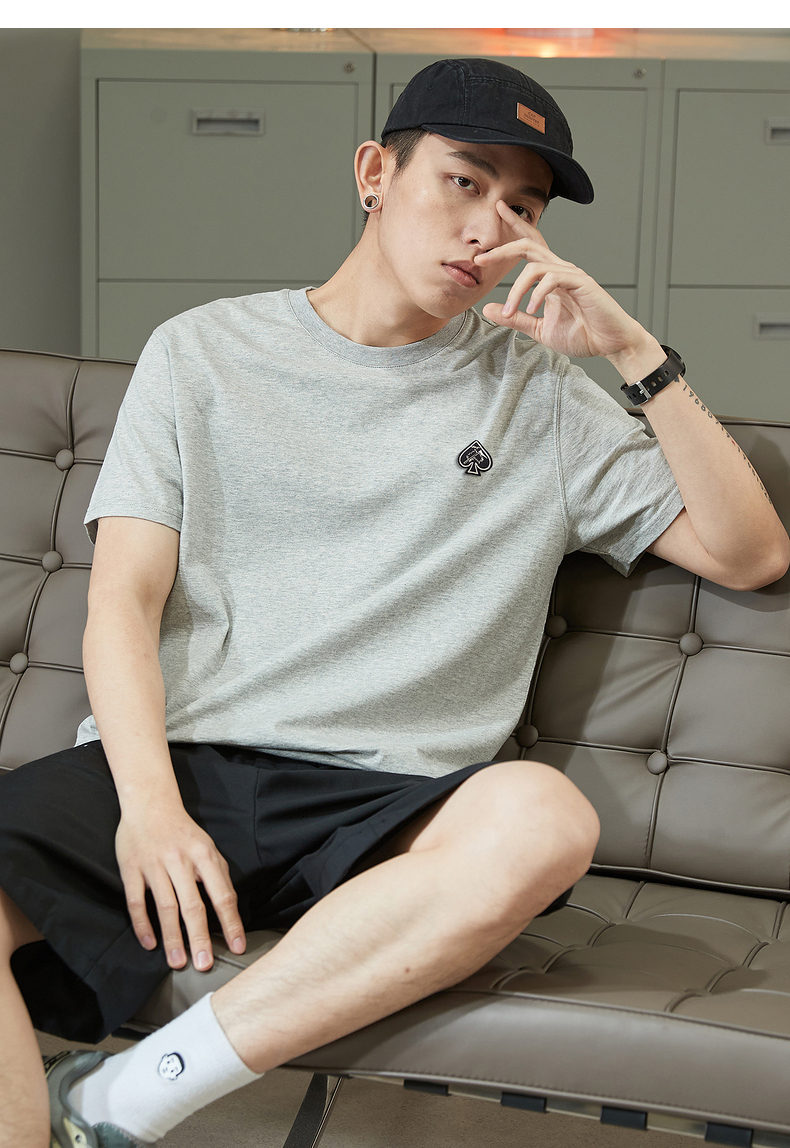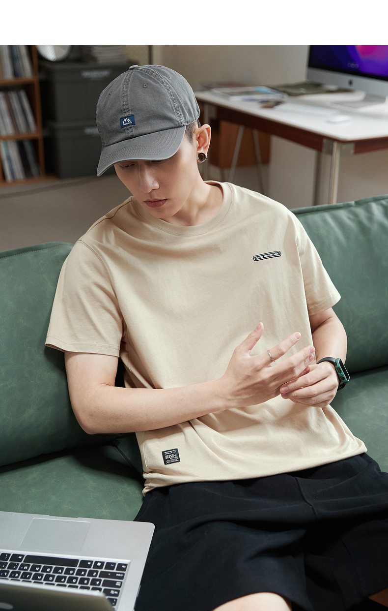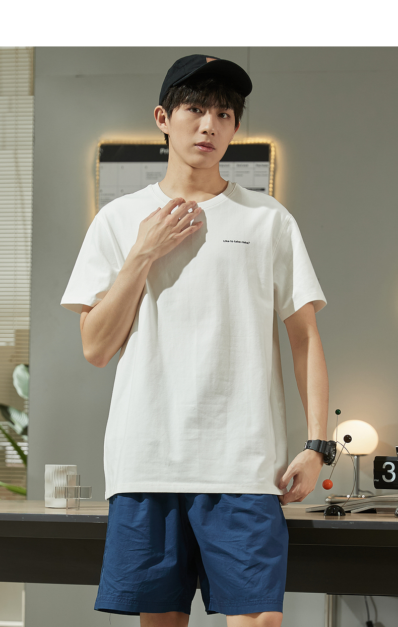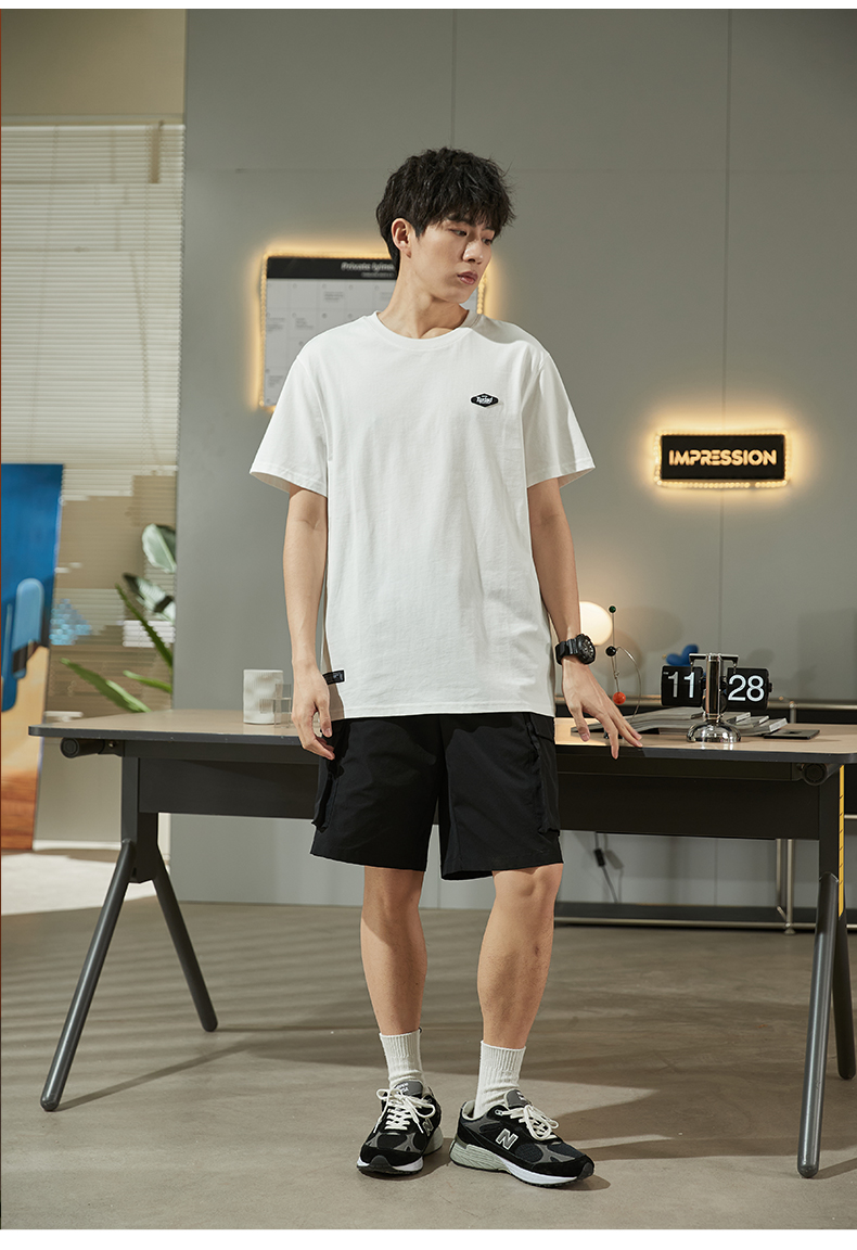 唐獅2023春夏新款短袖T恤男圓領半袖純色寬鬆潮流衣服純棉內搭衣