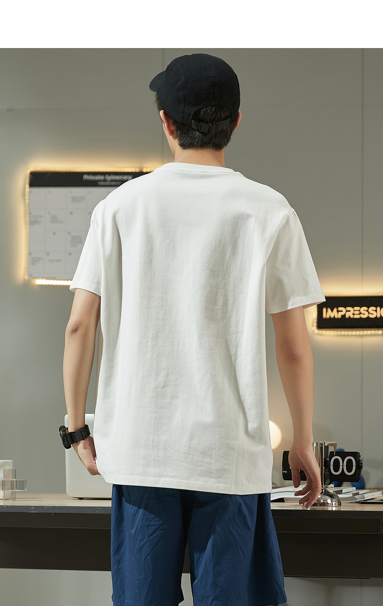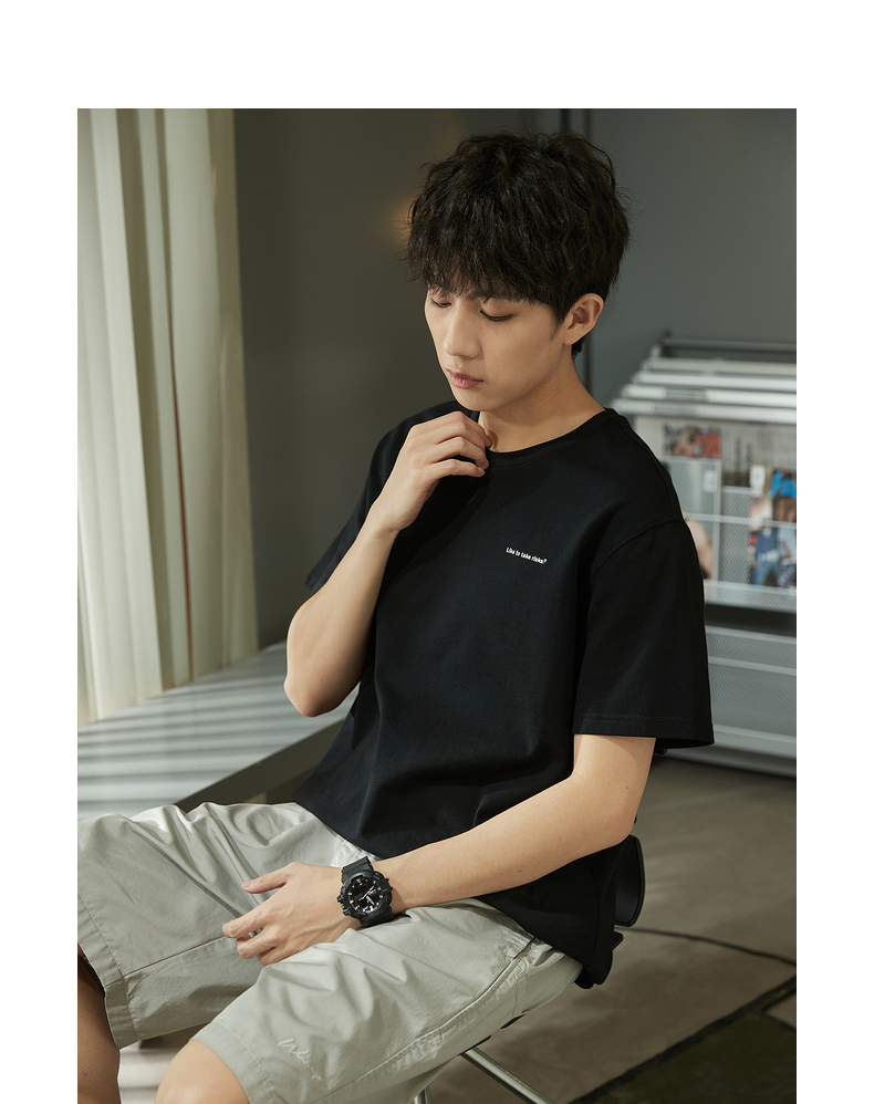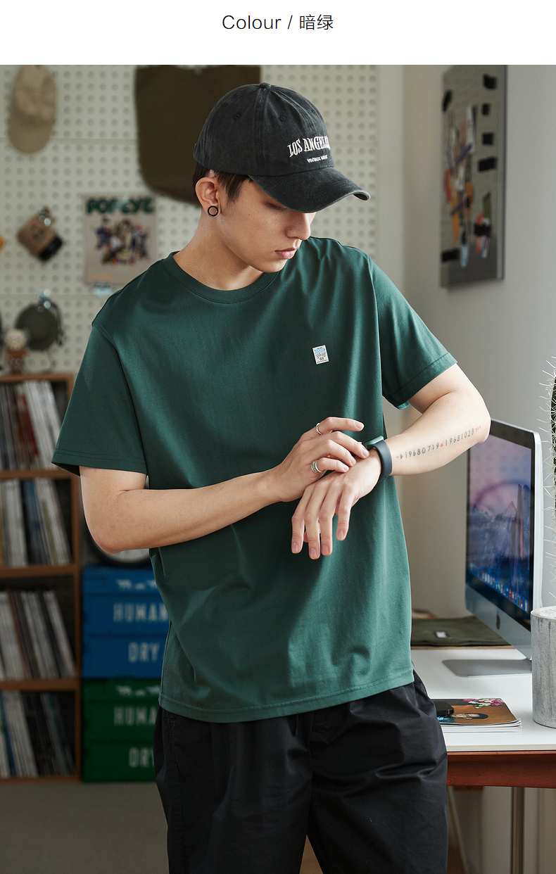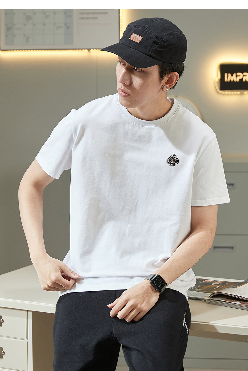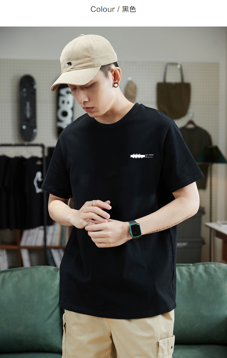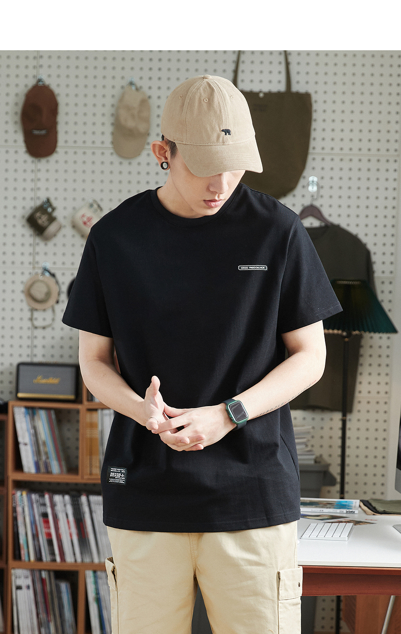 唐獅2023春夏新款短袖T恤男圓領半袖純色寬鬆潮流衣服純棉內搭衣
