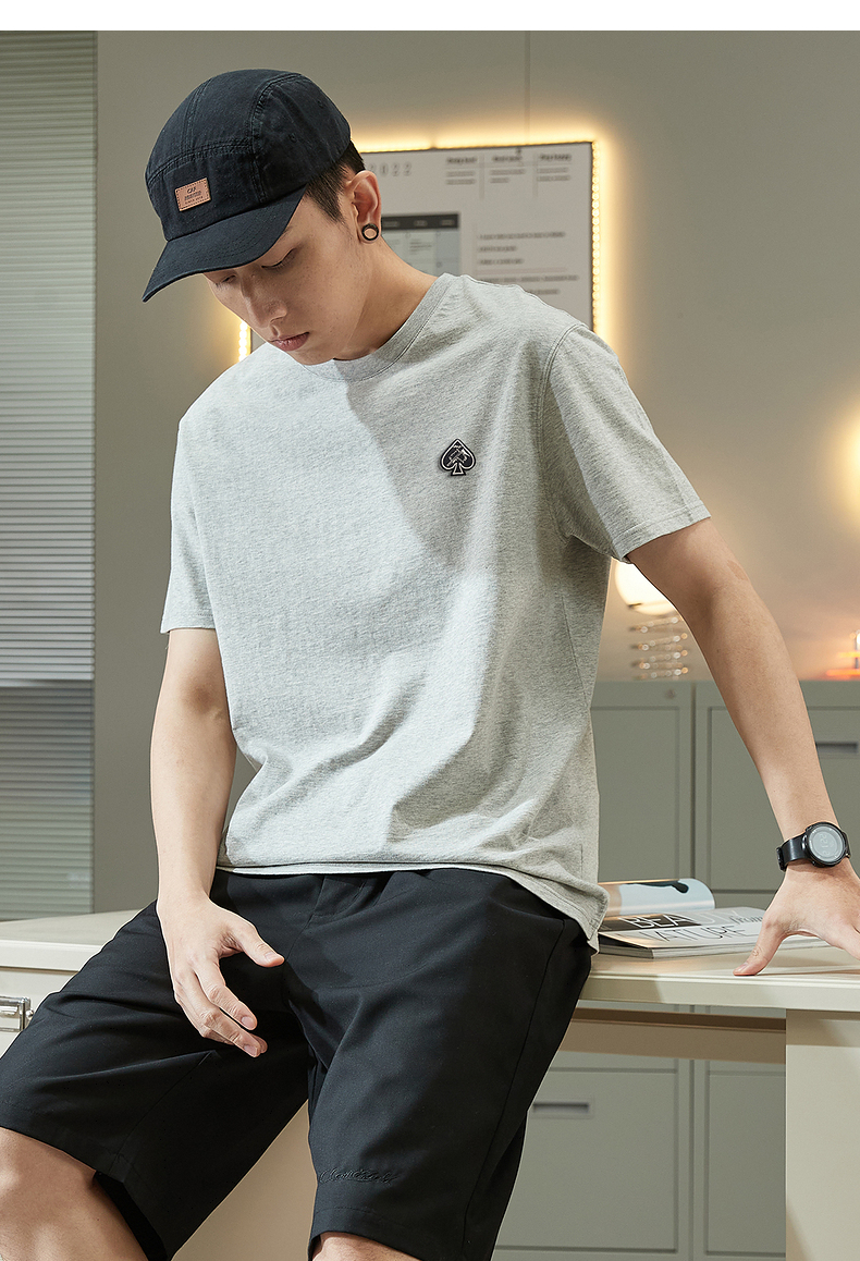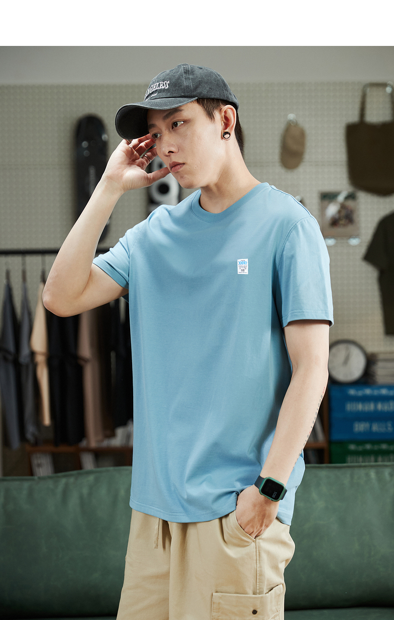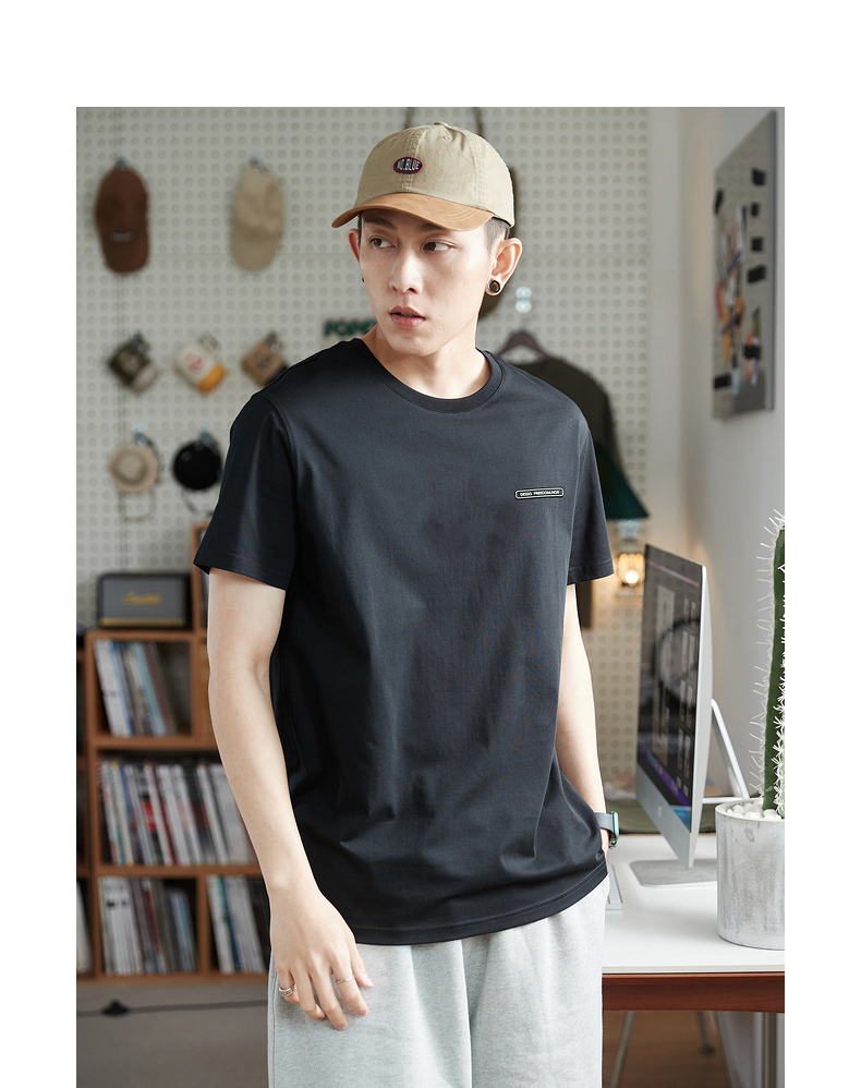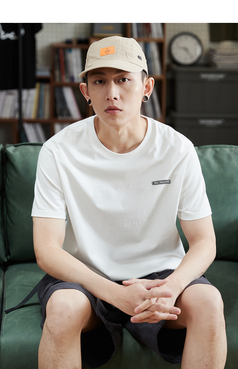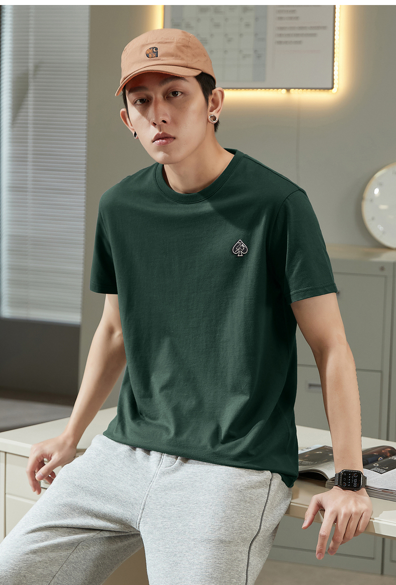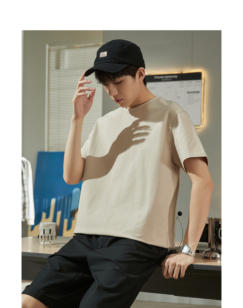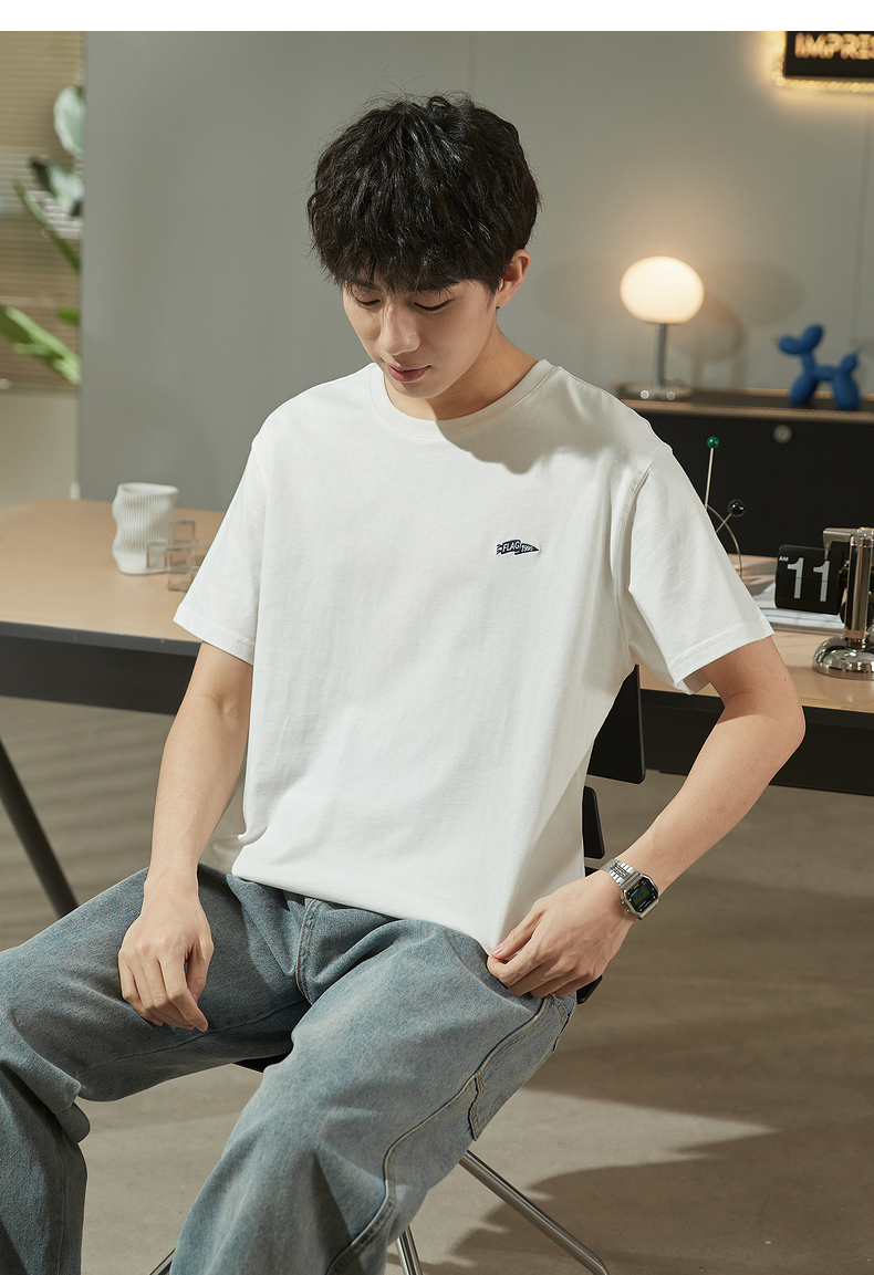 唐獅2023春夏新款短袖T恤男圓領半袖純色寬鬆潮流衣服純棉內搭衣