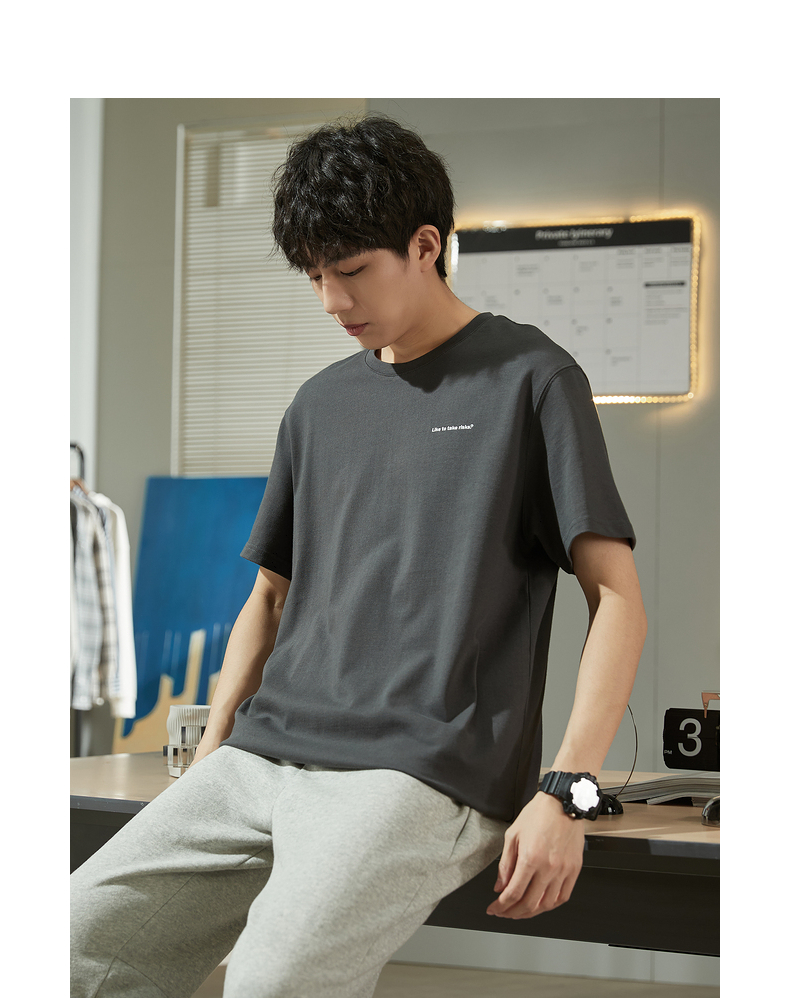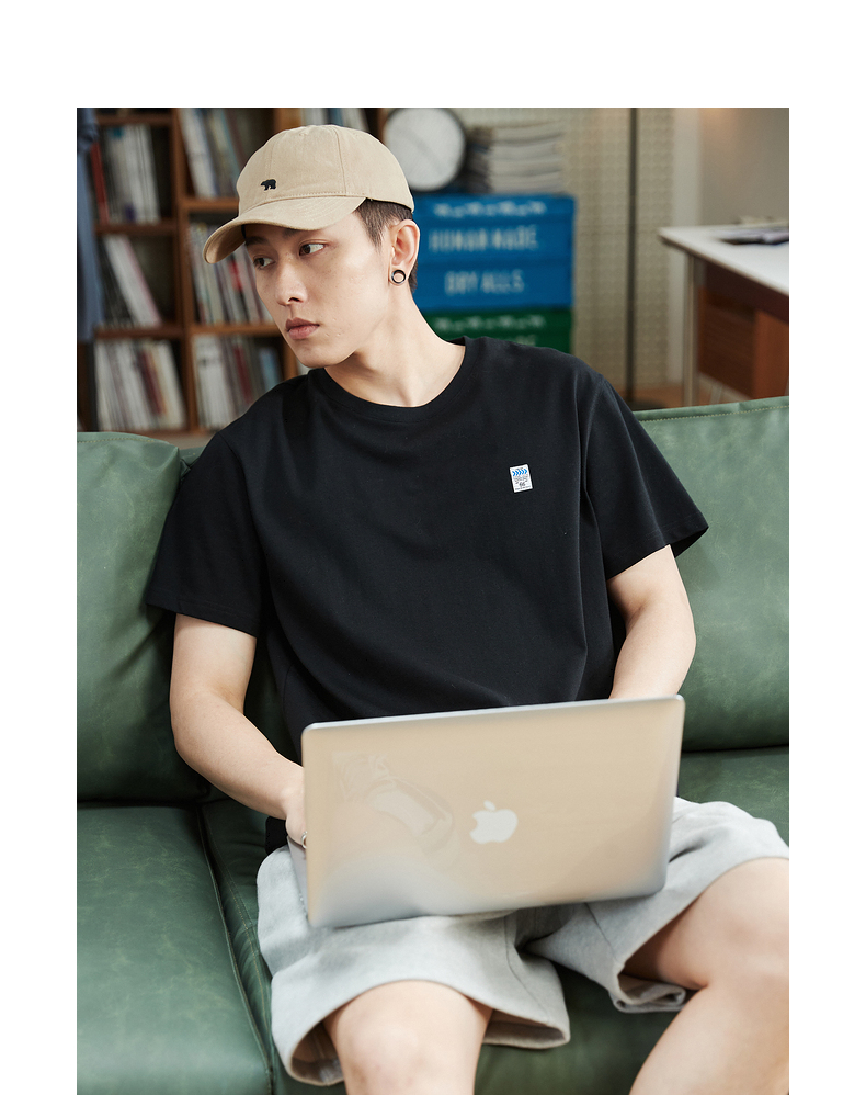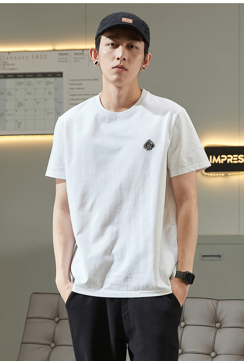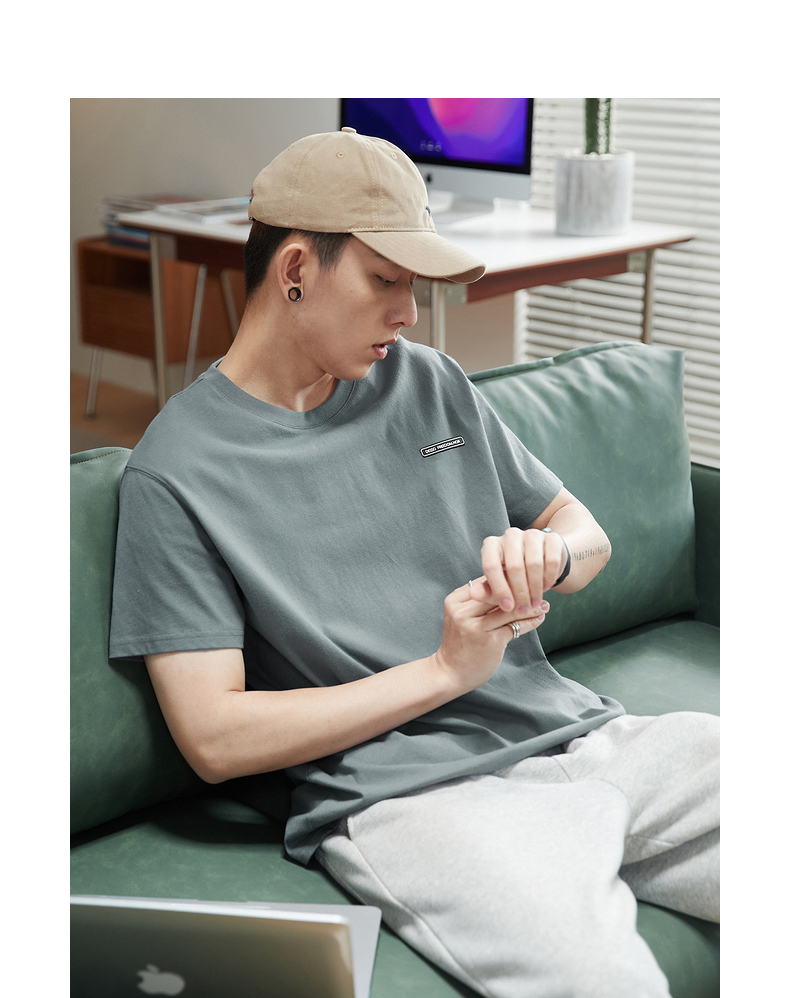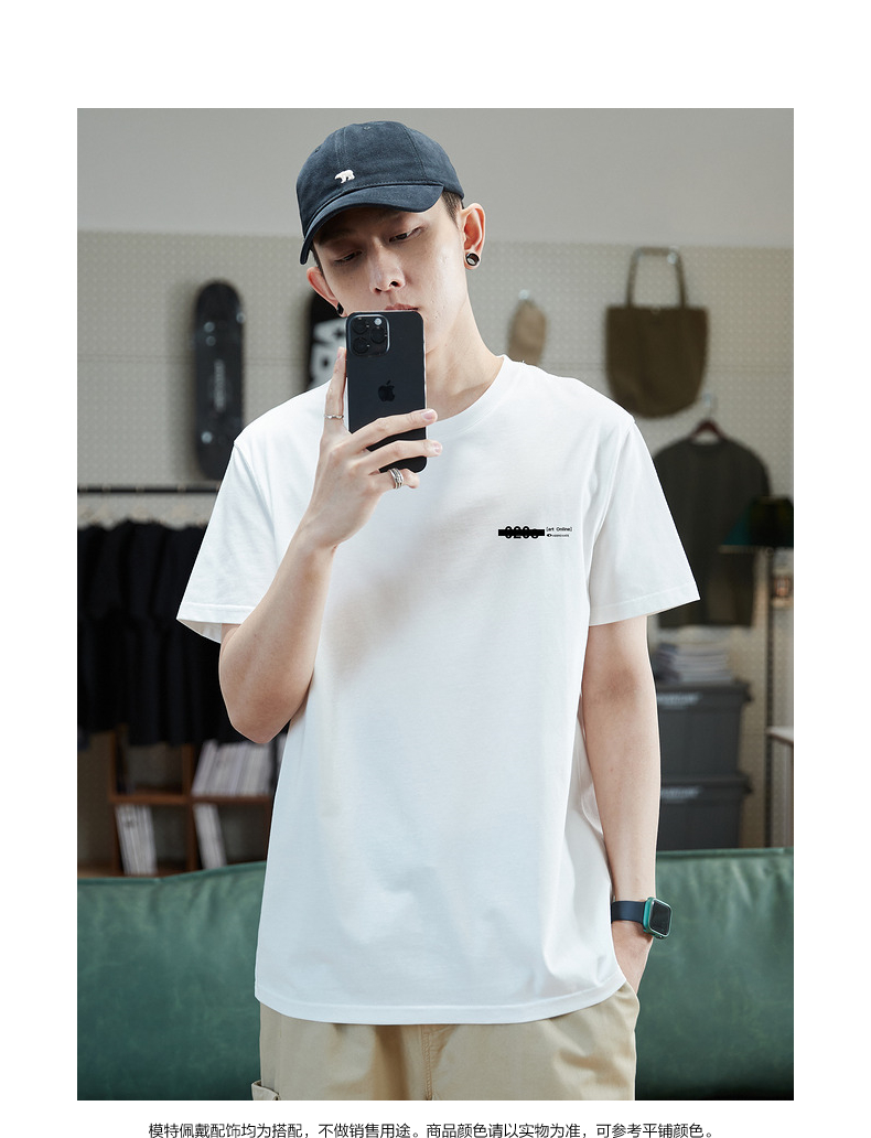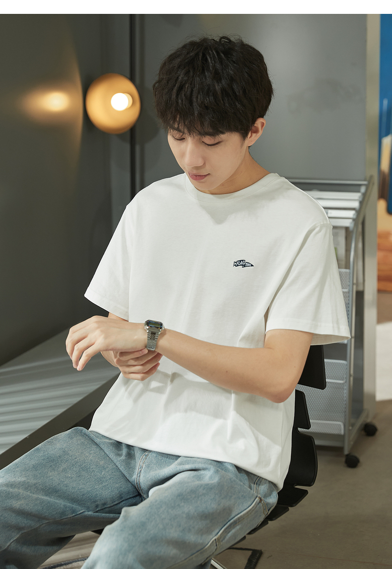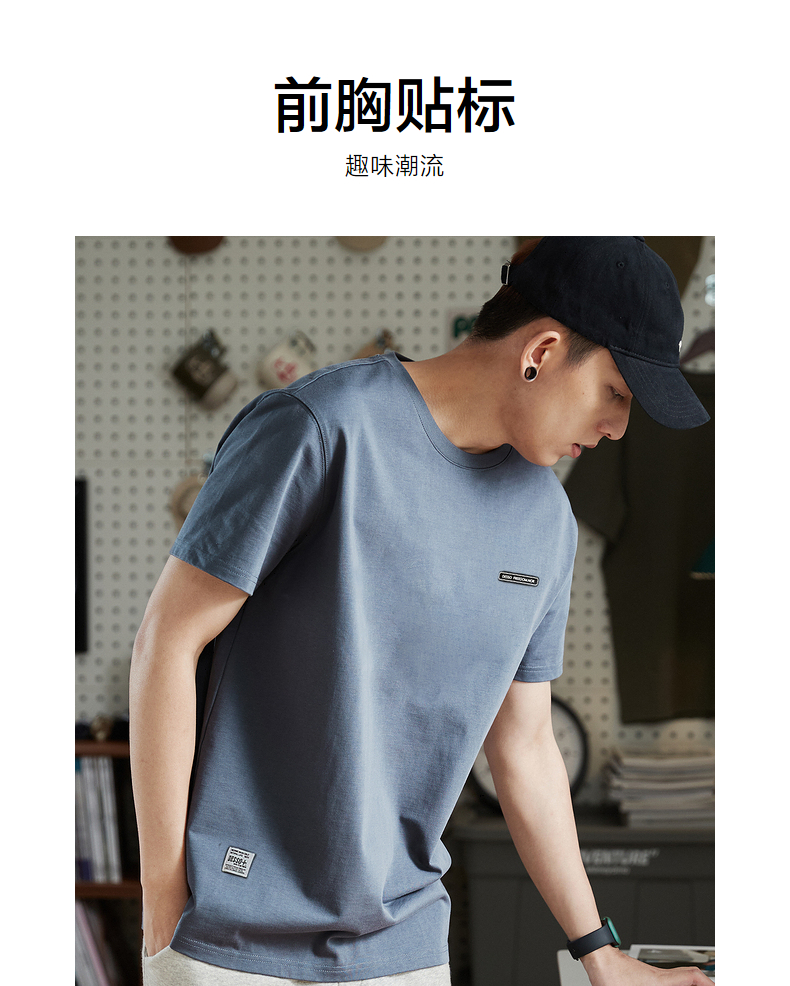 唐獅2023春夏新款短袖T恤男圓領半袖純色寬鬆潮流衣服純棉內搭衣