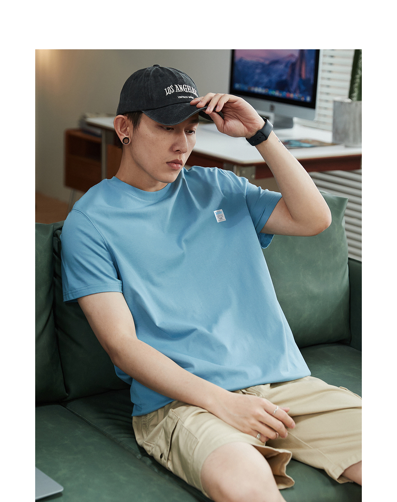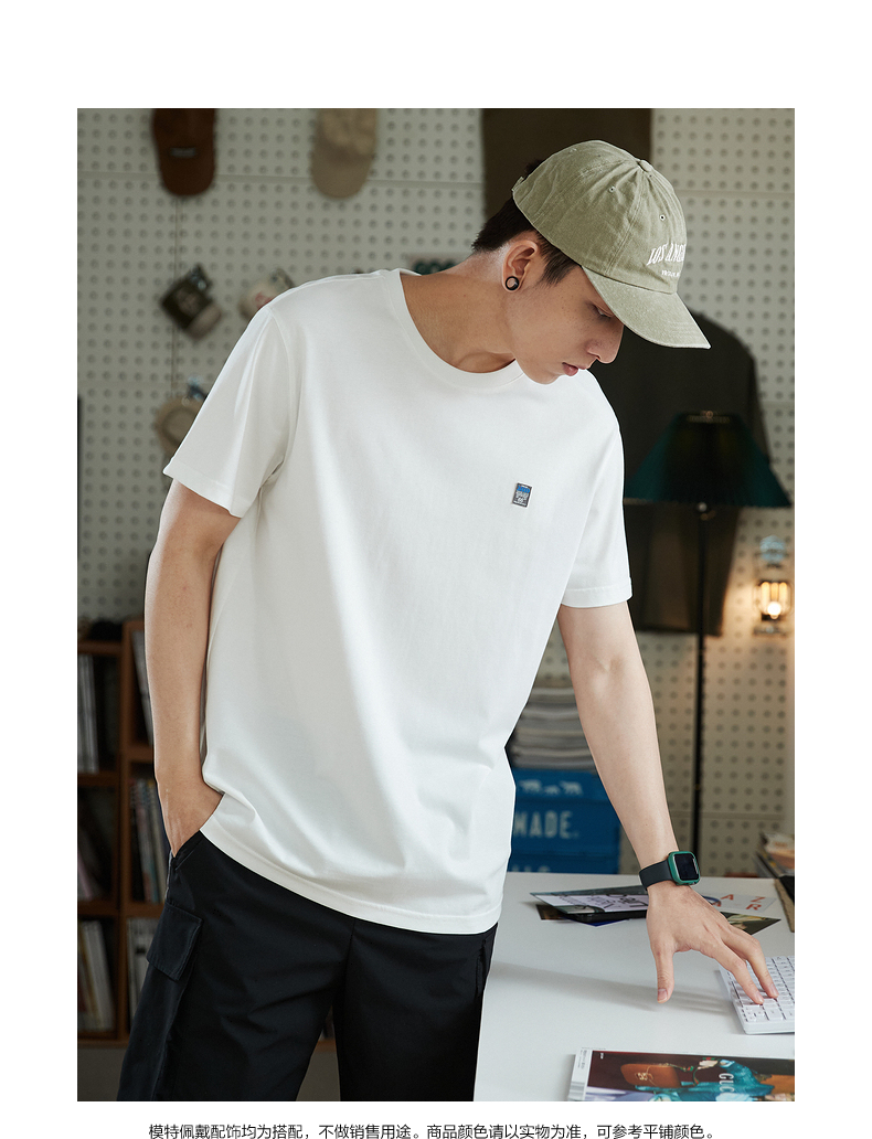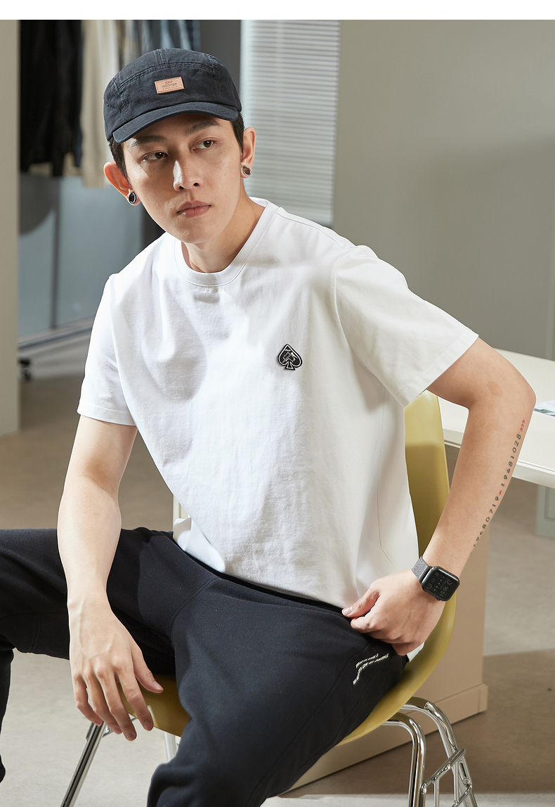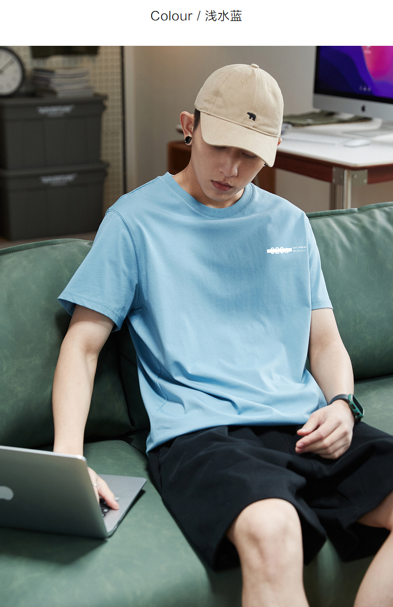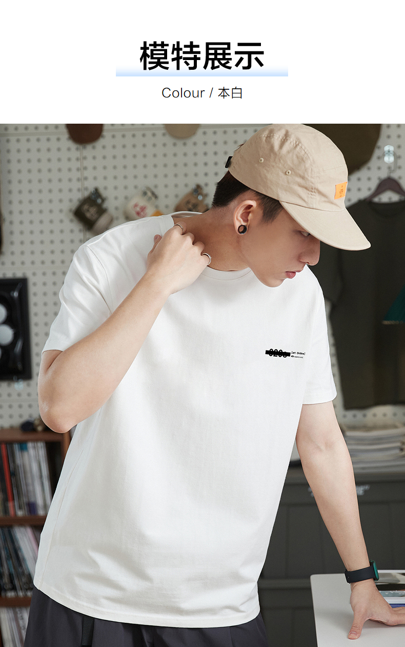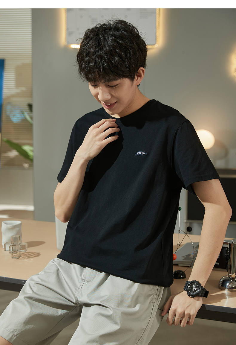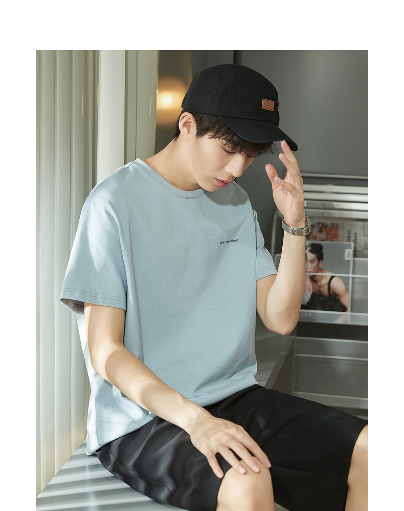 唐獅2023春夏新款短袖T恤男圓領半袖純色寬鬆潮流衣服純棉內搭衣