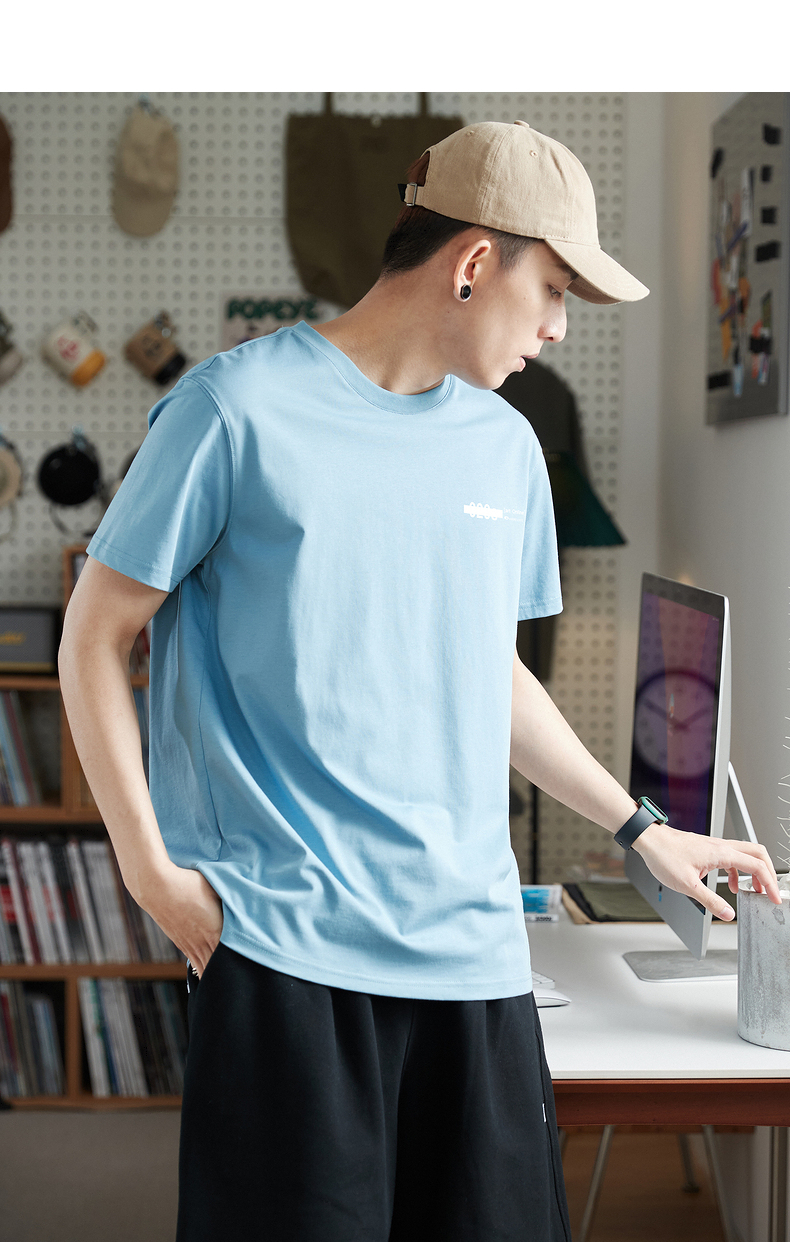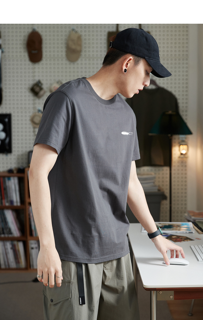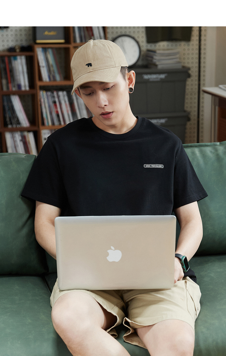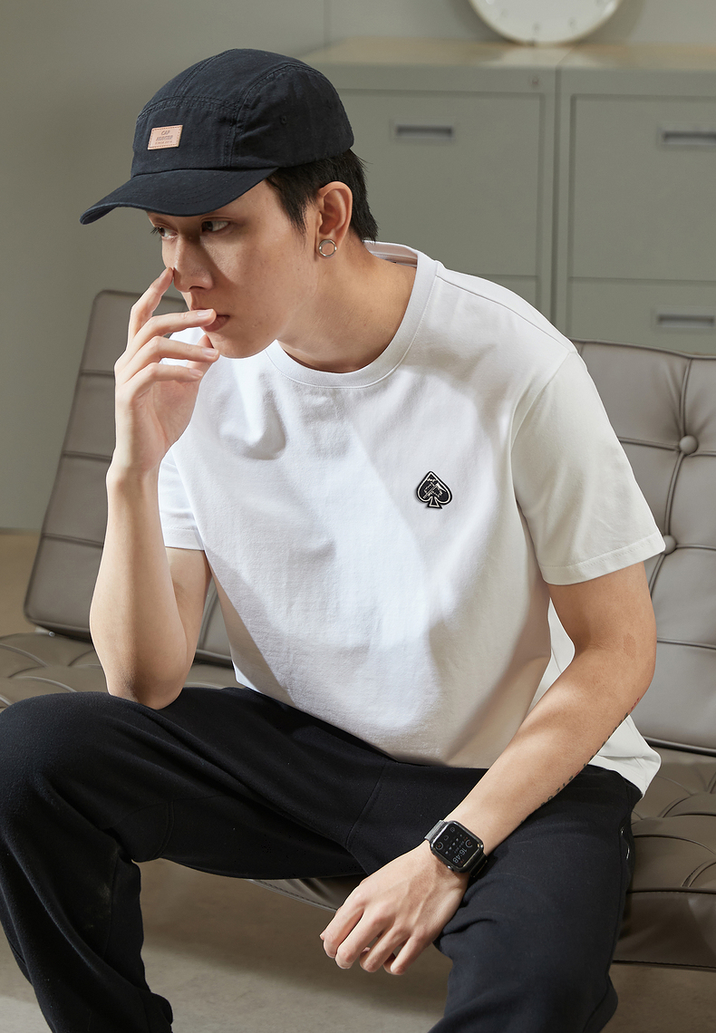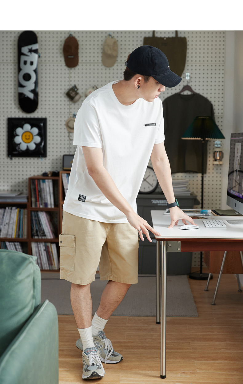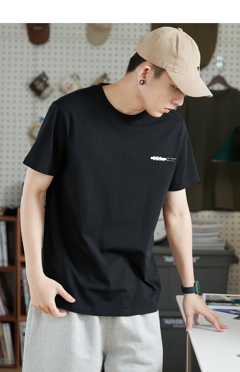 唐獅2023春夏新款短袖T恤男圓領半袖純色寬鬆潮流衣服純棉內搭衣