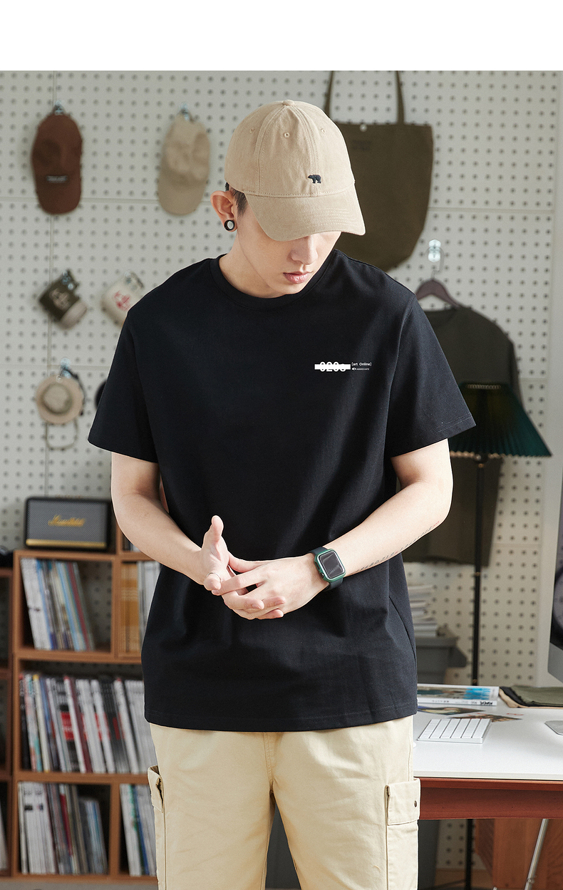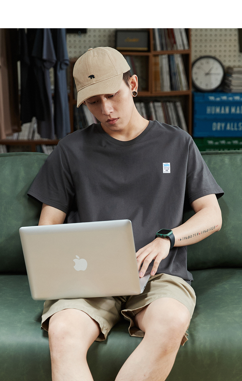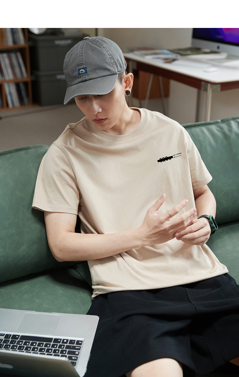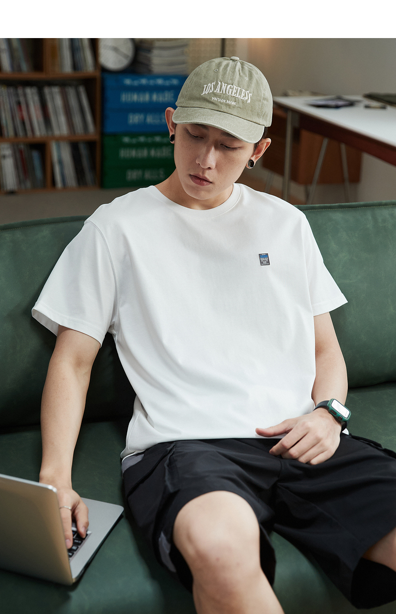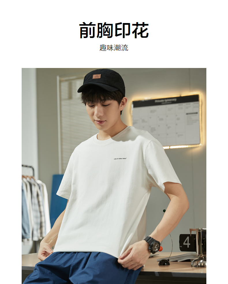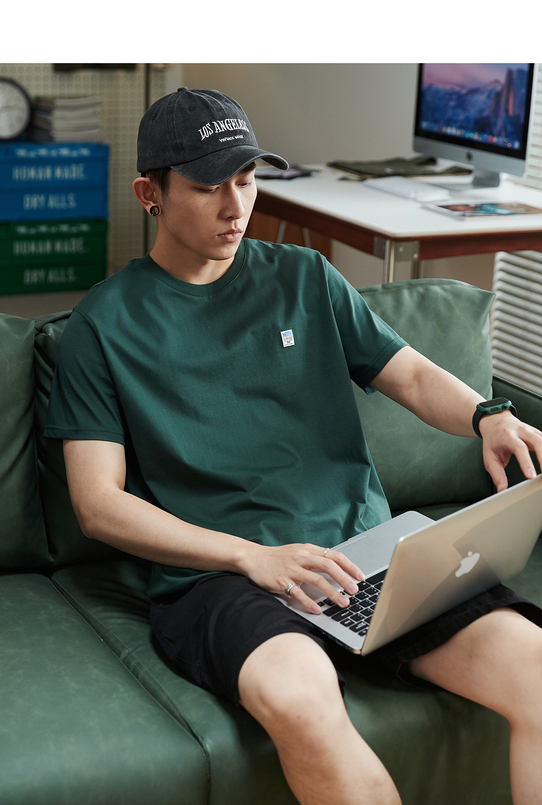 唐獅2023春夏新款短袖T恤男圓領半袖純色寬鬆潮流衣服純棉內搭衣