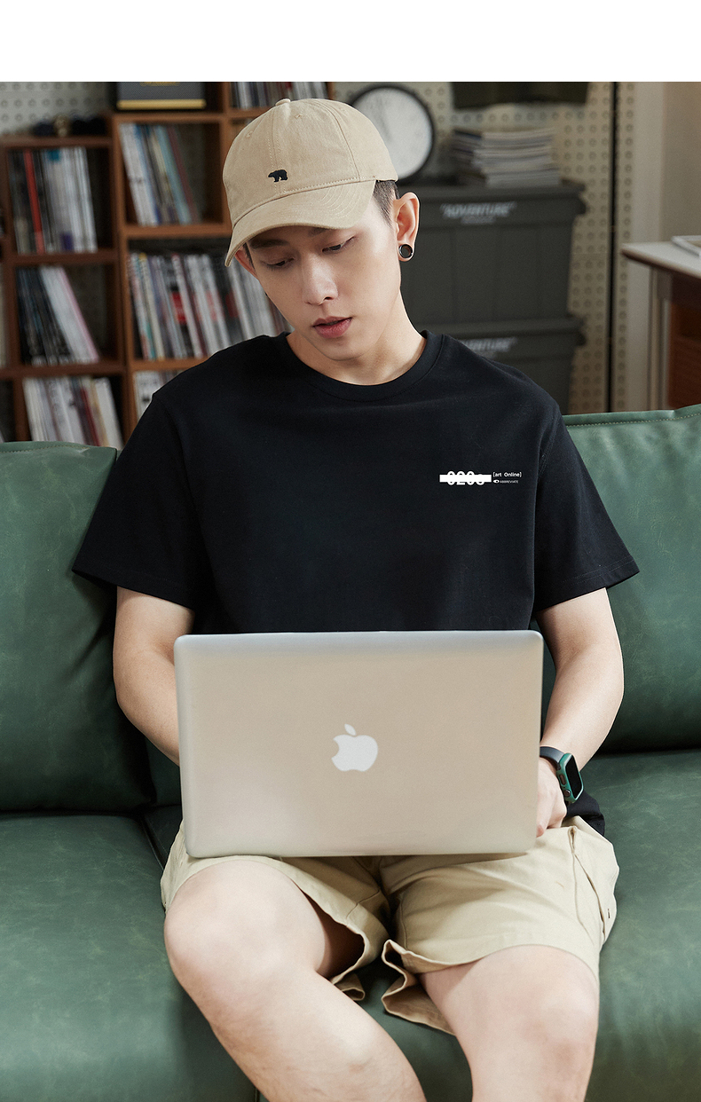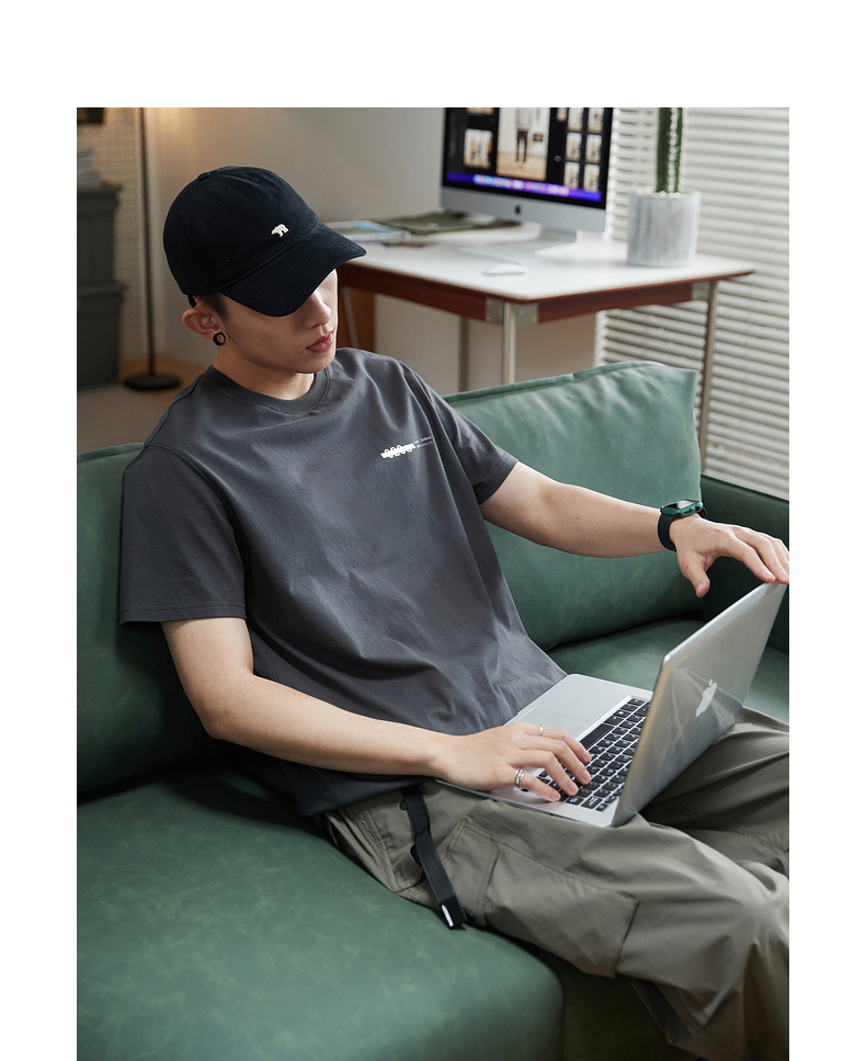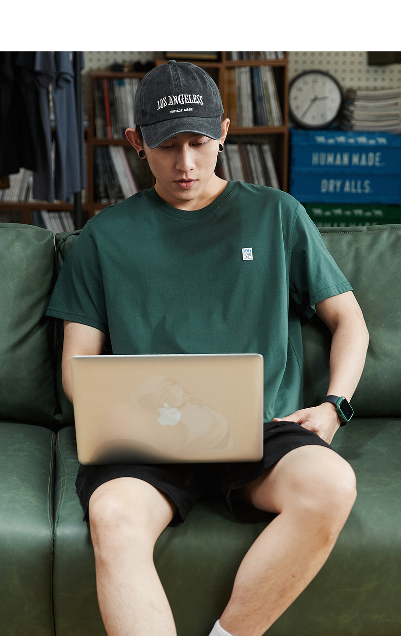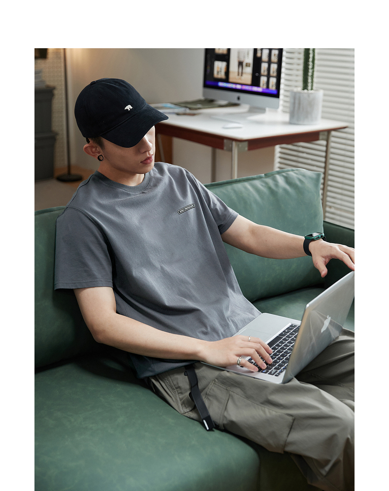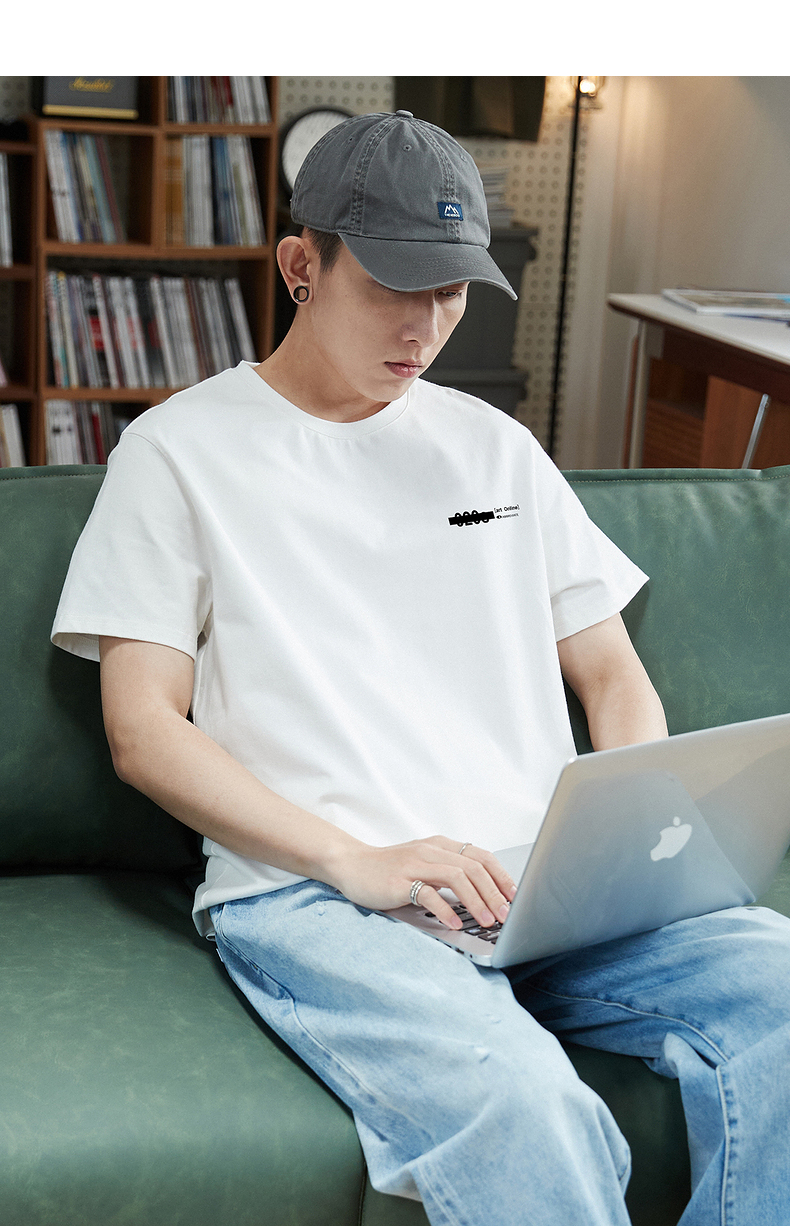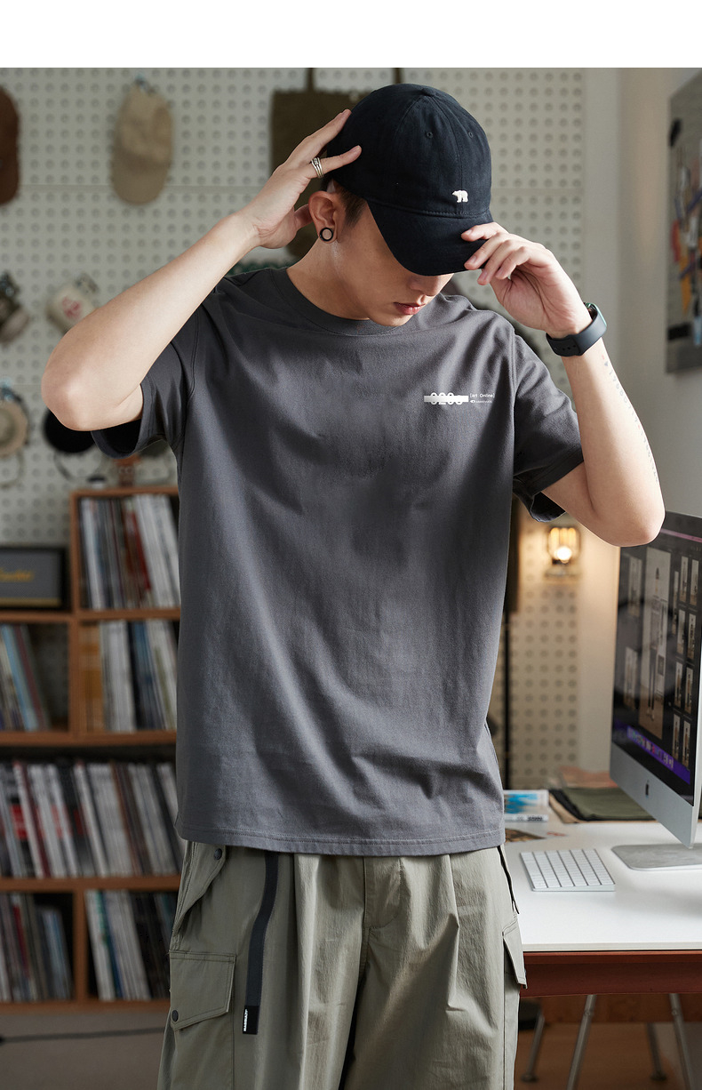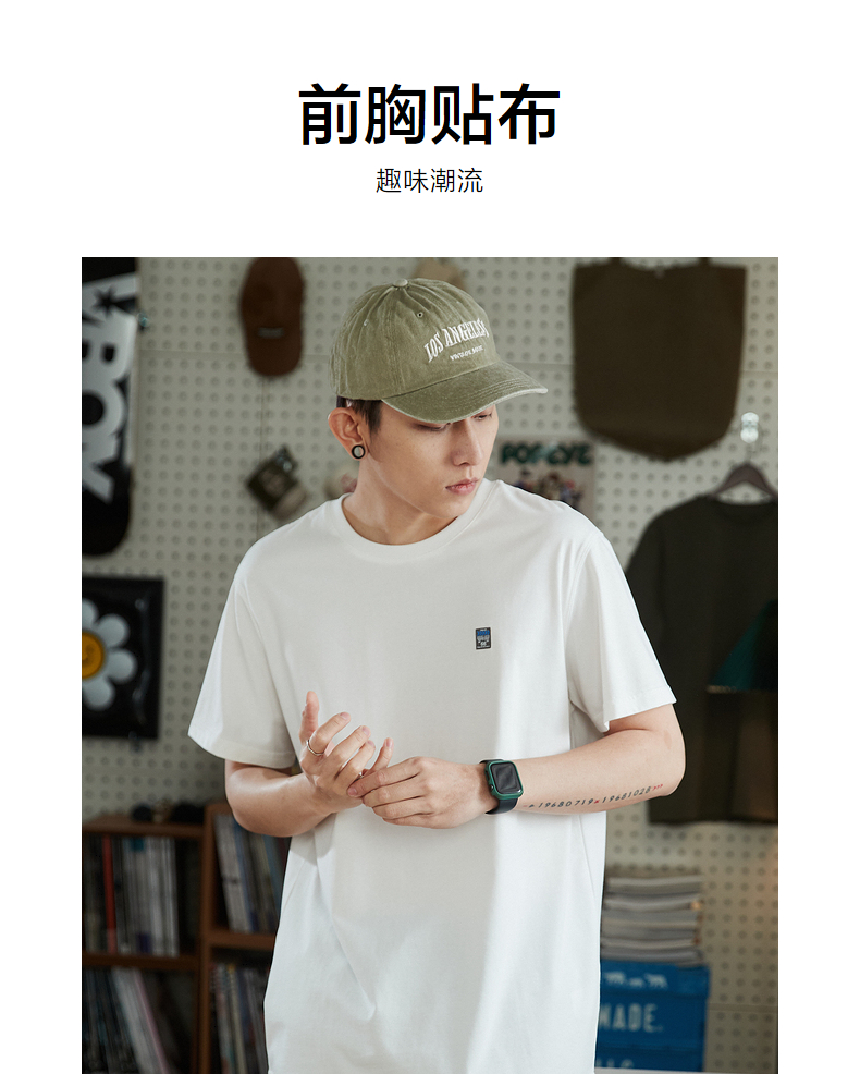 唐獅2023春夏新款短袖T恤男圓領半袖純色寬鬆潮流衣服純棉內搭衣