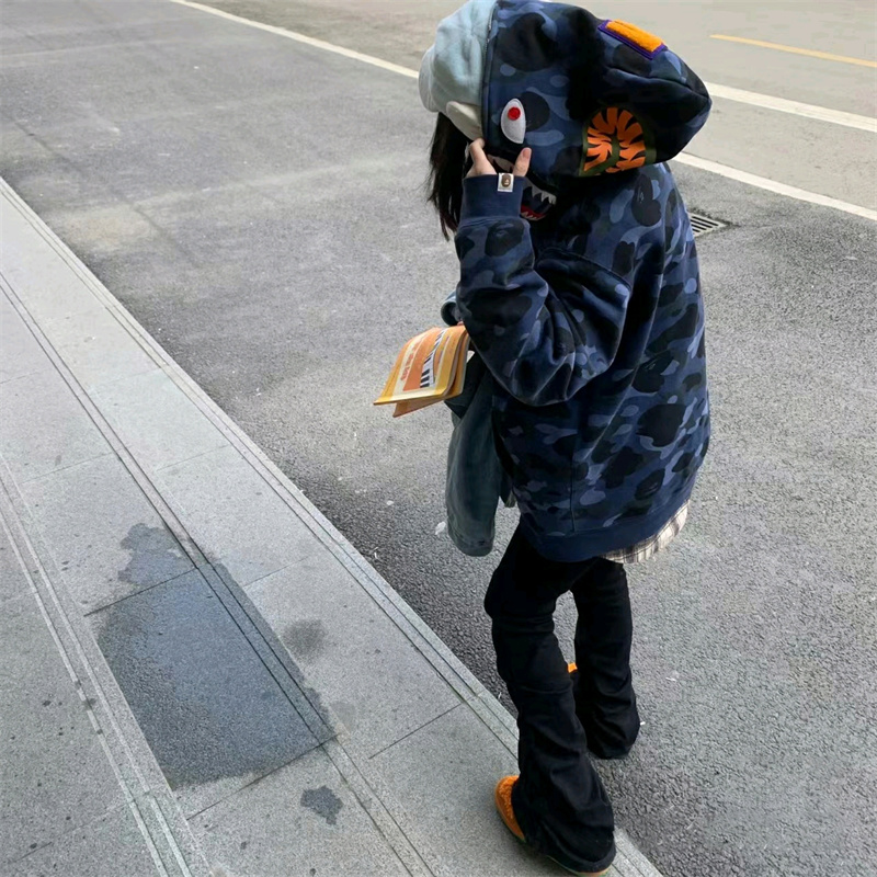 潮牌鯊魚衛衣女秋冬新款加絨加厚寬鬆潮ins小眾歐美高街拉鍊外套