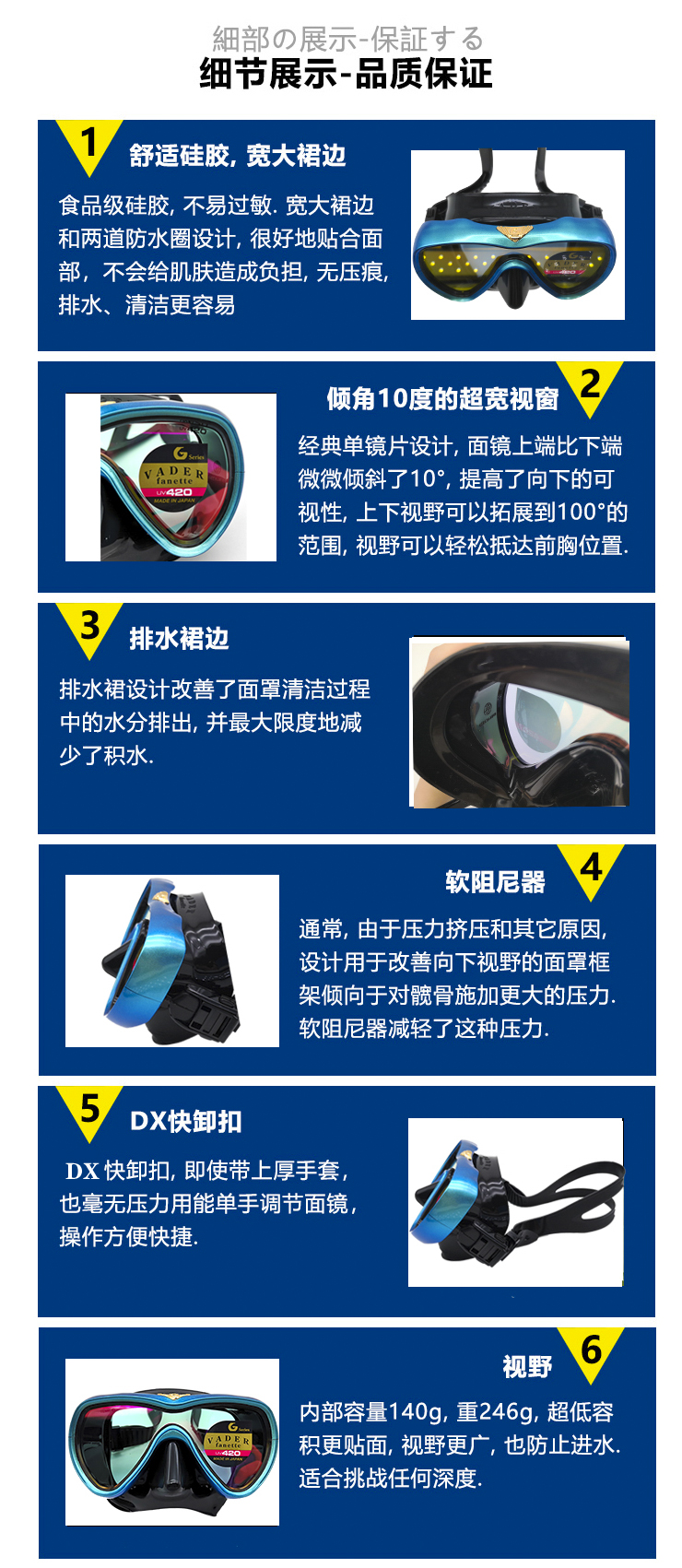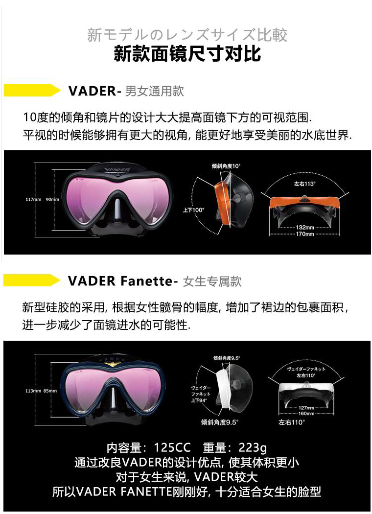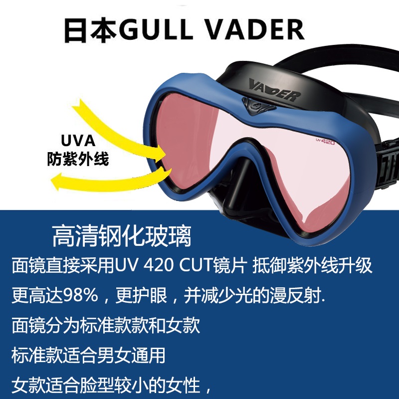 Gull日本VADER深潛浮潛船潛鋼化面罩潛水面鏡UV420高端系列OW考證