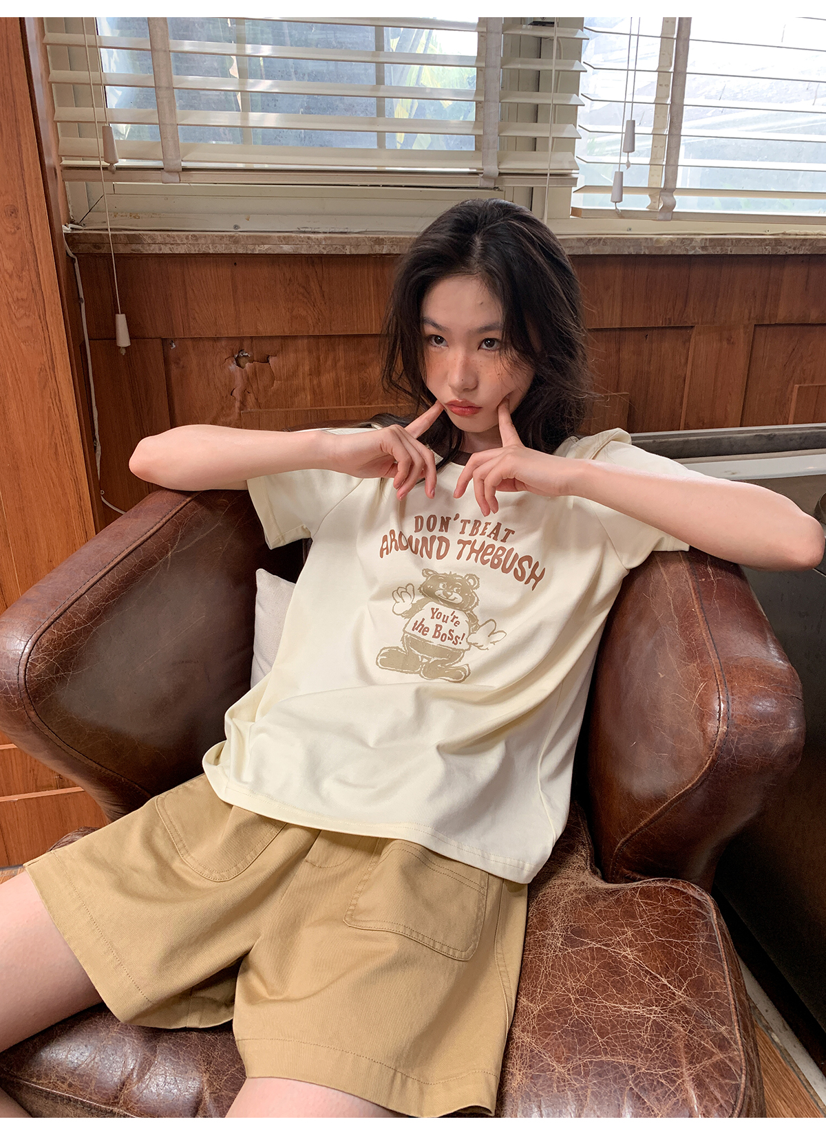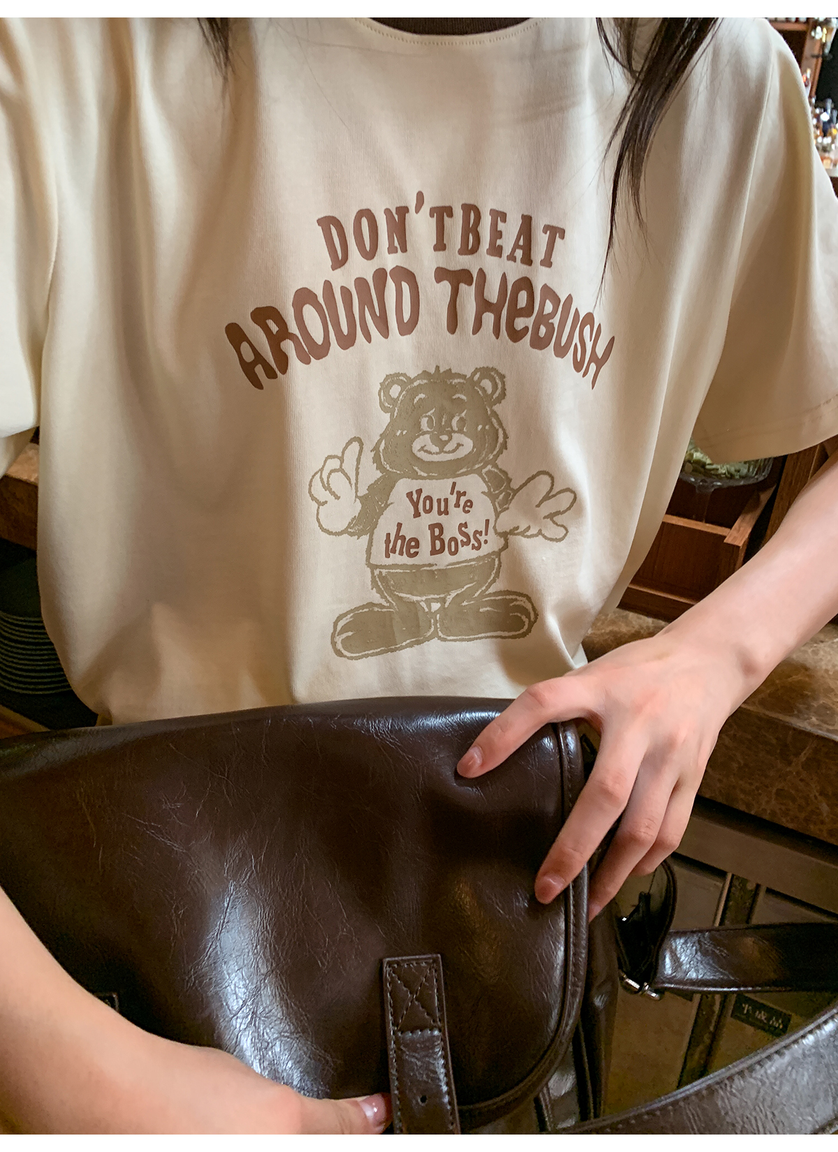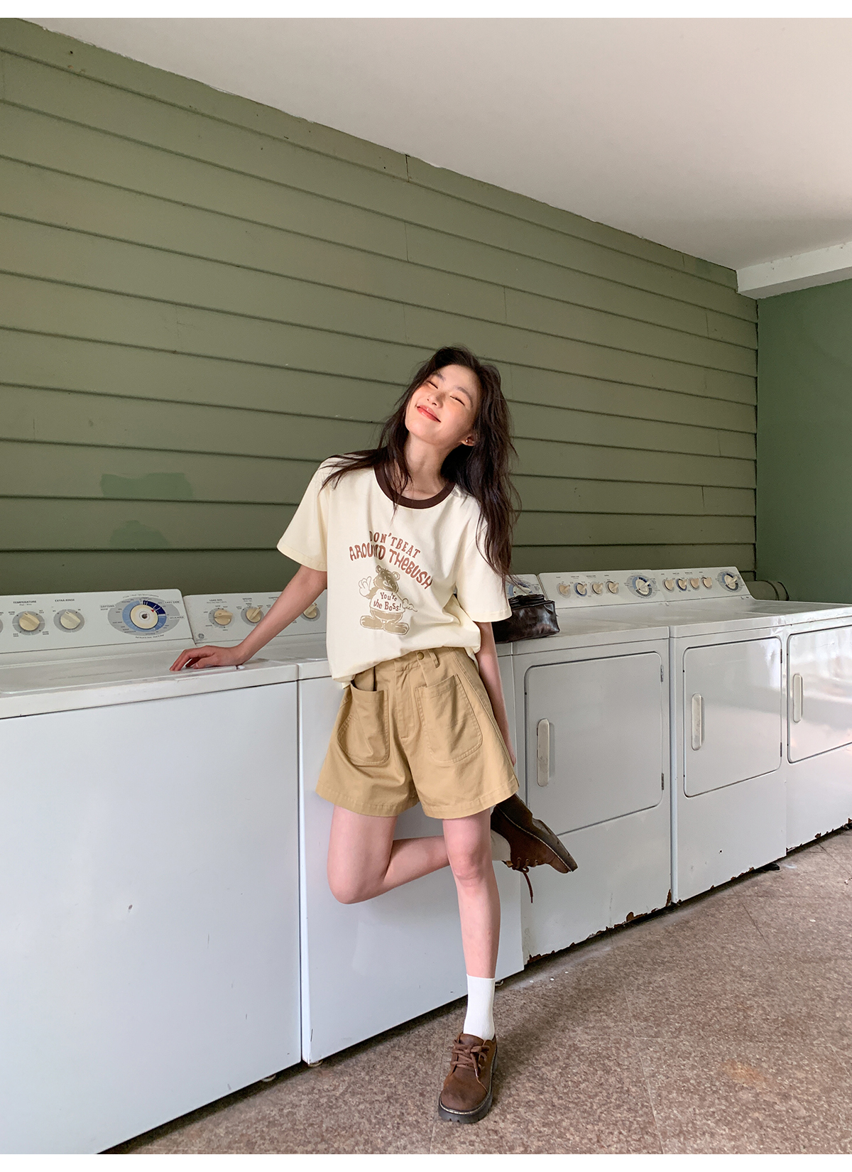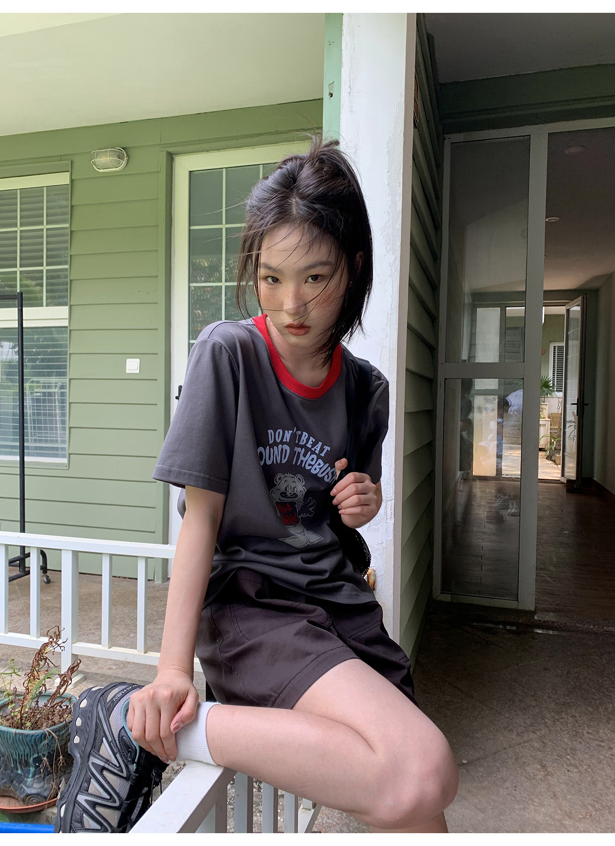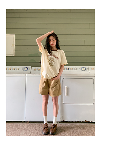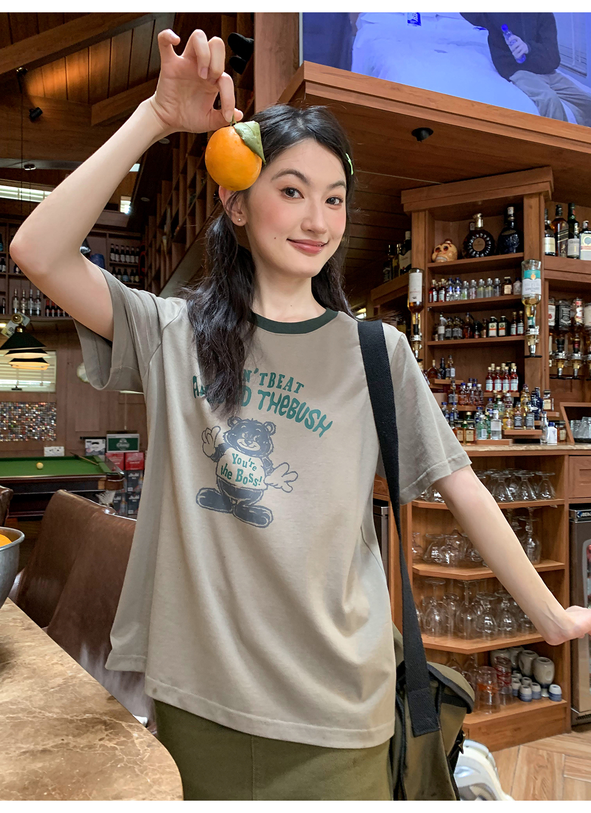 你好卡農 原創小熊印花撞色圓領短袖T恤女2023新款寬鬆T恤上衣夏