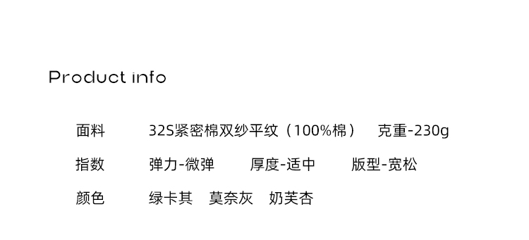 主要顏色 綠卡其,莫奈灰,奶芙杏