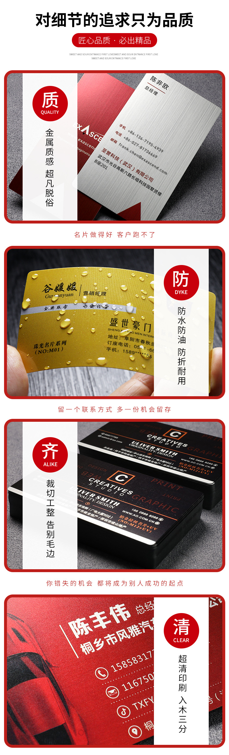 高档商务PVC名片印刷塑料卡片烫金双面打印防水透明免费设计 包邮