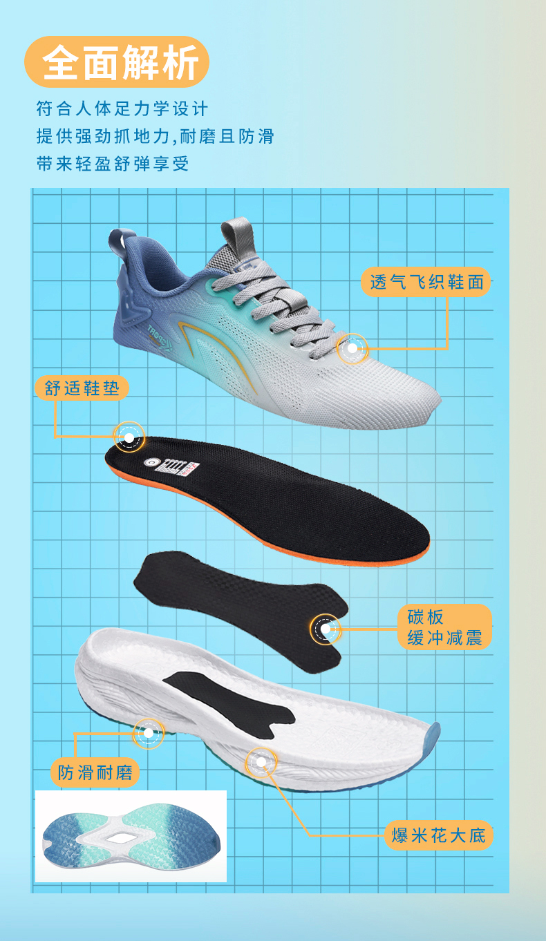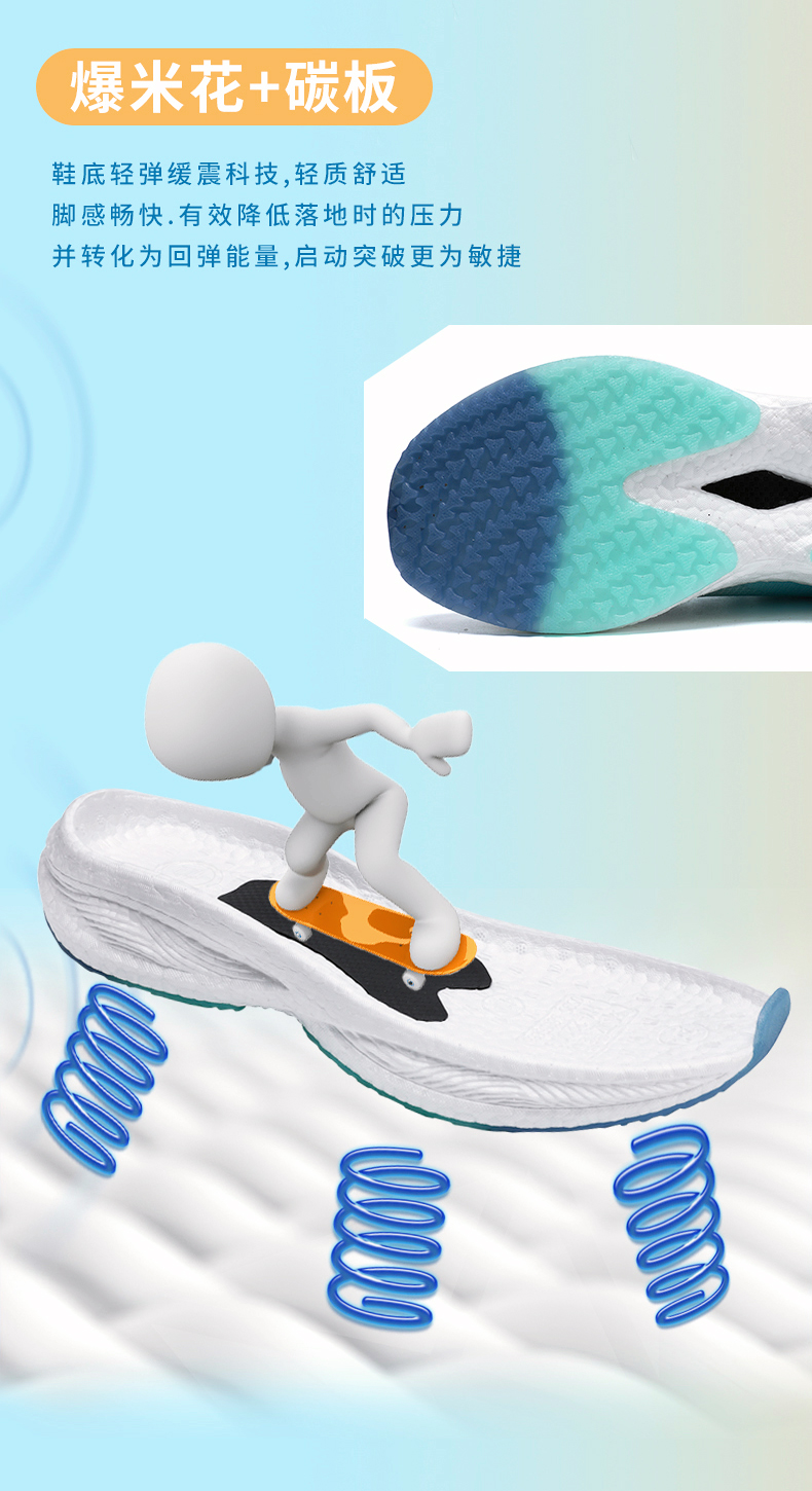 男鞋夏季透氣薄款飛織網面運動鞋男款爆米花軟底減震碳板跑步鞋子