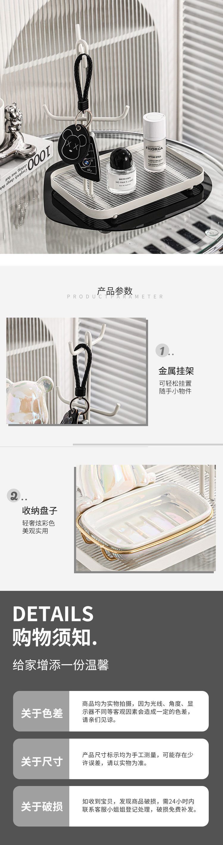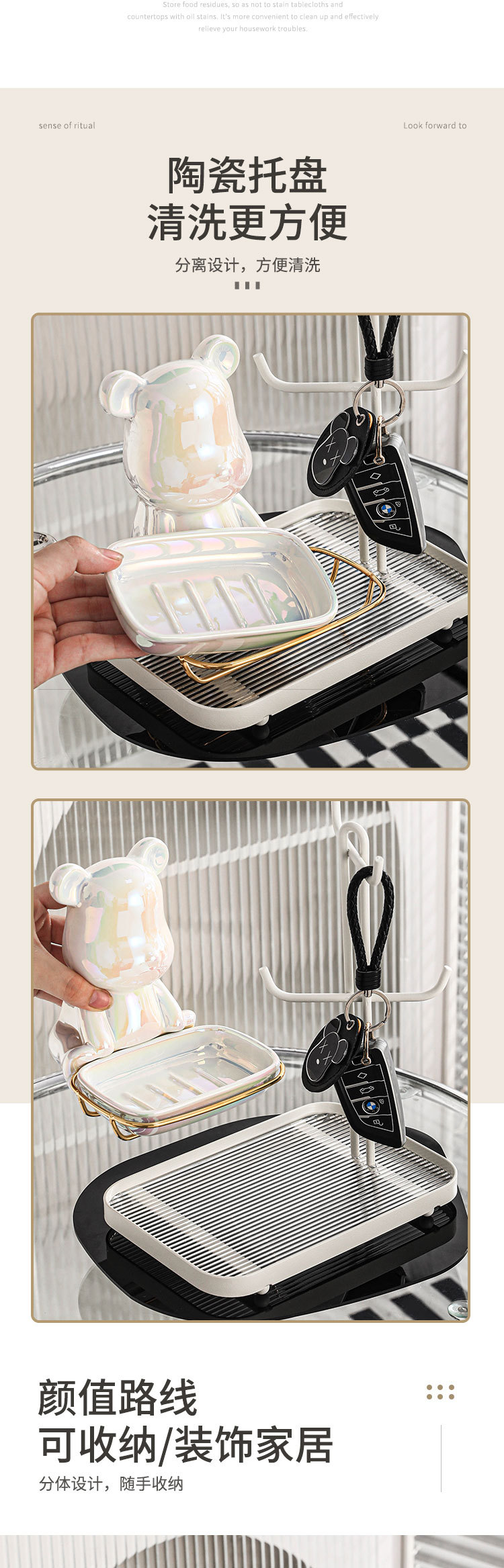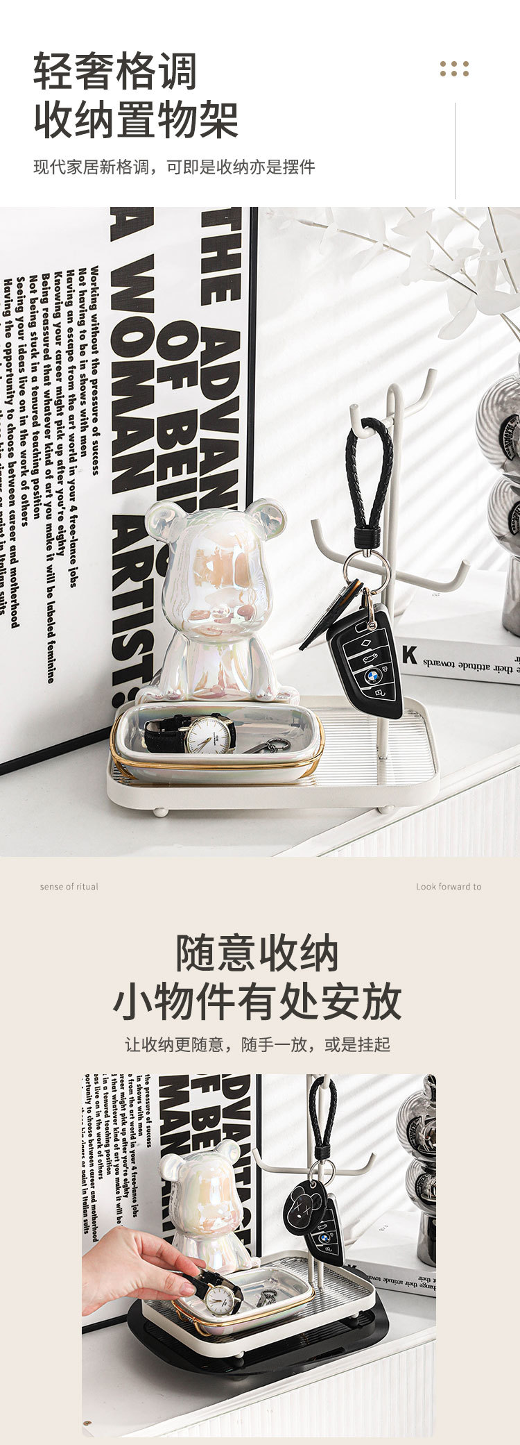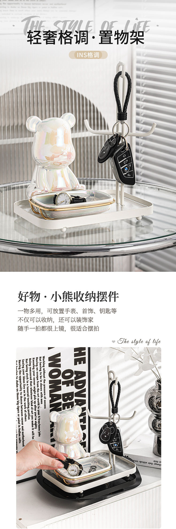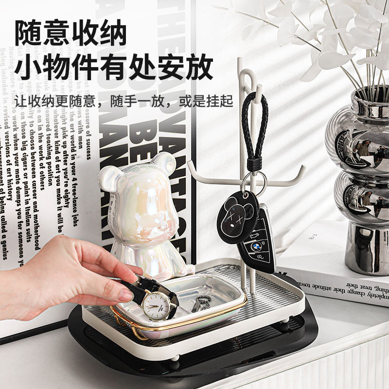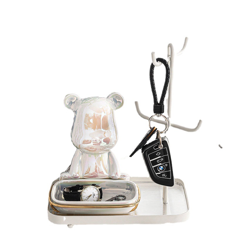 颜色 小熊玄关收纳架—奶油白(白架配白碟)