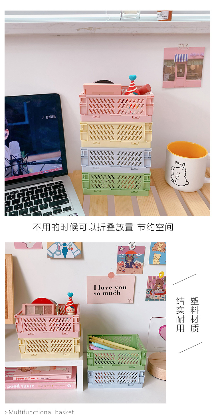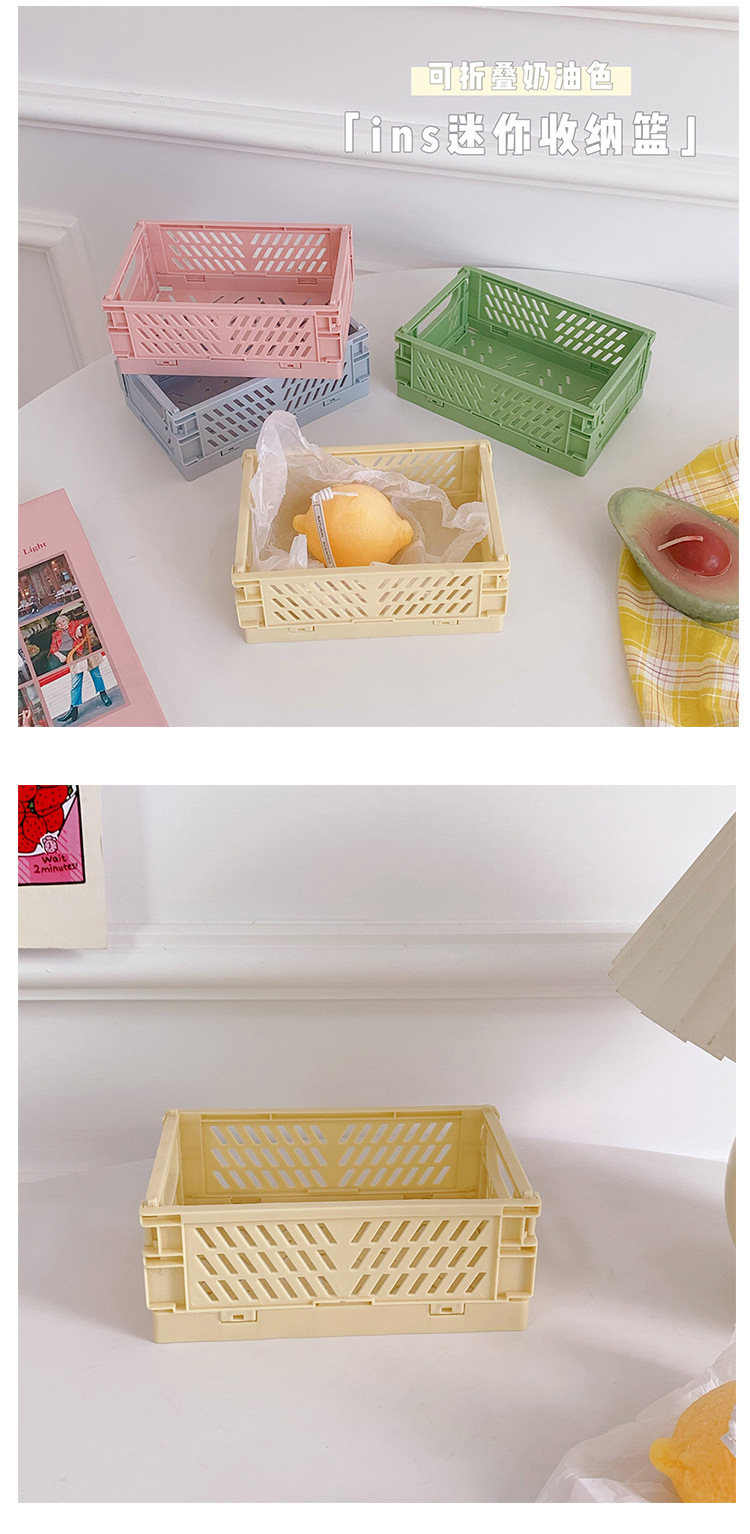 韩国迷你折叠塑料收纳盒学生桌面整理手帐胶带文具护肤品小置物篮