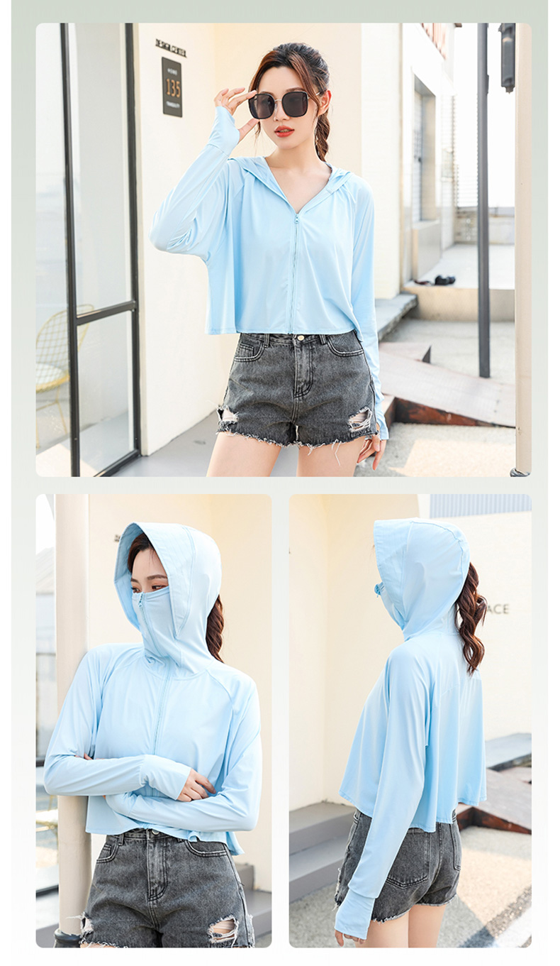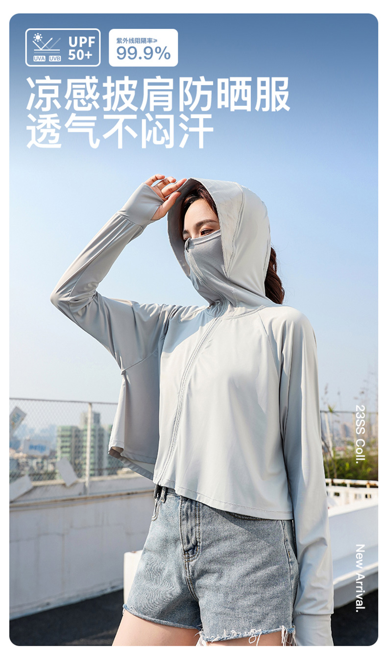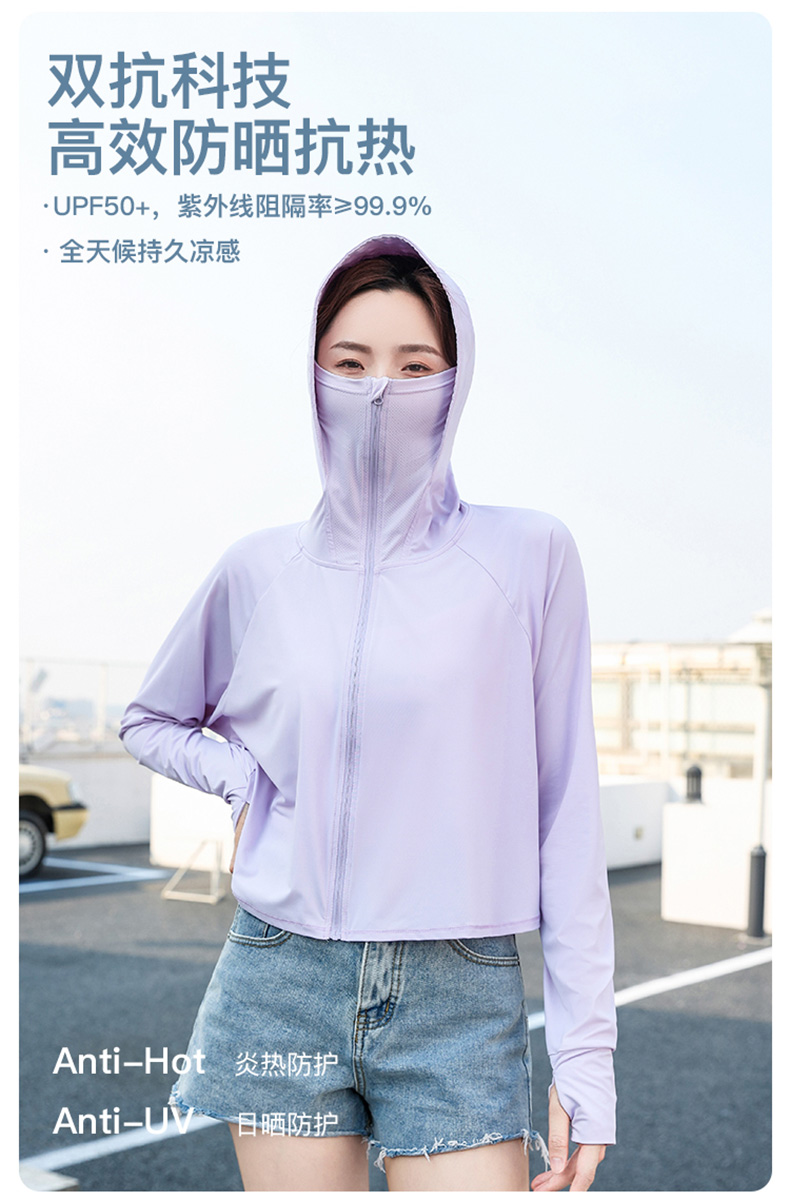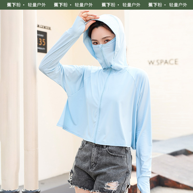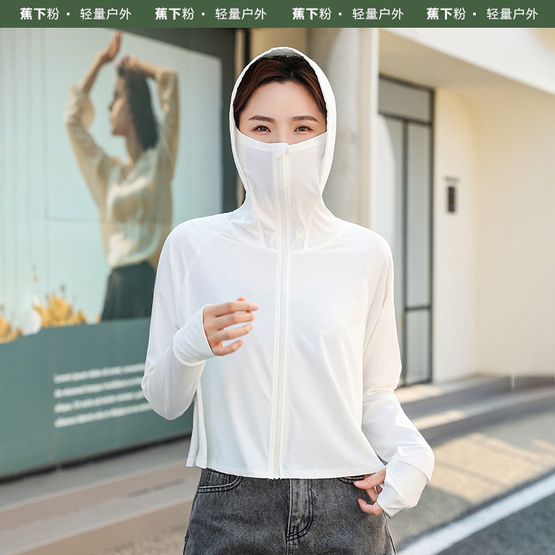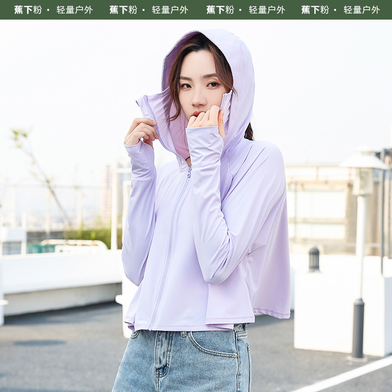 蕉下粉披肩防曬衣女裝護臉透氣抗UV薄外套高彈冰絲連帽防曬服