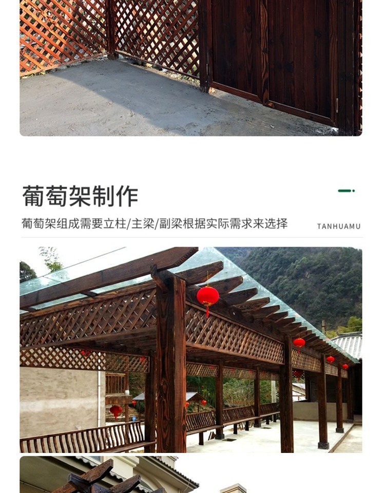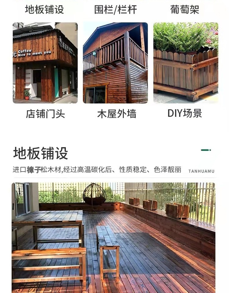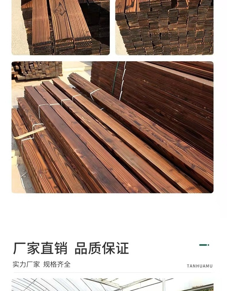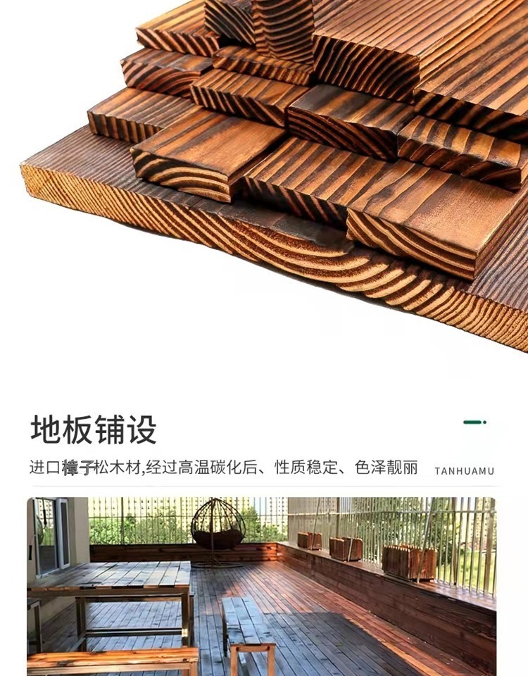 9URT批发户外碳化木防腐木方龙骨地板露台吊顶桑拿板炭烧实木柱子