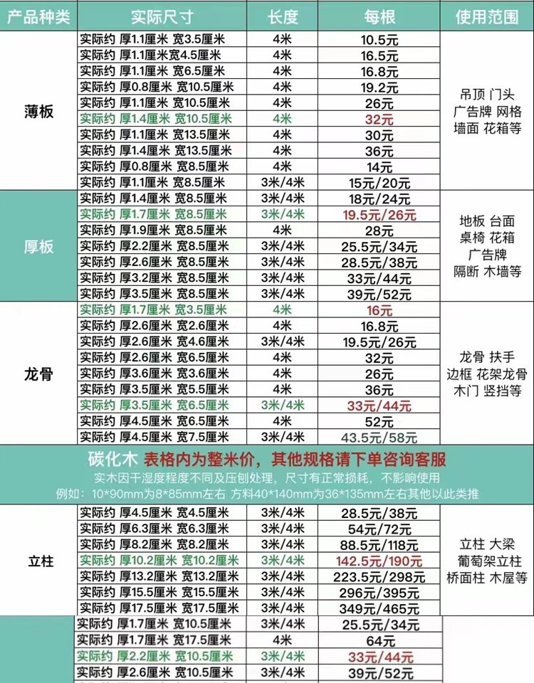 规格 实际厚12*宽45mm,4米长,实际厚11mm*宽65mm,4米长,实际厚8mm*宽105mm,4米长,实际厚14mm*宽105mm,4米长,实际厚11mm*宽135mm,4米长,实际厚14mm*宽135mm,4米长,实际厚22mm*宽105mm,4米长,实际厚26mm*宽105mm,4米长,实际厚32mm*宽105mm,4米长,实际厚26mm*宽135mm,4米长,实际厚32mm*宽135mm,4米长,实际厚32mm*宽85mm,4米长,实际厚36mm*宽85mm,4米长,实际厚27mm*宽27mm,4米长,实际厚36mm*宽36mm,4米长,实际厚26mm*宽66mm,4米长,实际厚35mm*宽65mm,4米长,实际厚45mm*宽75mm,4米长