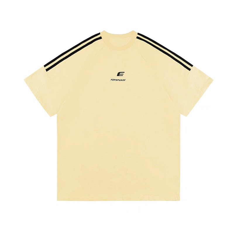 黃色寬鬆純棉短袖t恤女夏季美式潮牌正肩設計感復古小眾半袖上衣