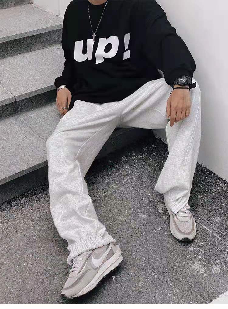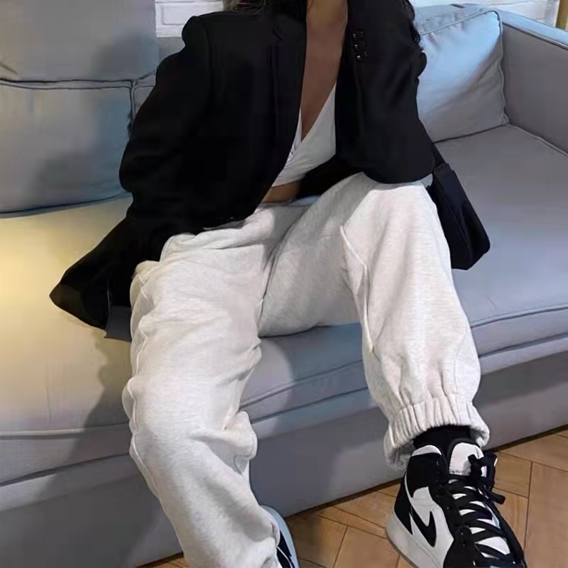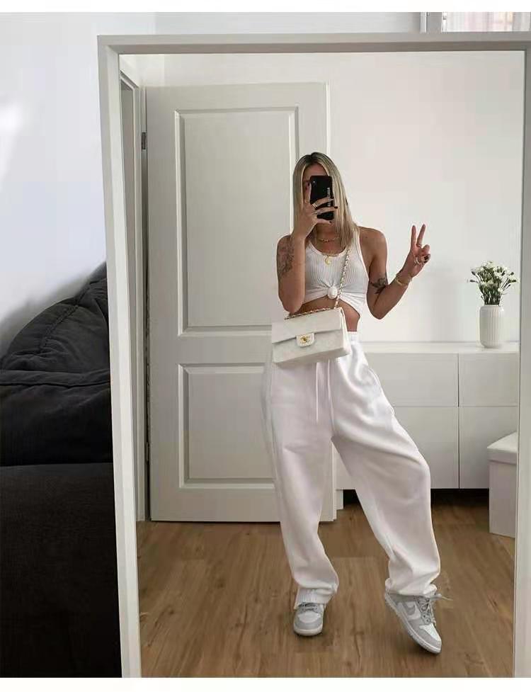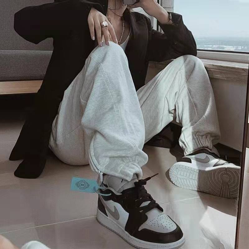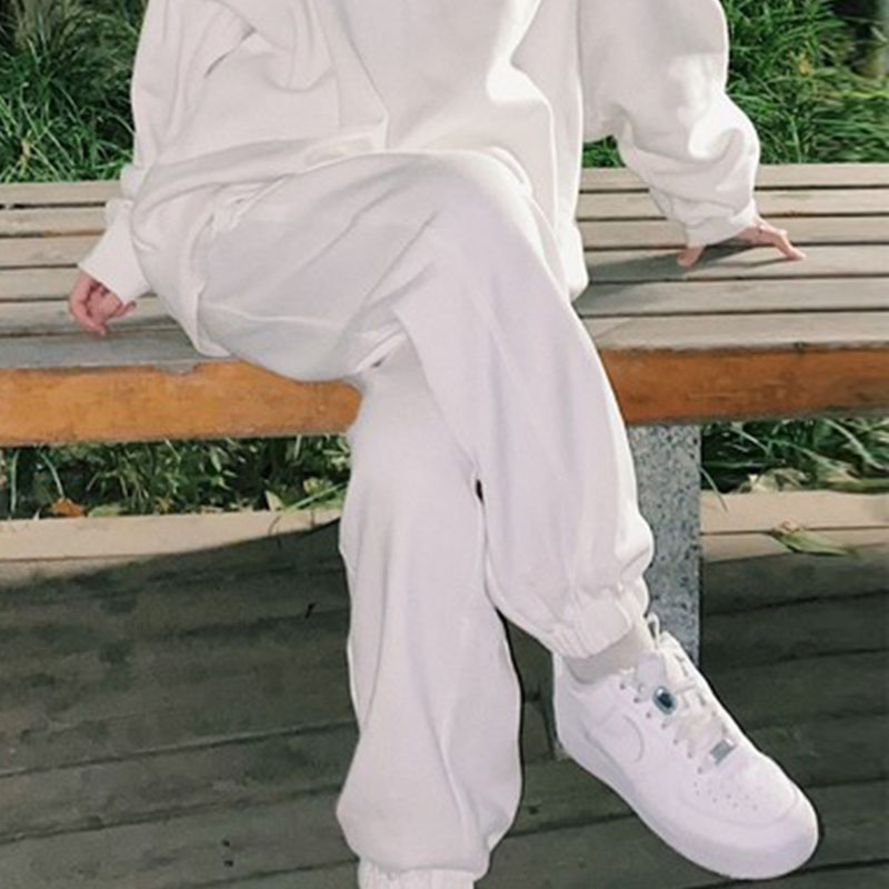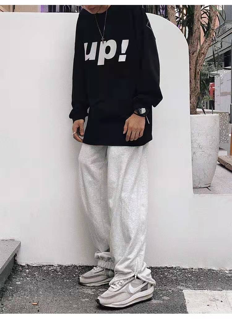 趙大浪 白色衛褲休閒通勤純棉寬鬆高街束腳側邊拉鍊運動褲男女潮