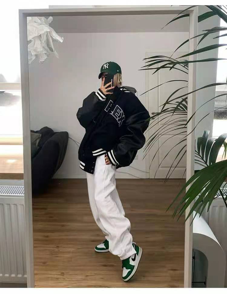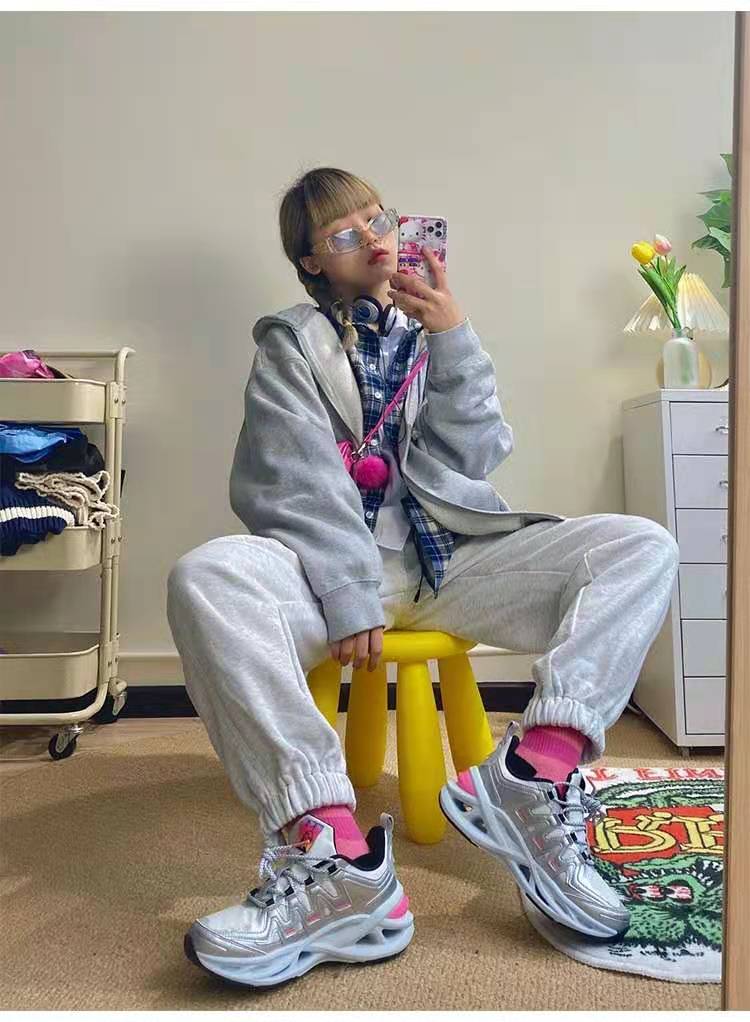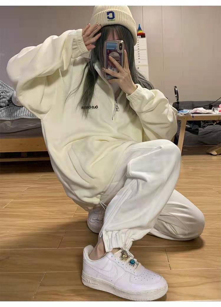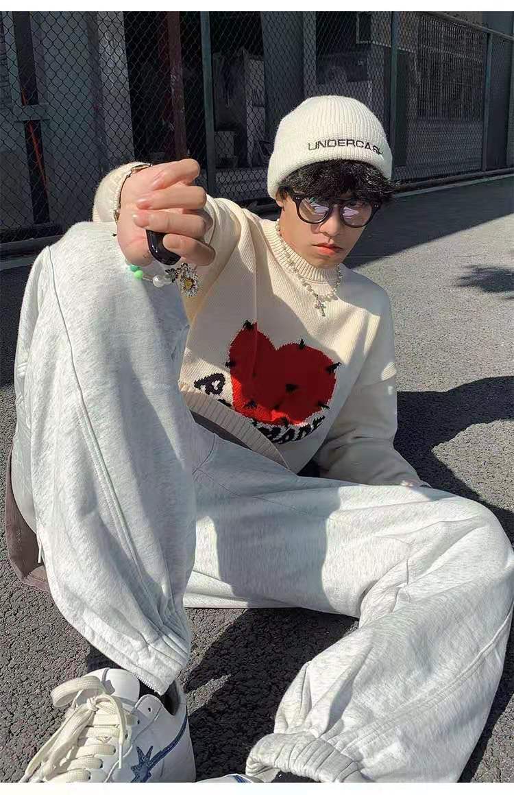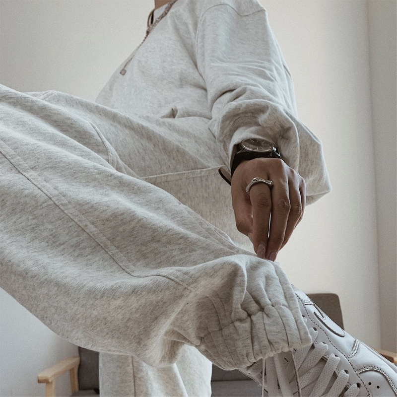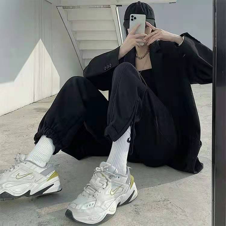 趙大浪 白色衛褲休閒通勤純棉寬鬆高街束腳側邊拉鍊運動褲男女潮