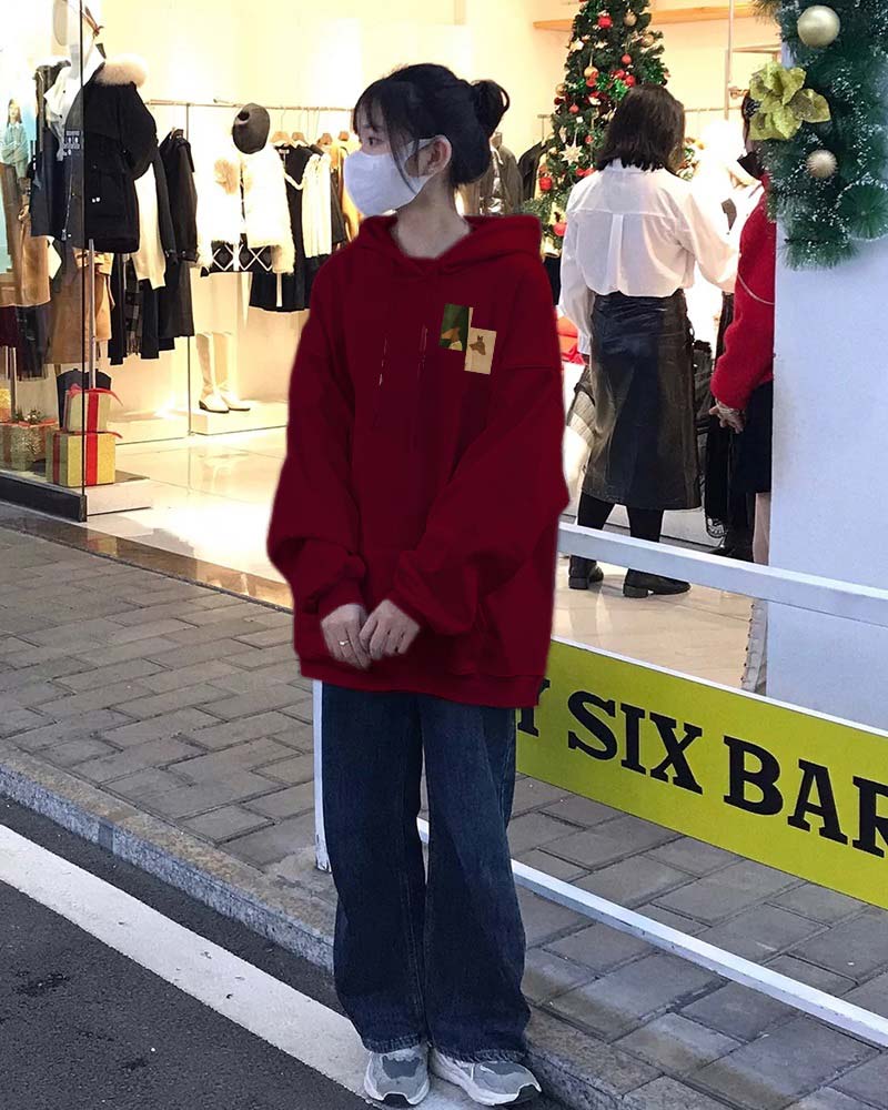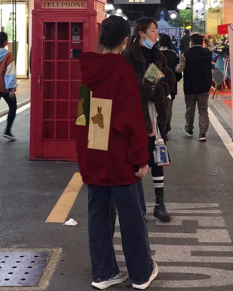 回头率超高!艺术生风格卫衣女韩系宽松百搭简约印花连帽上衣外套